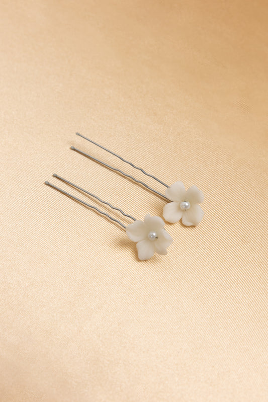 Hair pin flor porcelana ivory