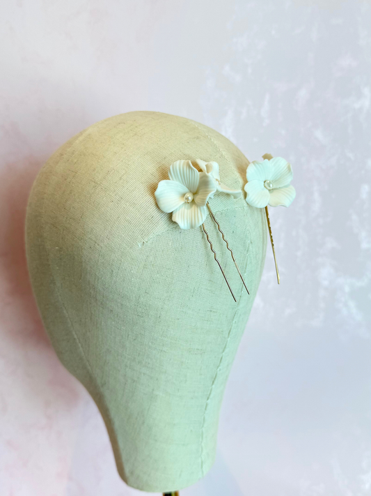 Tocados de Novia, Pines de Porcelana, con Cristales y Perlas