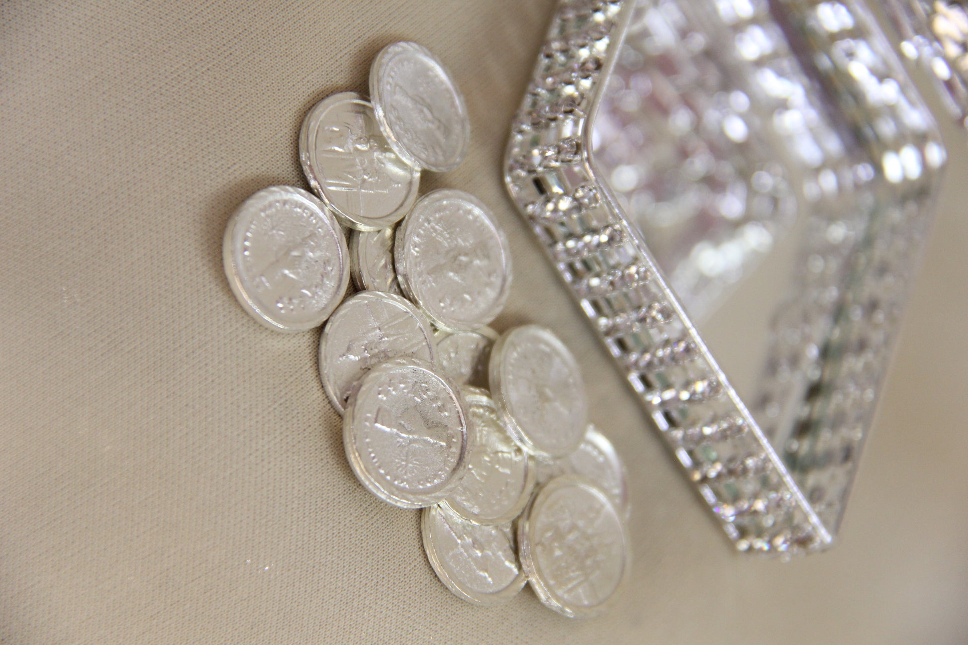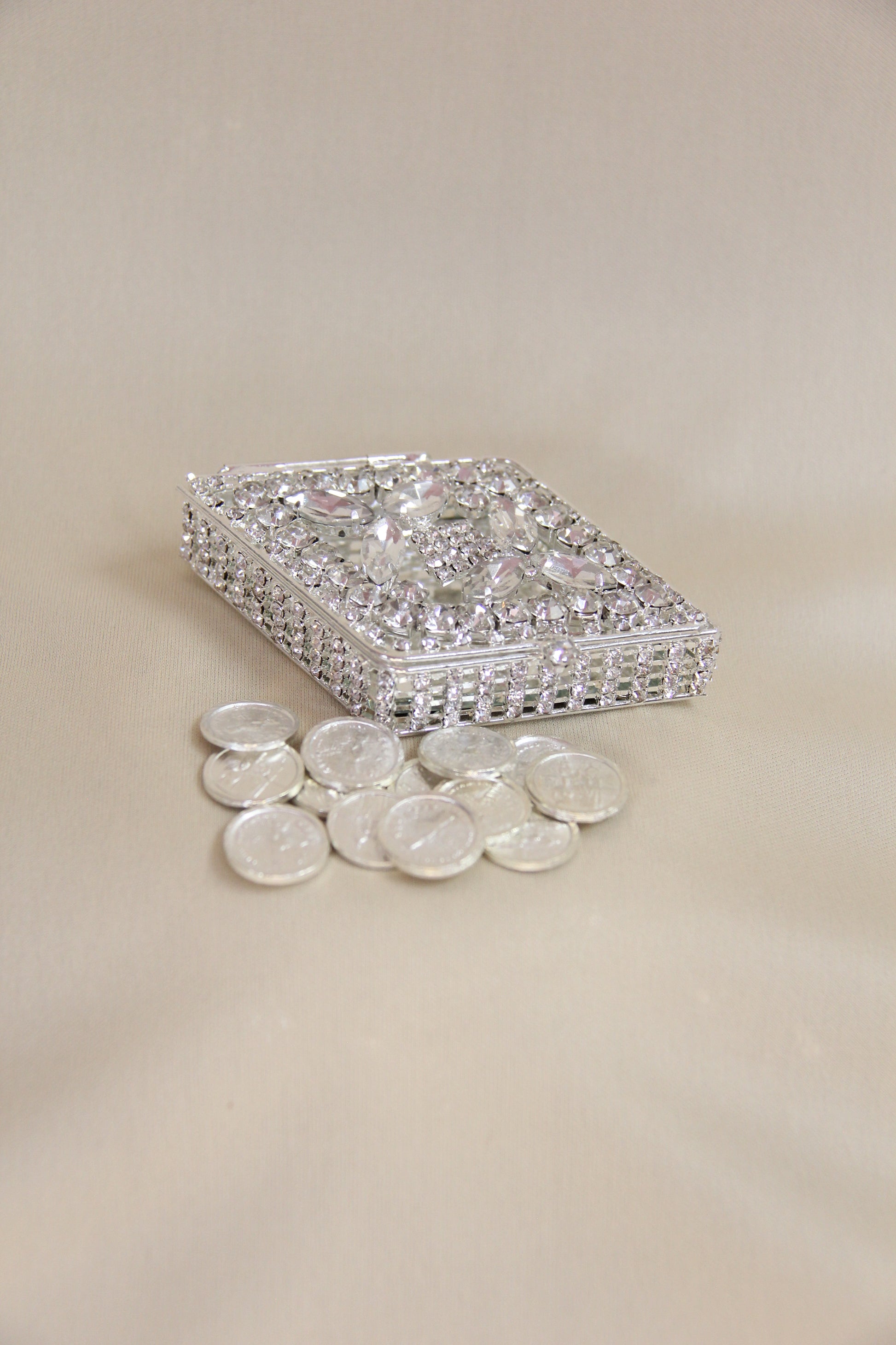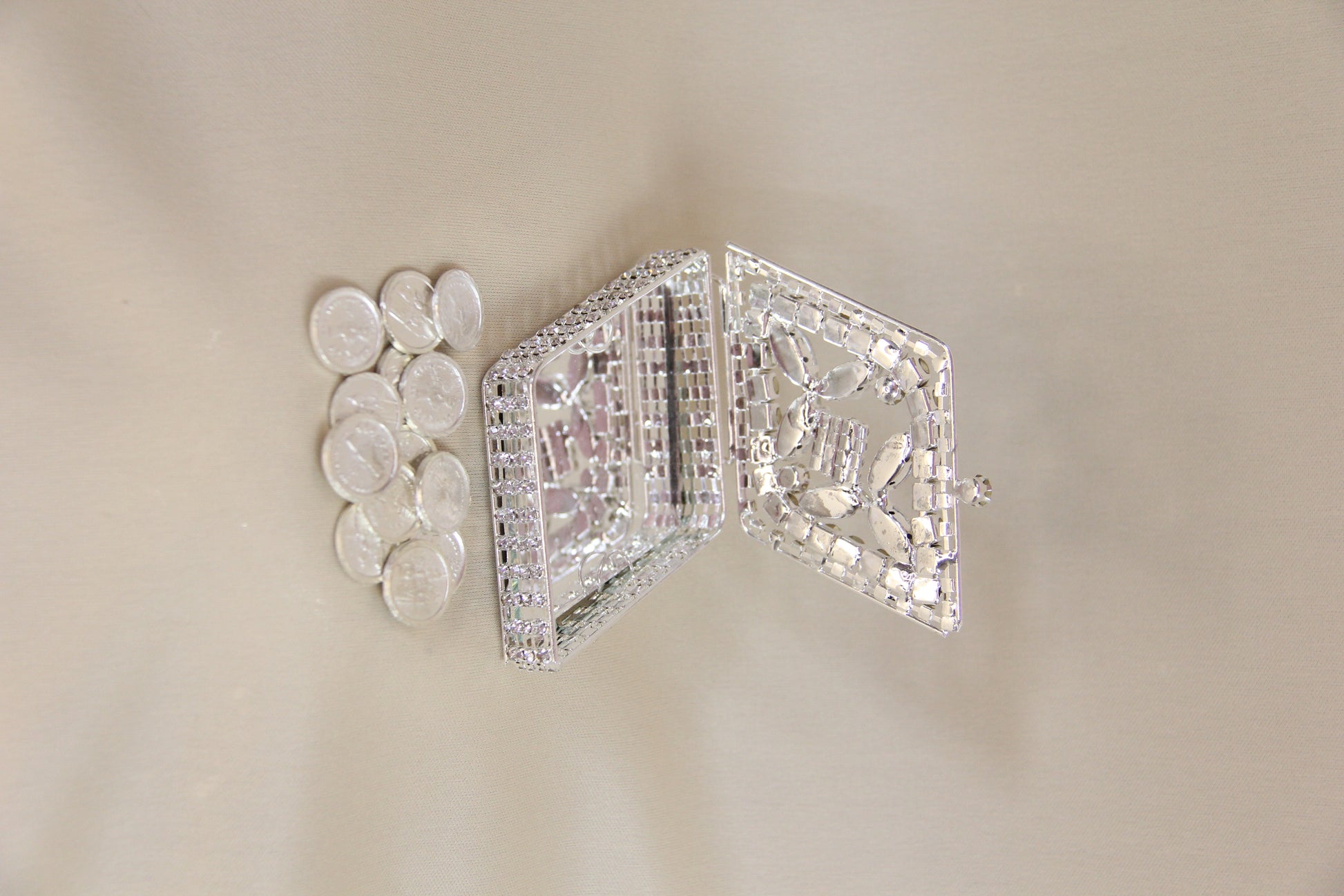 Arras matrimoniales con alhajero espejo en chapa de plata y cristales estilo Swarovski.