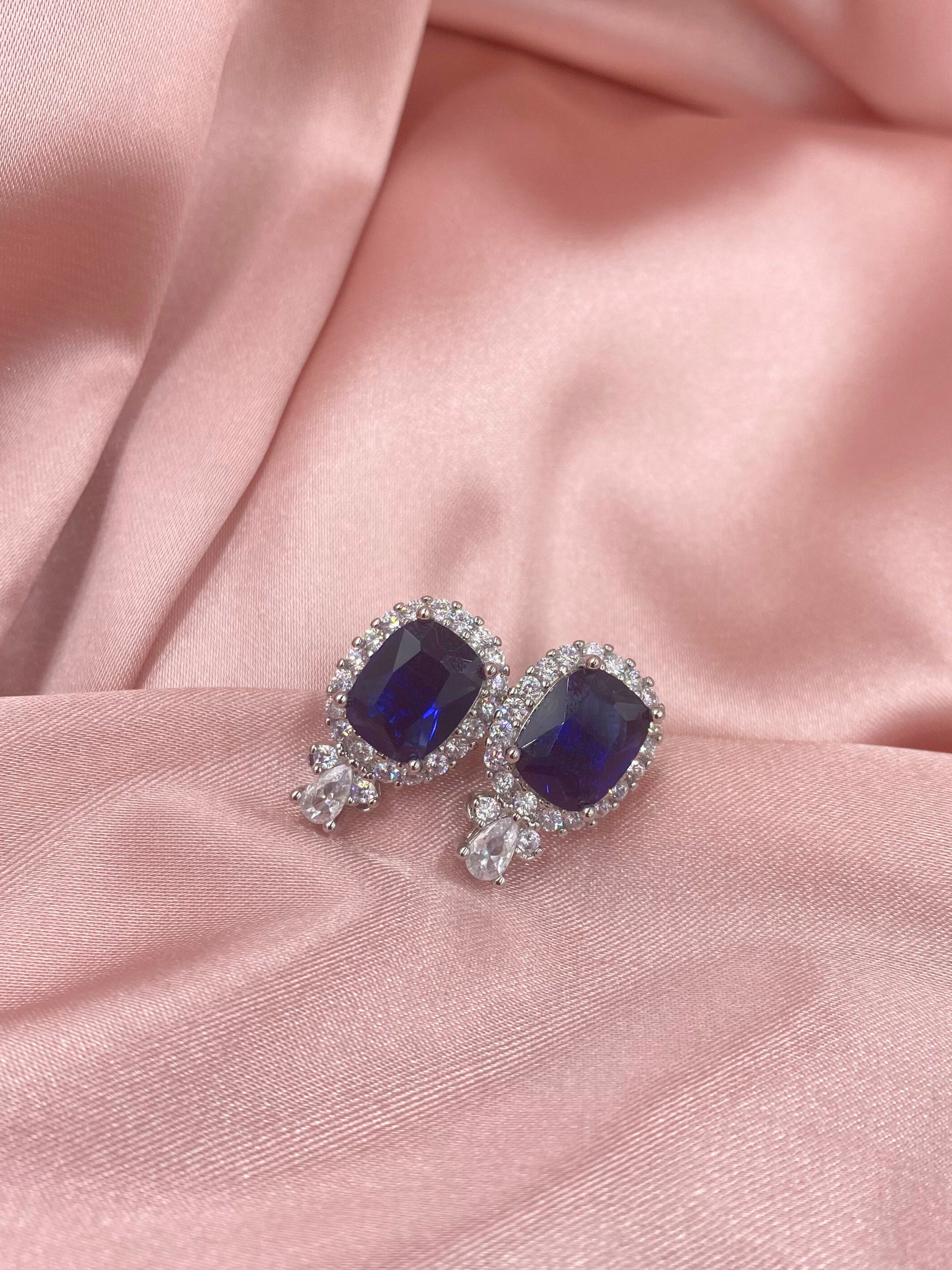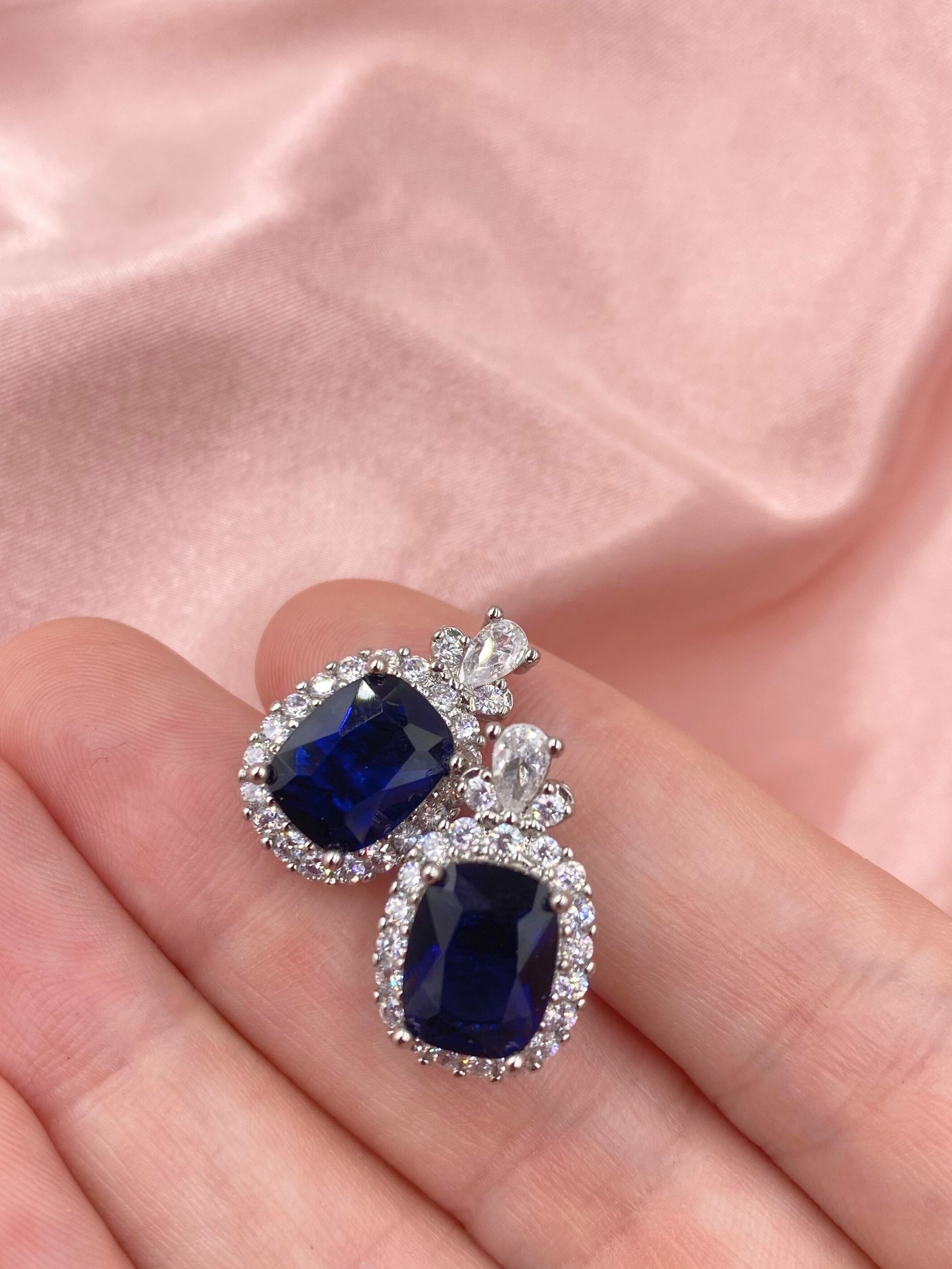 Aretes de bisutería fina con piedra de imitación de zafiro
