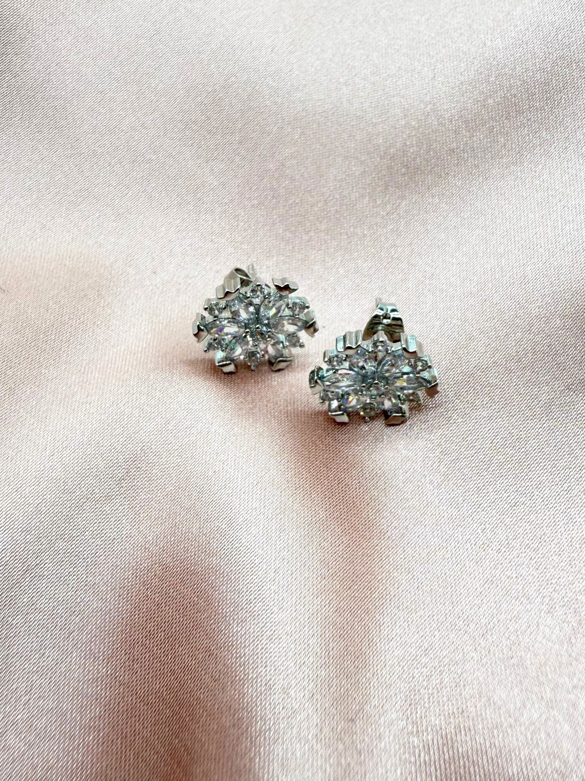 Aretes de metal con chapa de rodio y circonias