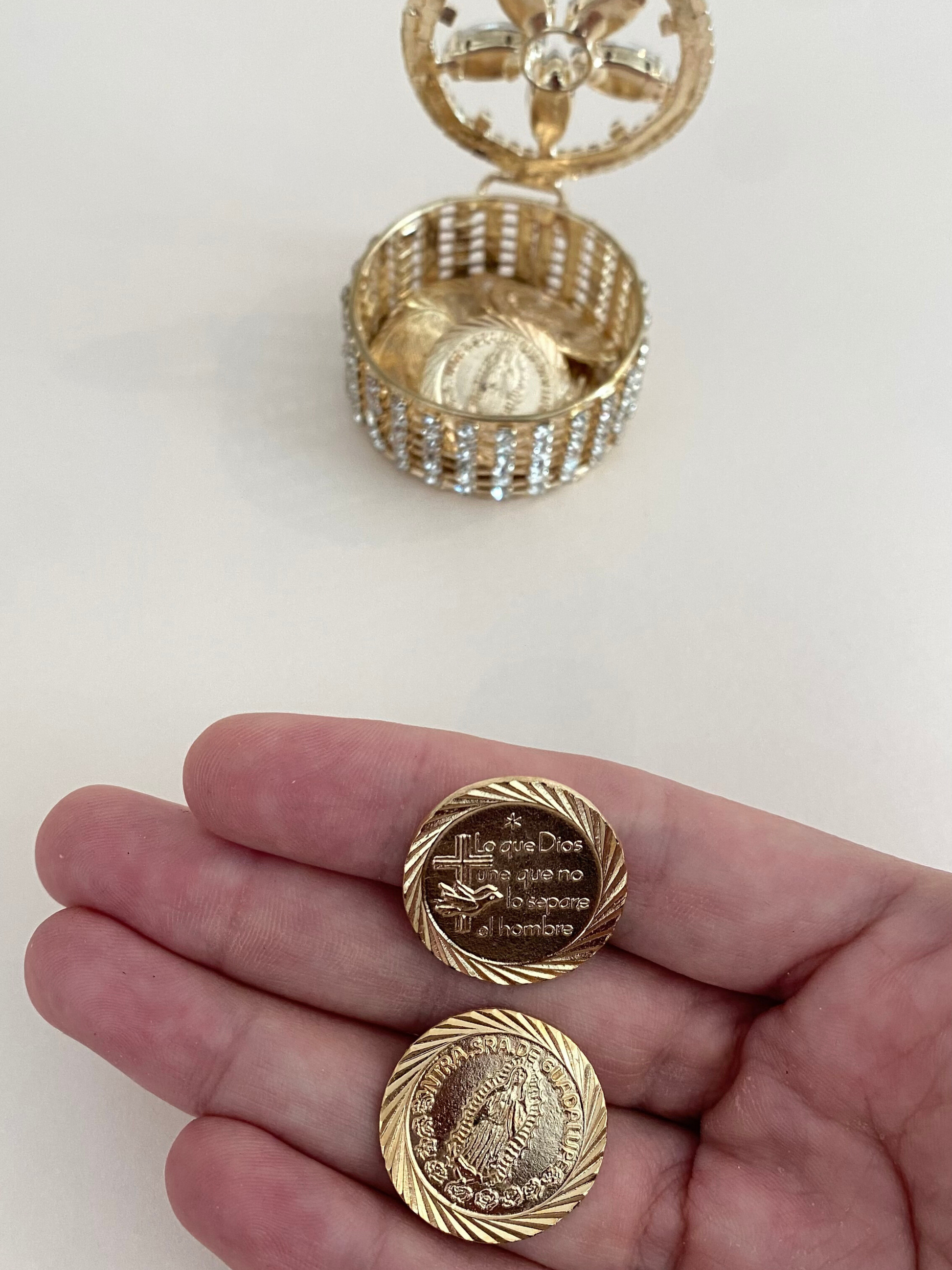 La caja mide 4 cm de diámetro e incluye 13 monedas