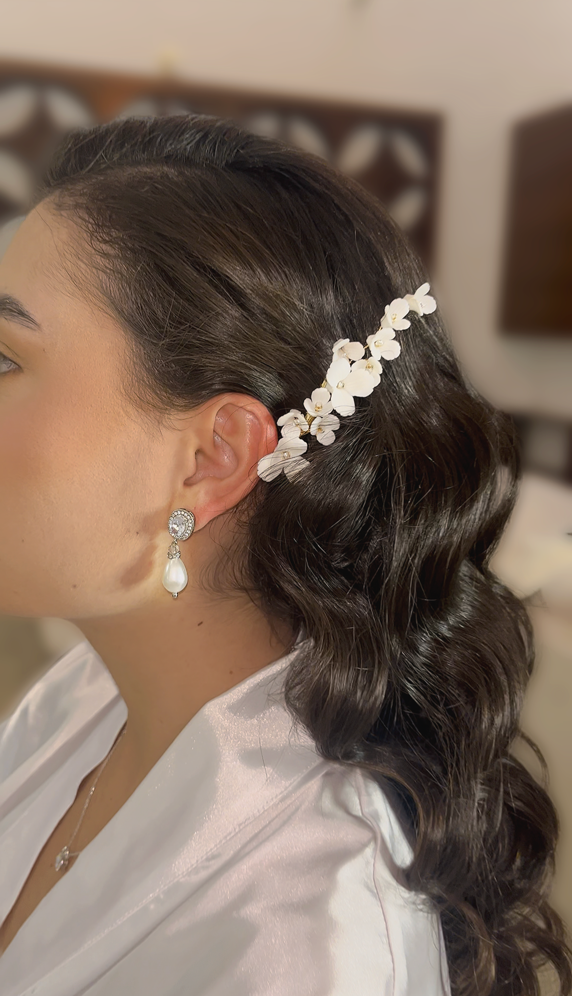 Broche dorado de pequeñas Flores de porcelana