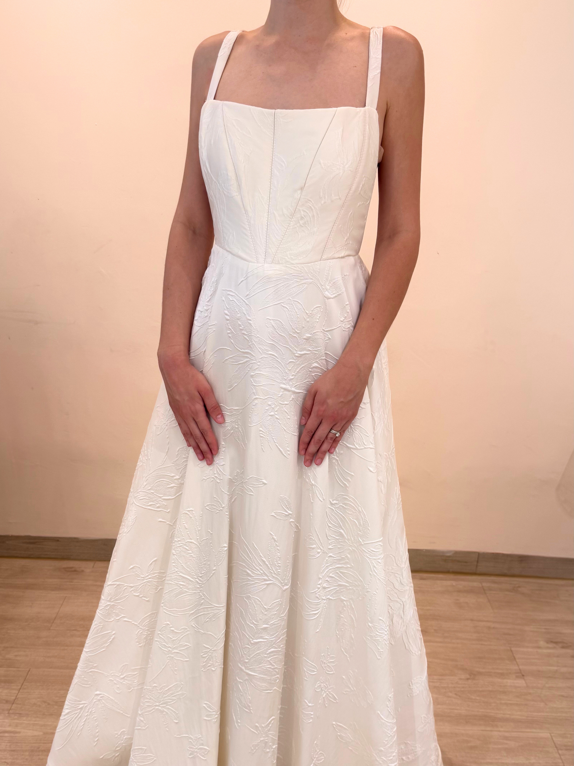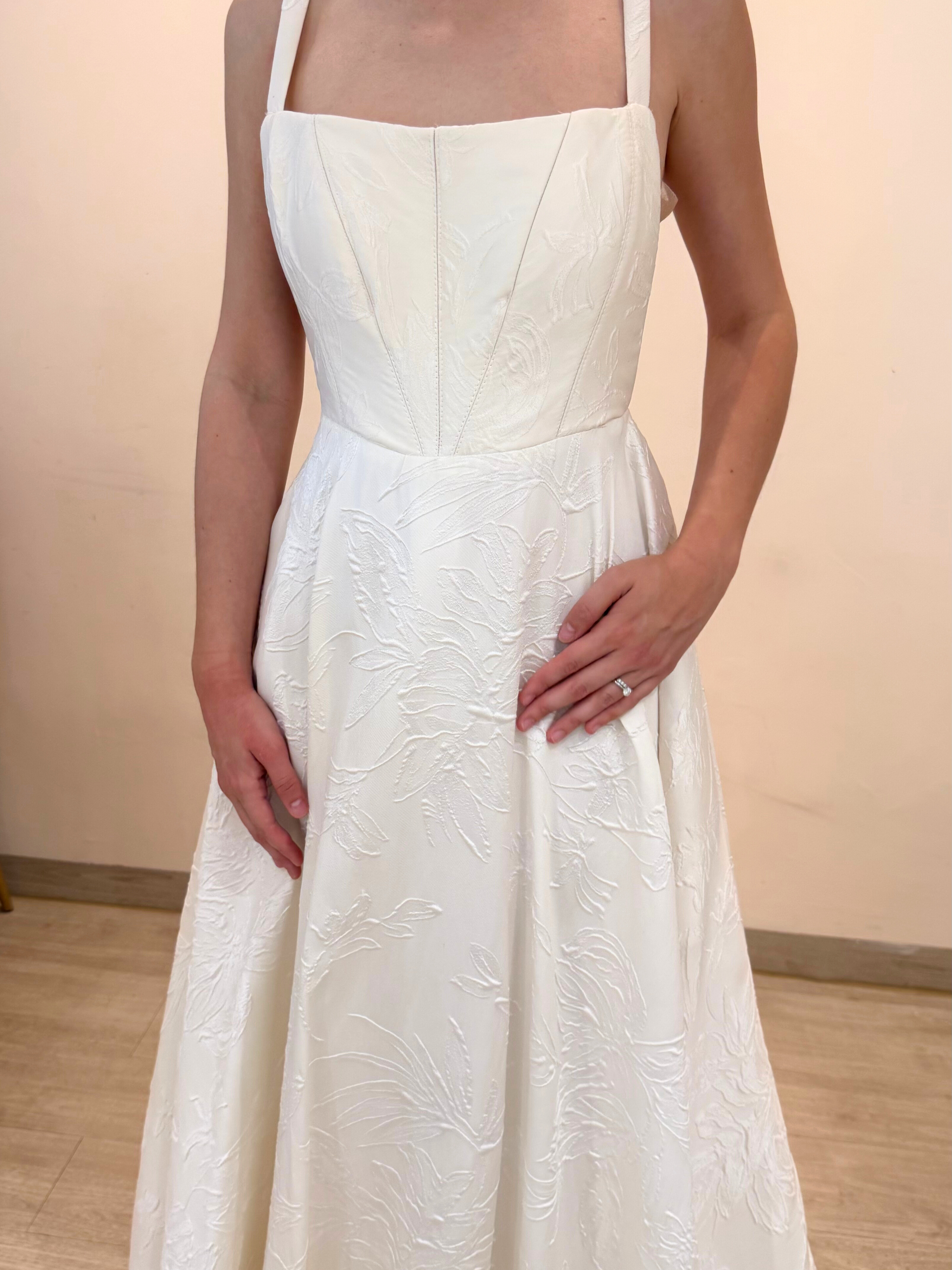 Vestido de novia semi nuevo de tela tono ivory tipo brocado