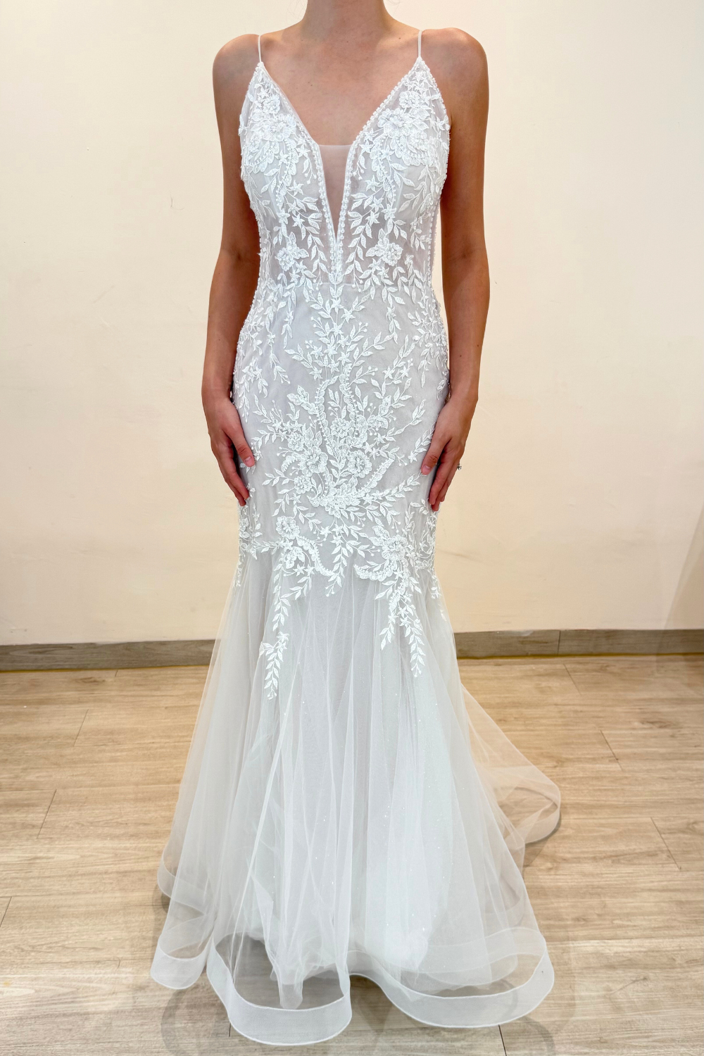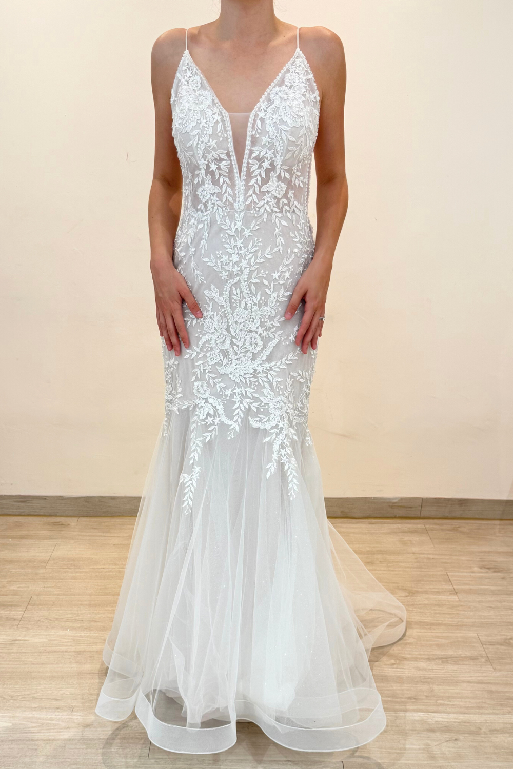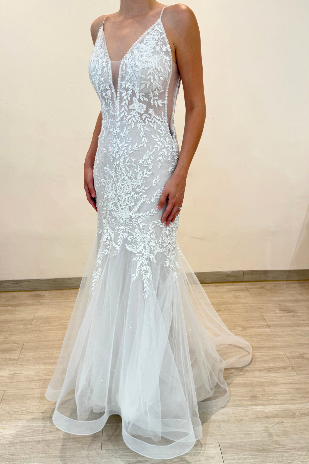 Vestido de novia semi nuevo en corte sirena, con tul de glitter en la segunda capa