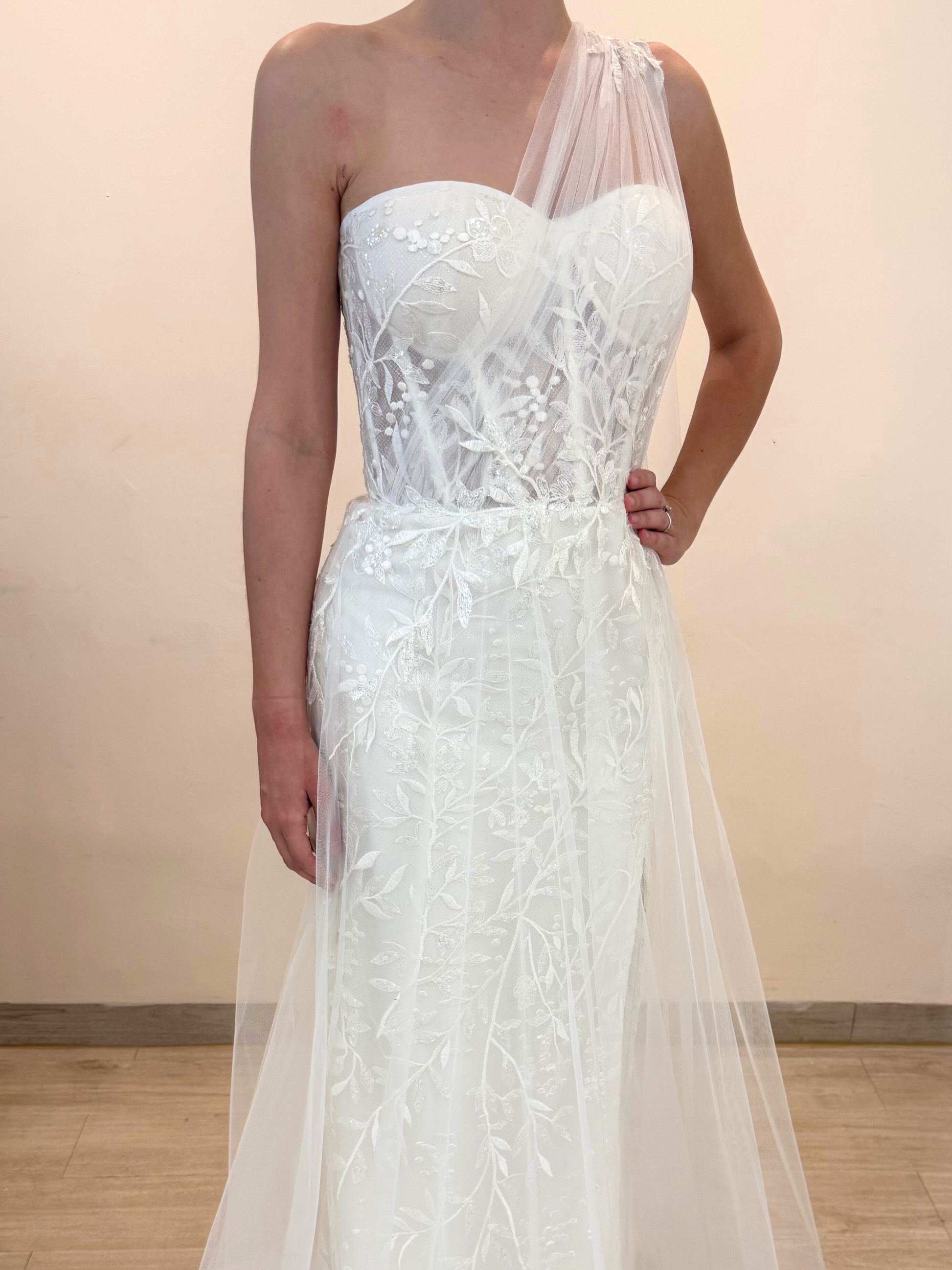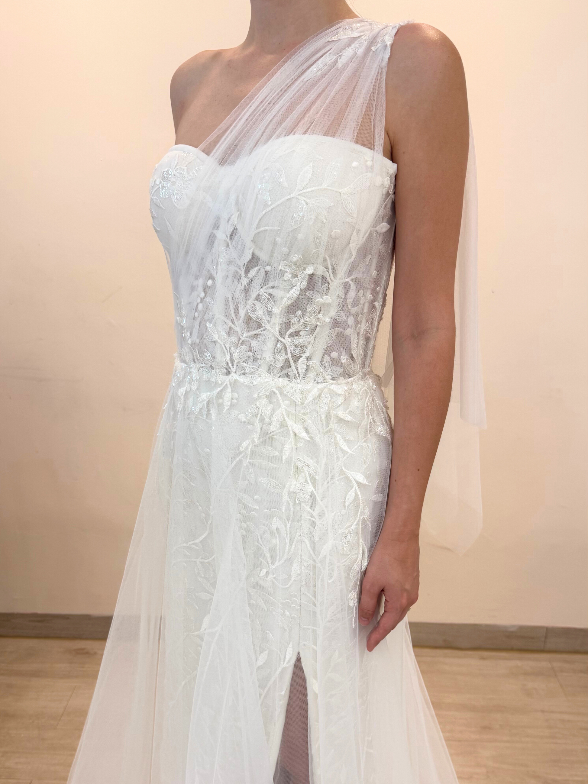 Vestido de novia semi nuevo , con apertura en la falda y una manga