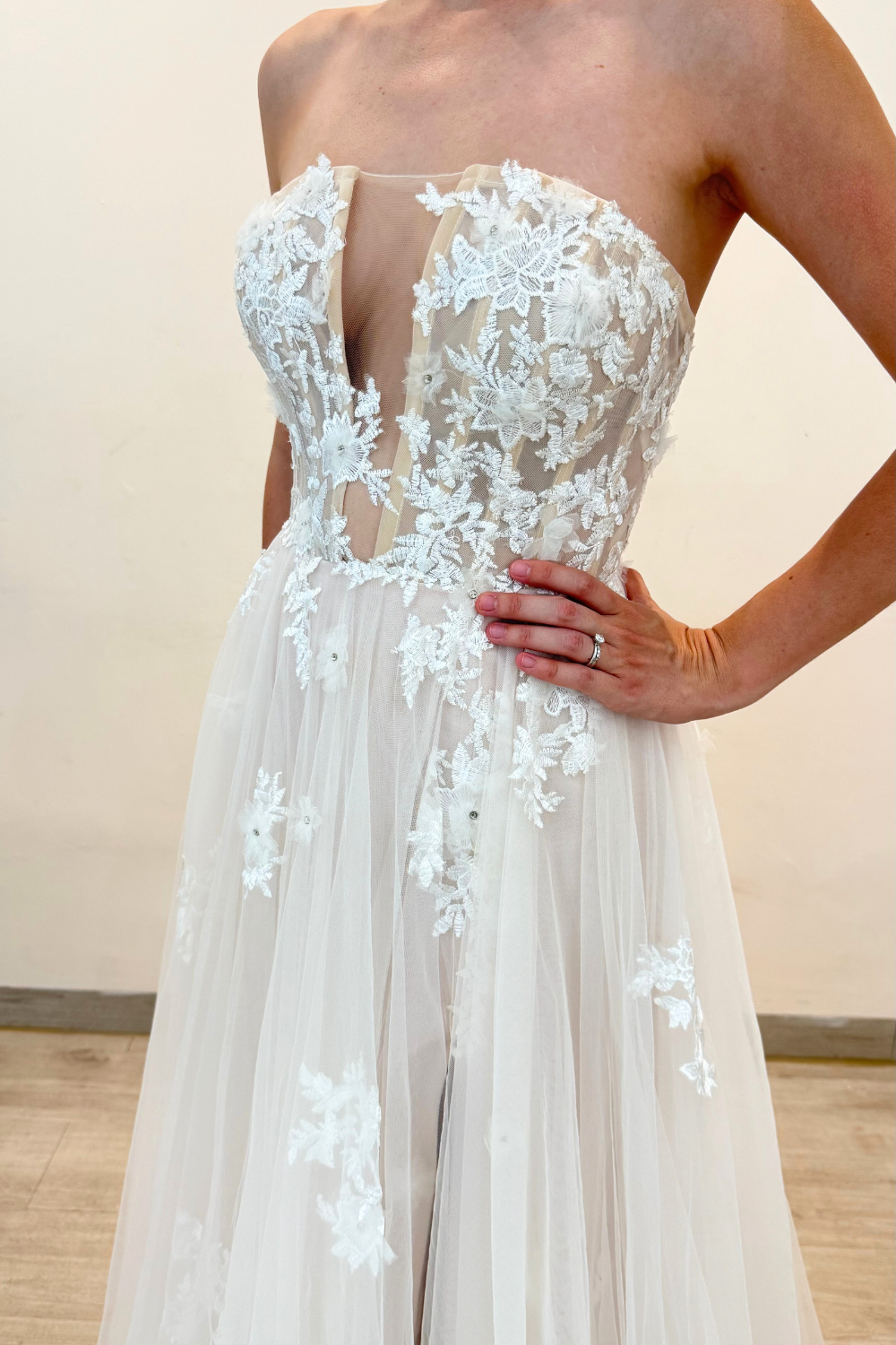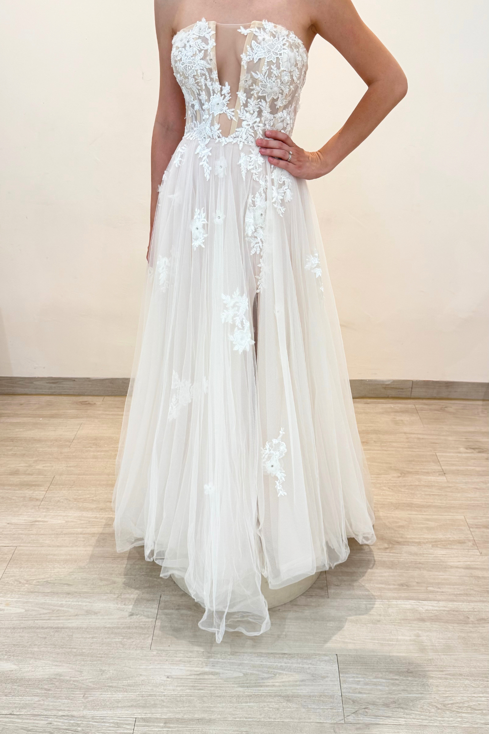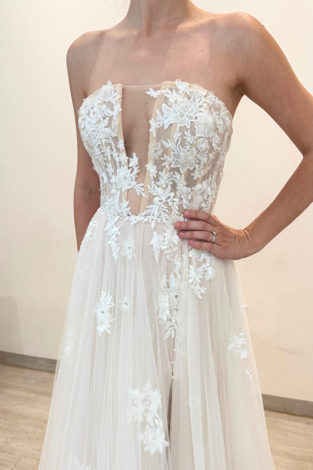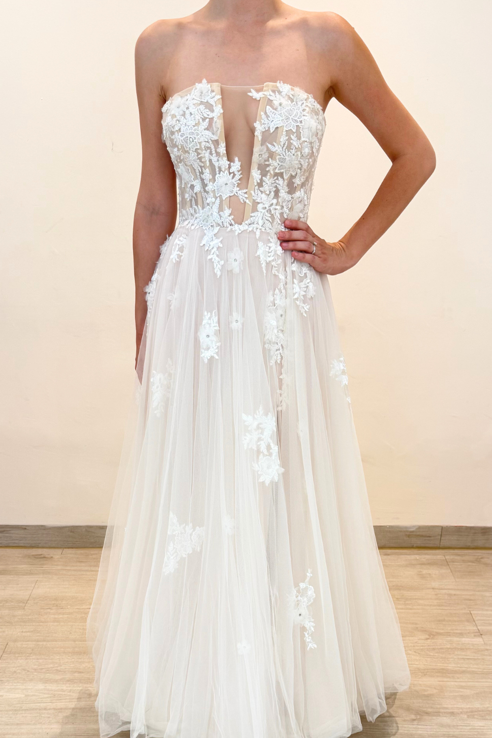 Vestido de novia semi nuevo de tul con aplicaciones 3d bordadas