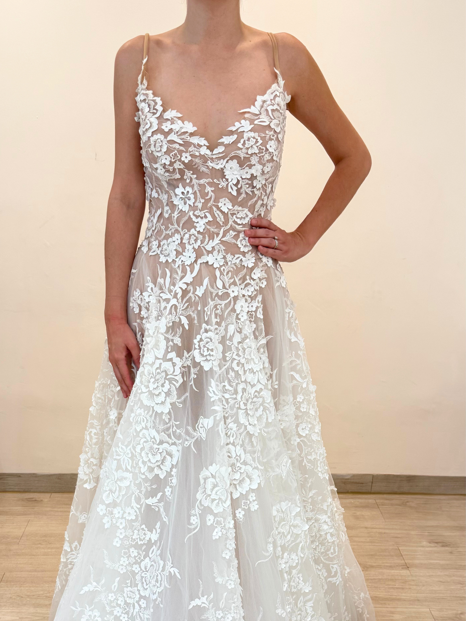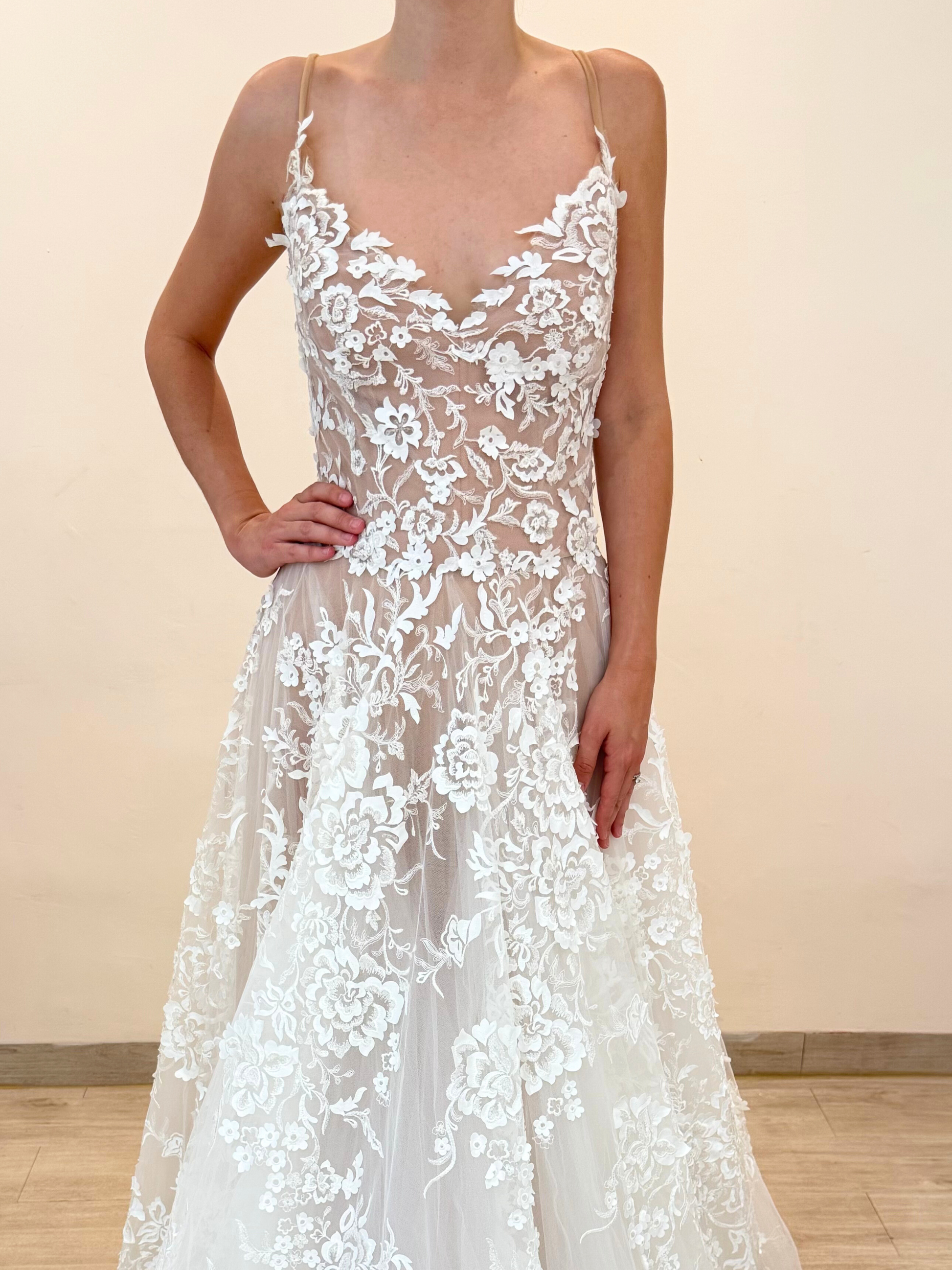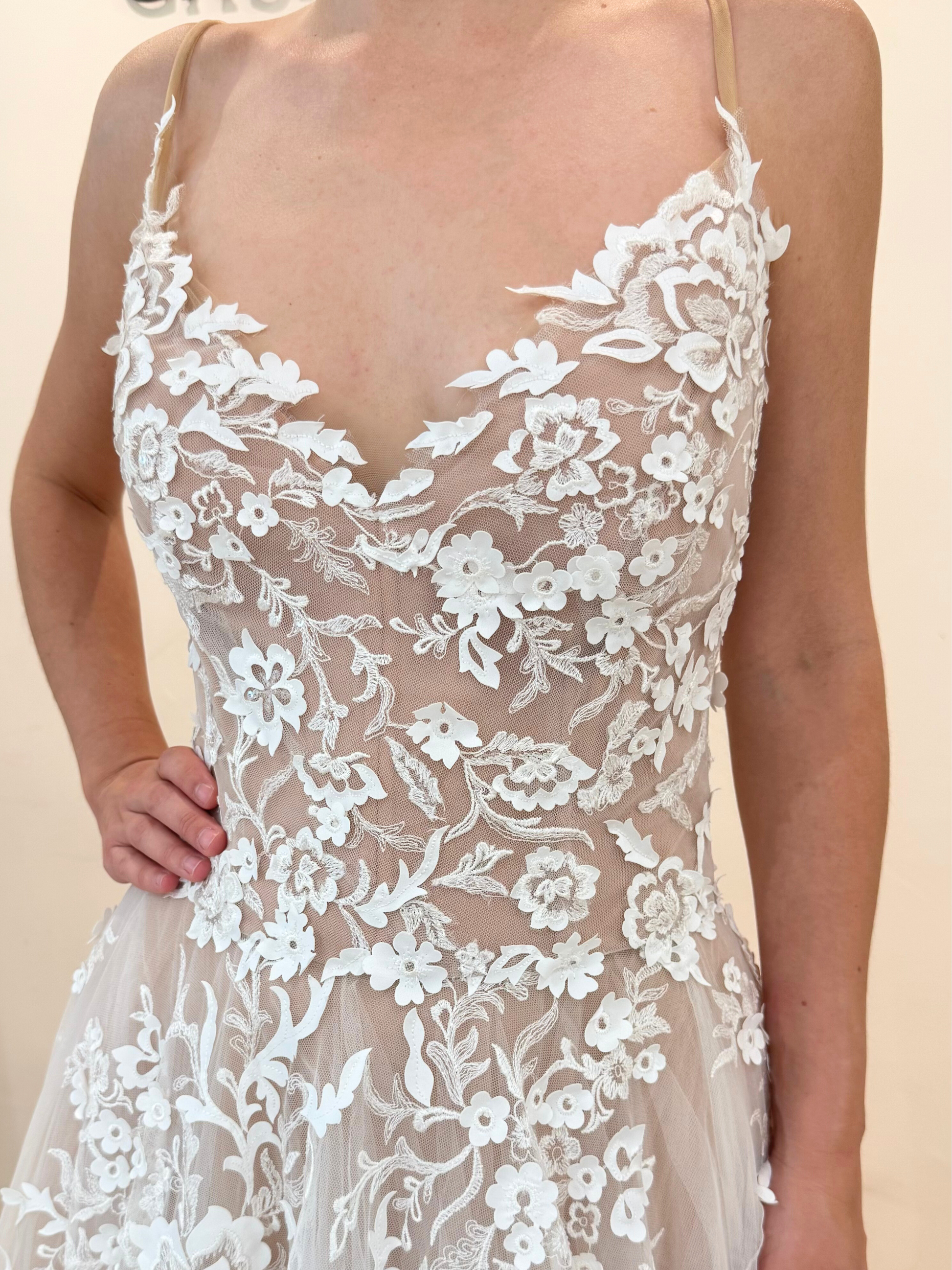Vestido de novia semi nuevo, muy ligero, falda confeccionada de puro tul con aplicaciones bordadas