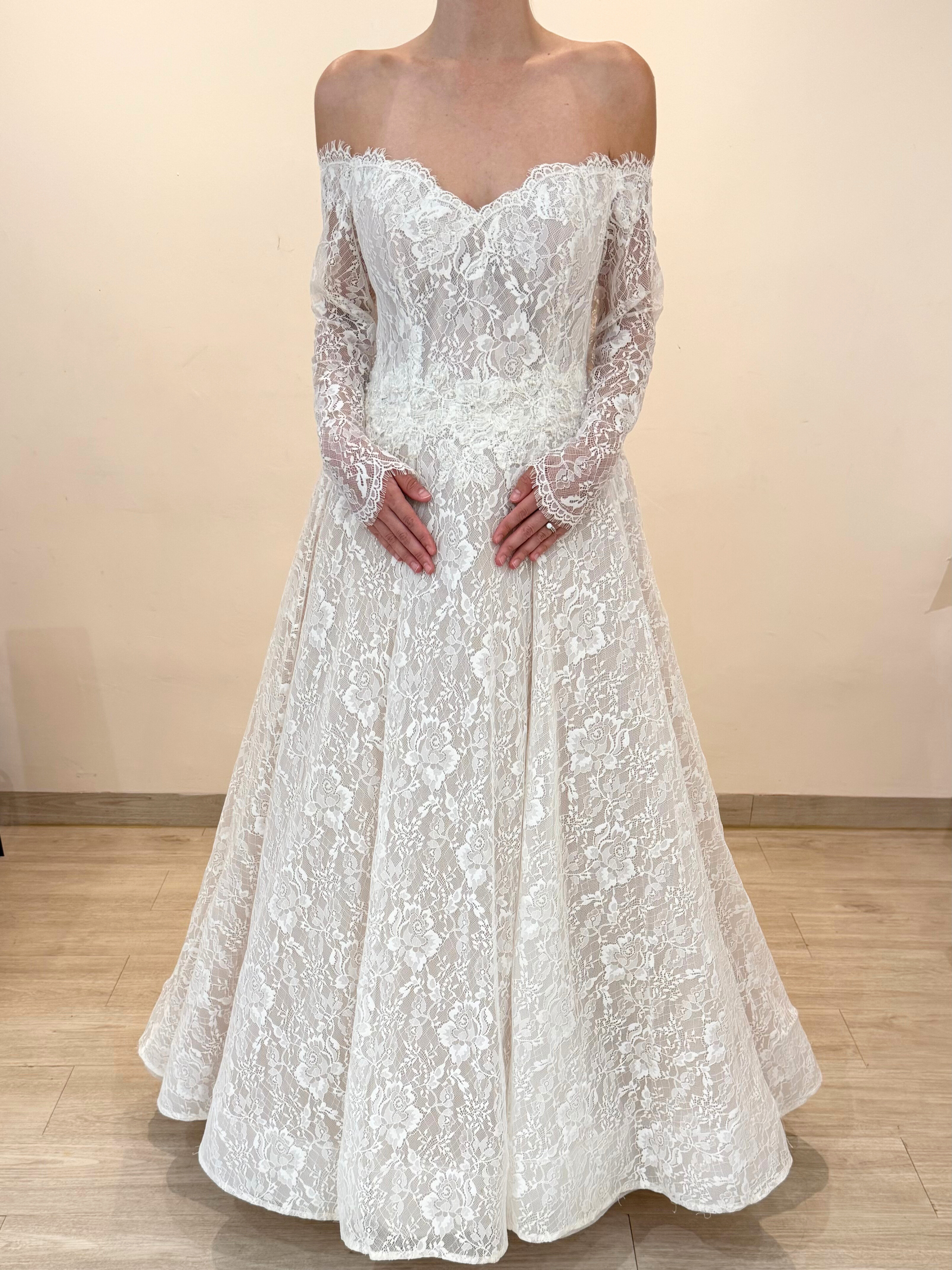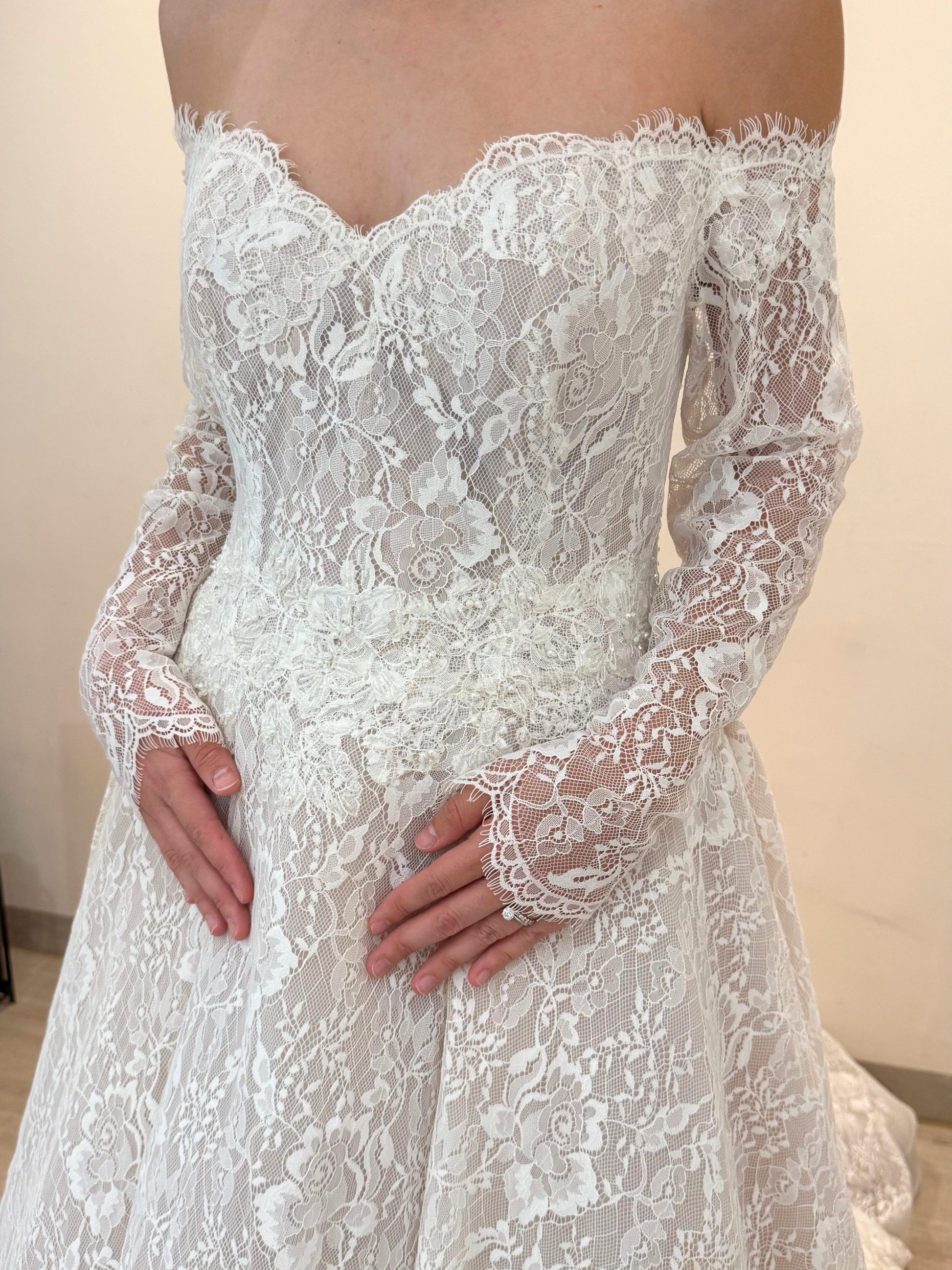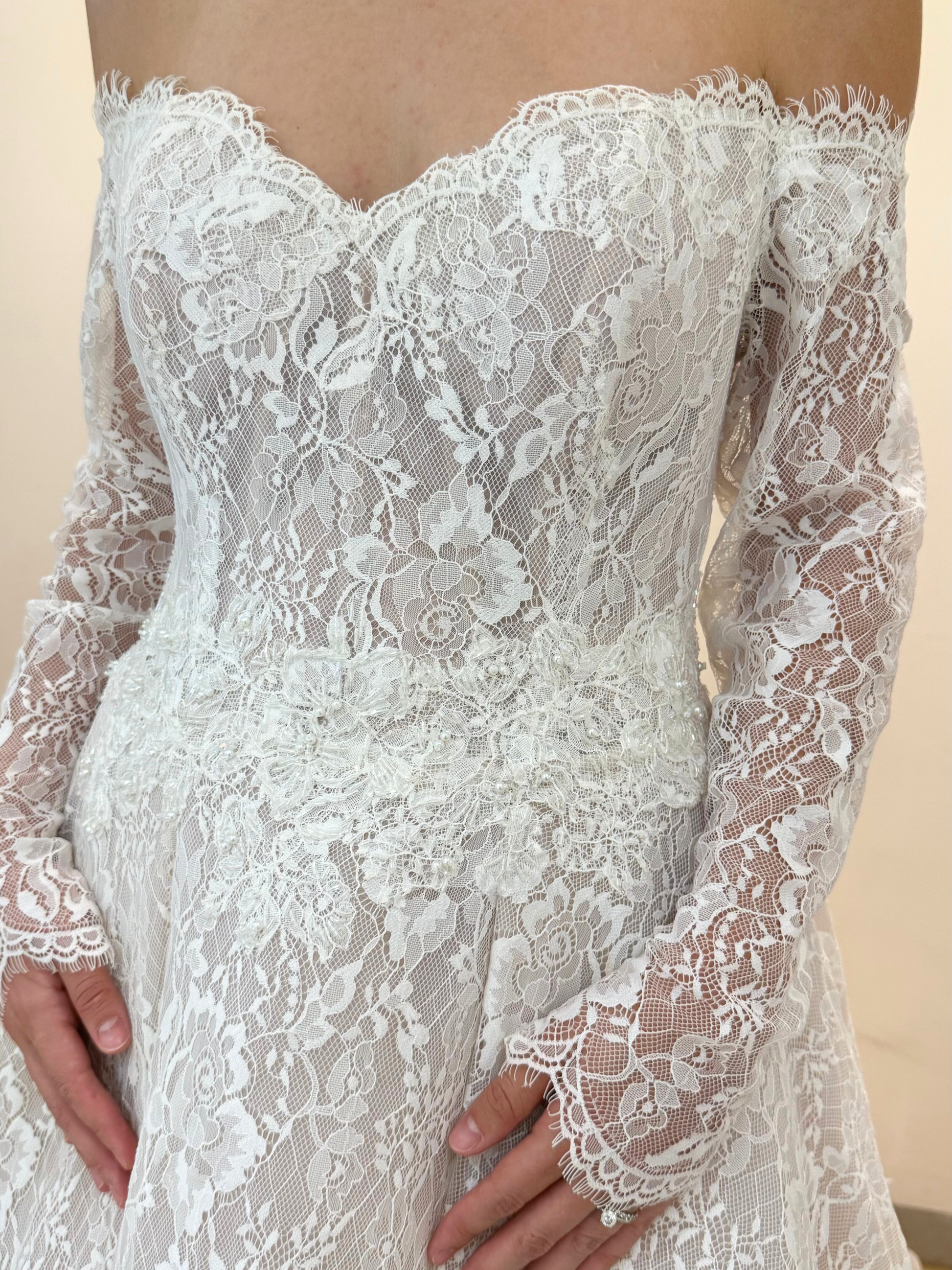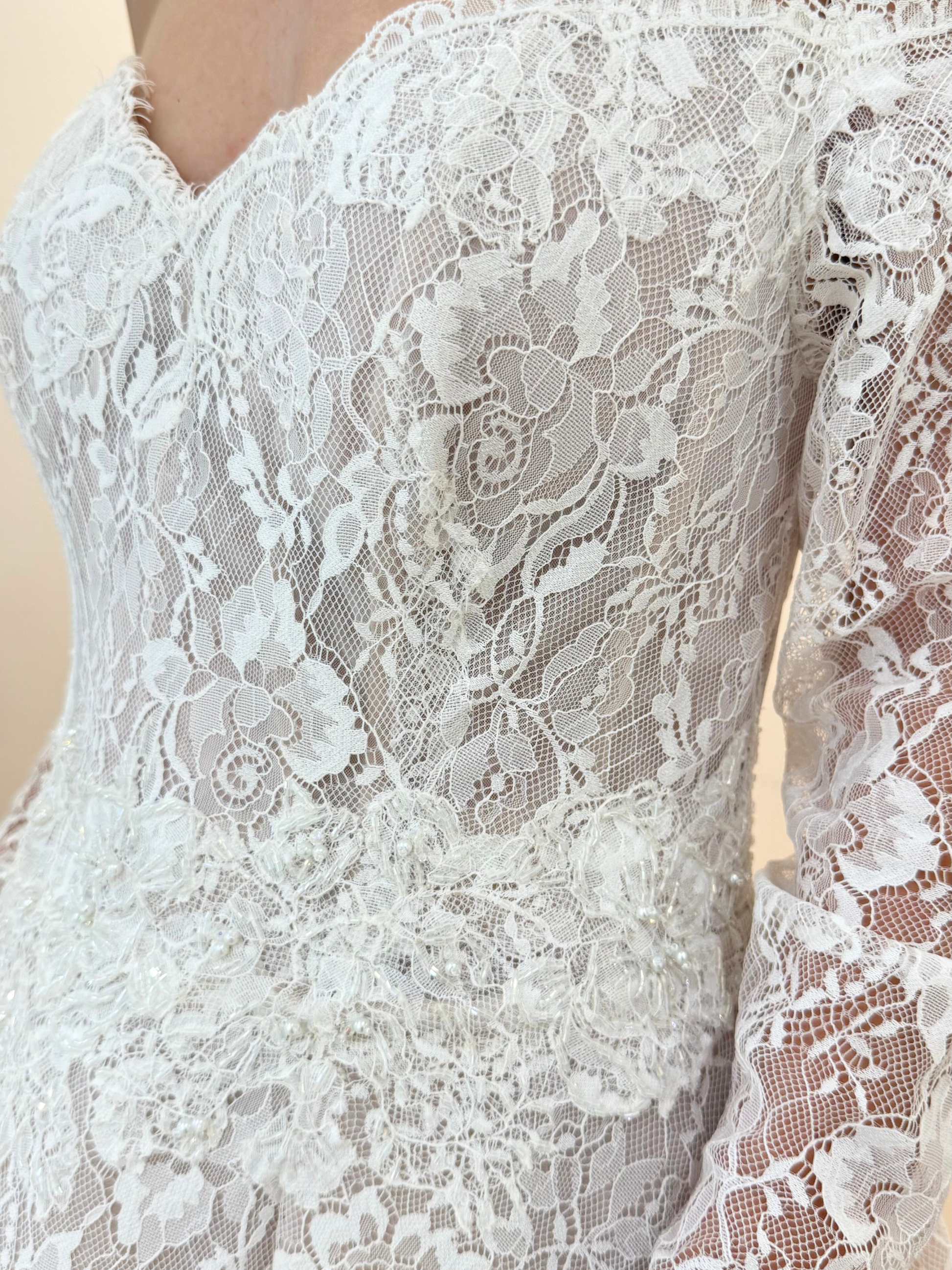 Vestido de novia semi nuevo de encaje francés chantilly con mangas