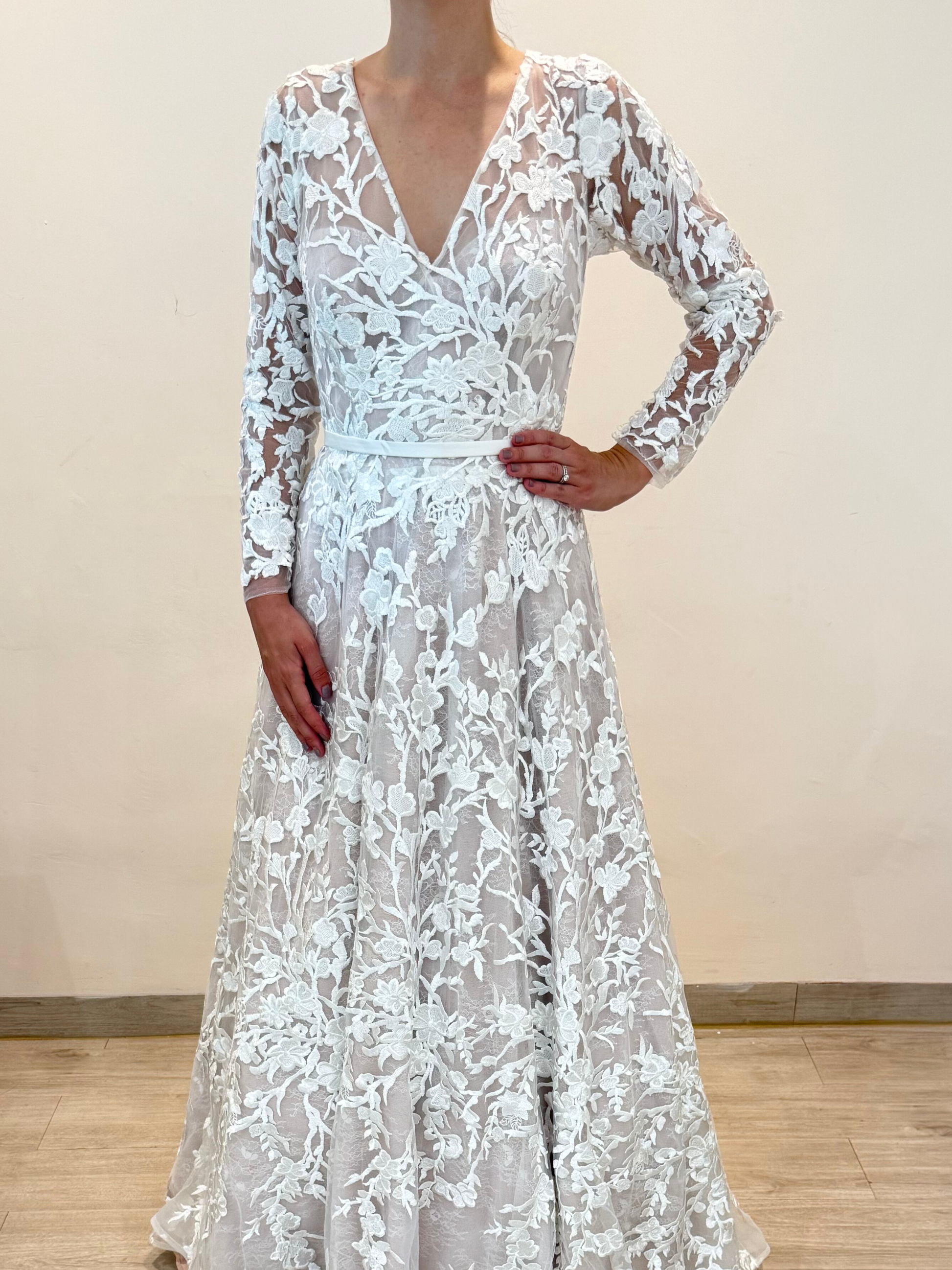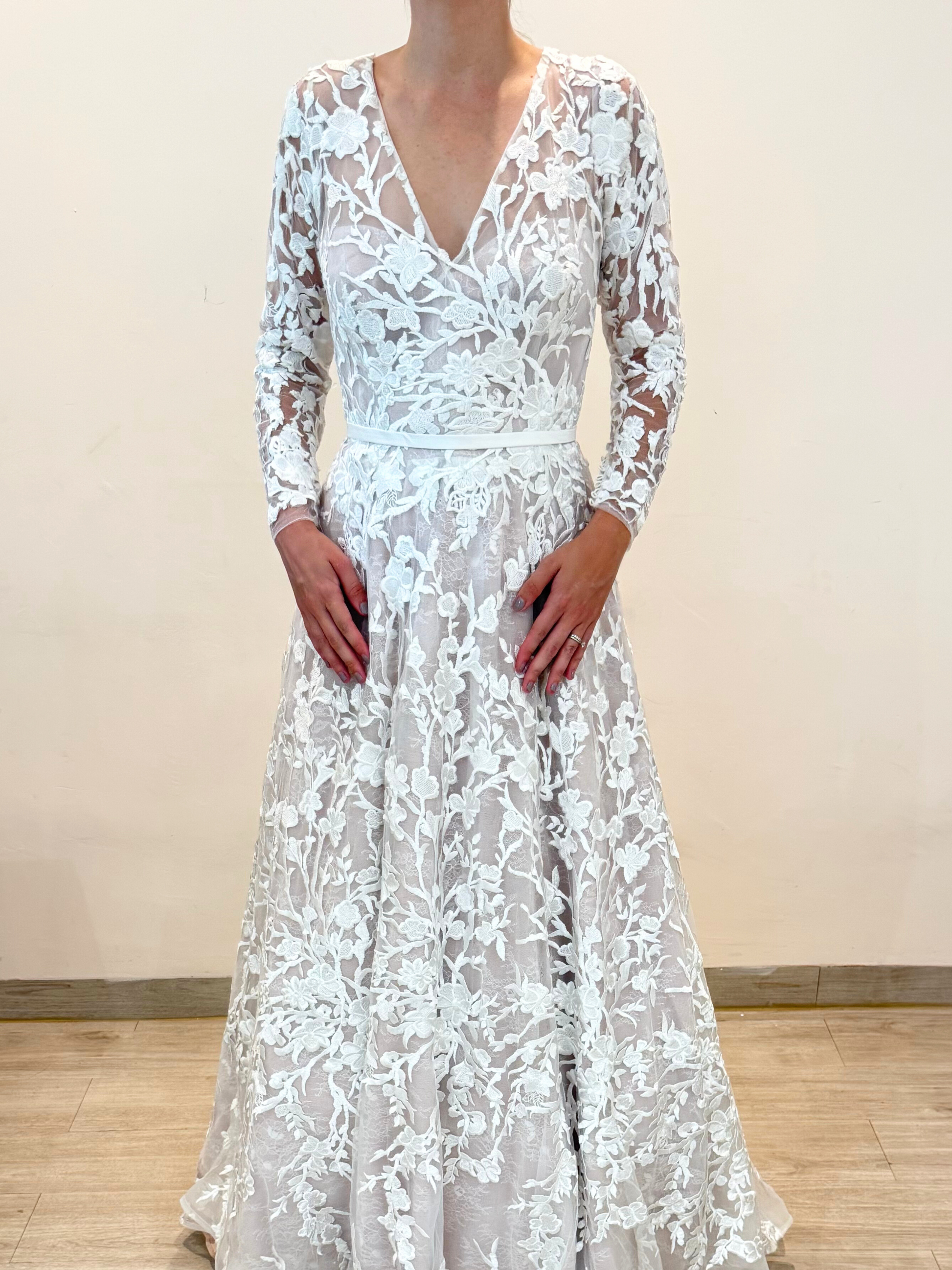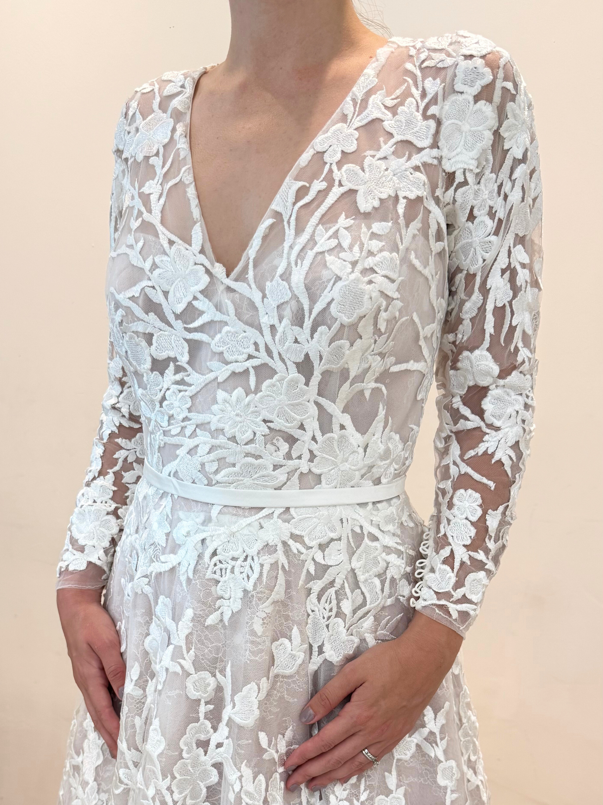 Vestido de novia semi nuevo de manga larga, con cinturón delgado desmontable