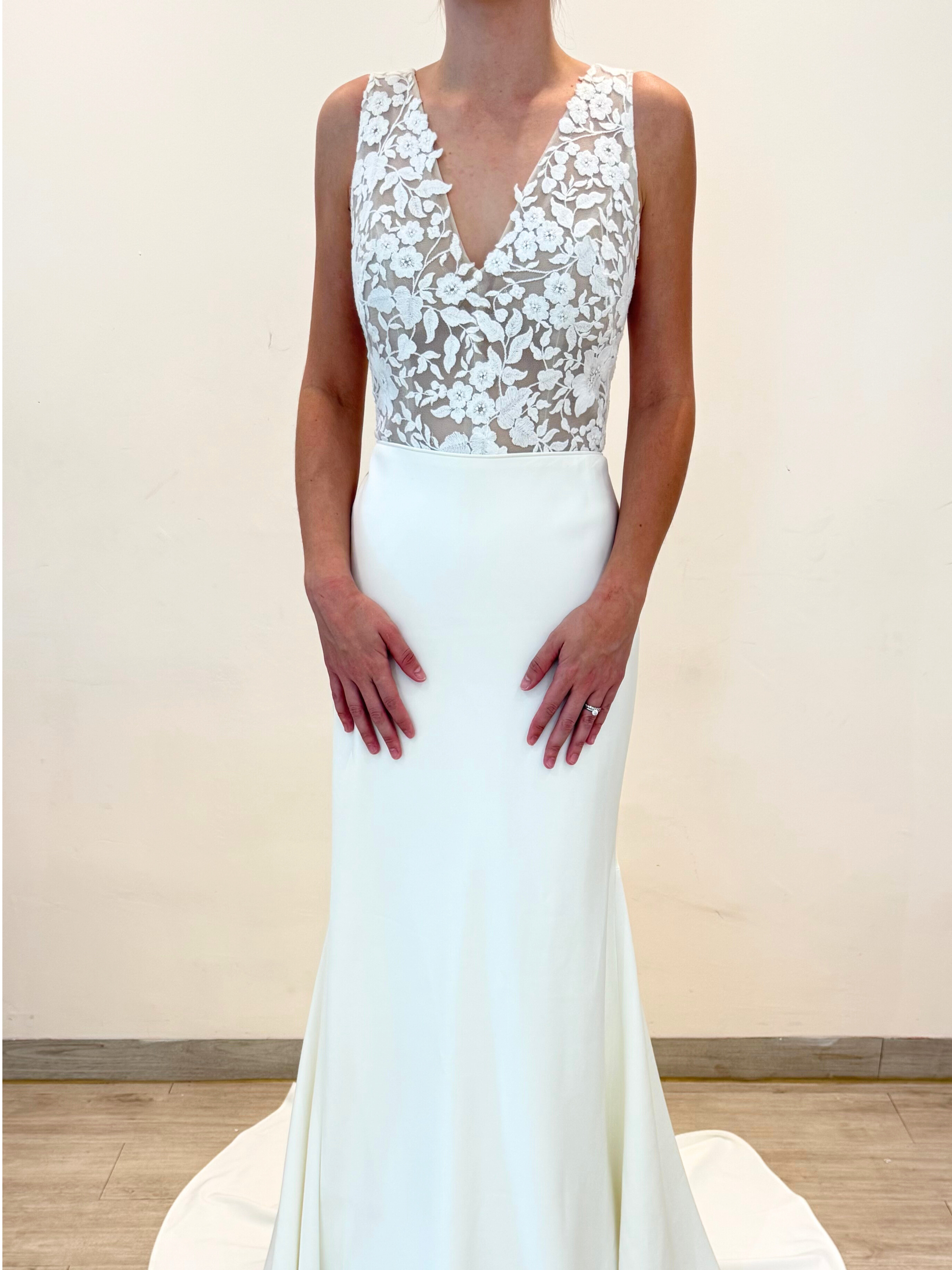 Vestido de novia , semi nuevo, corte sirena, con mangas largas desmontables