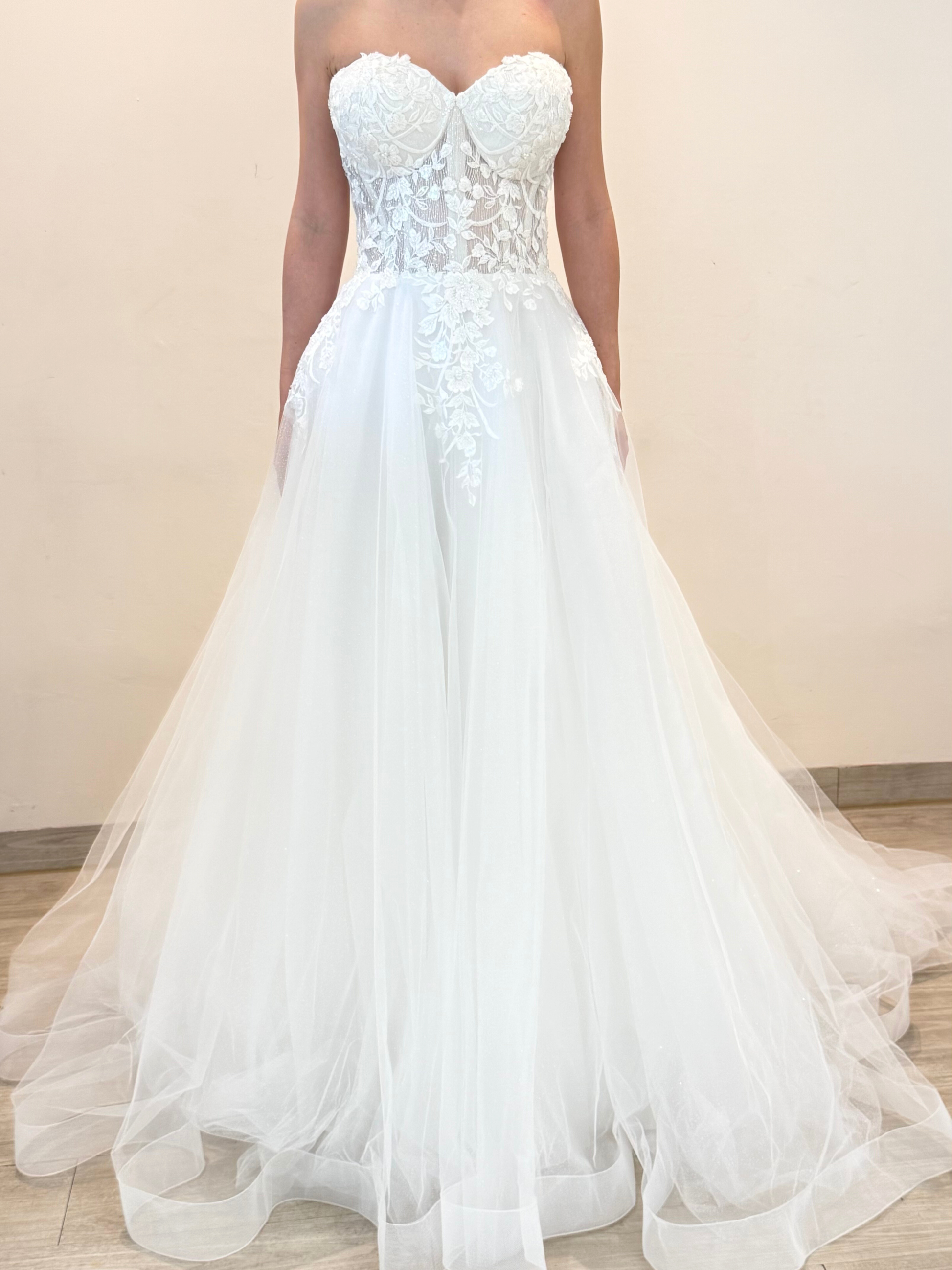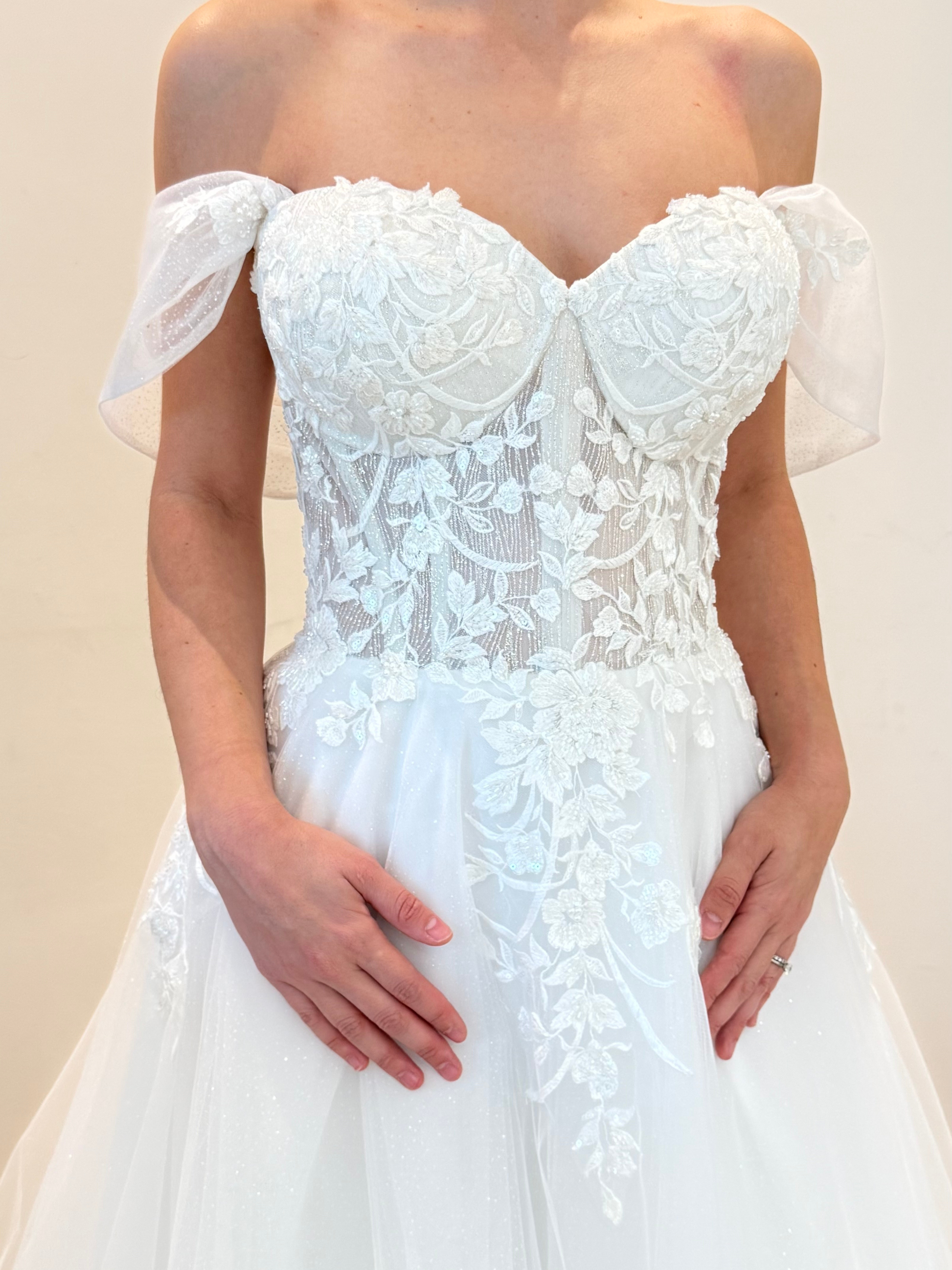 Vestido de novia nuevo con mangas desmontables de escote corazón