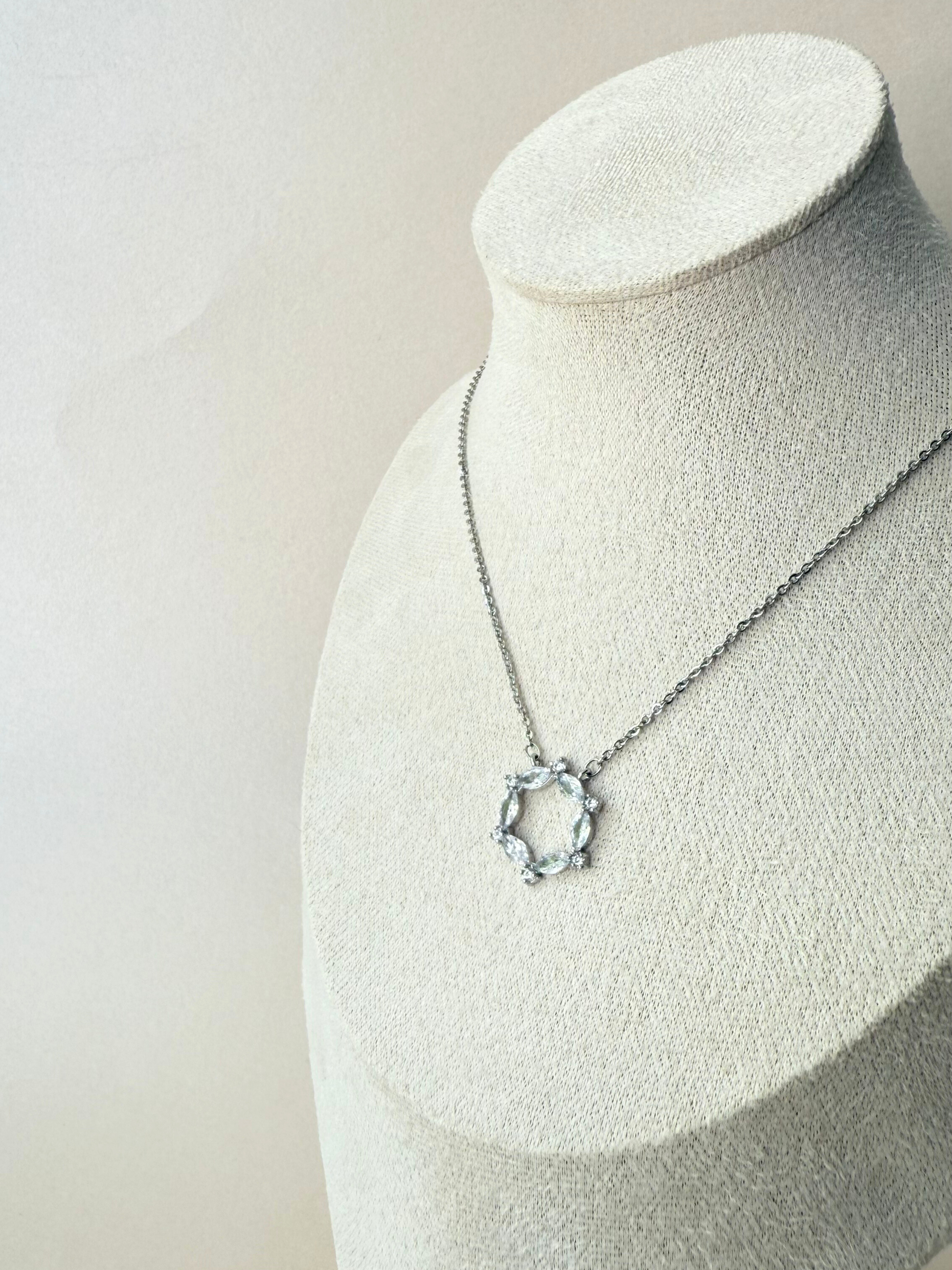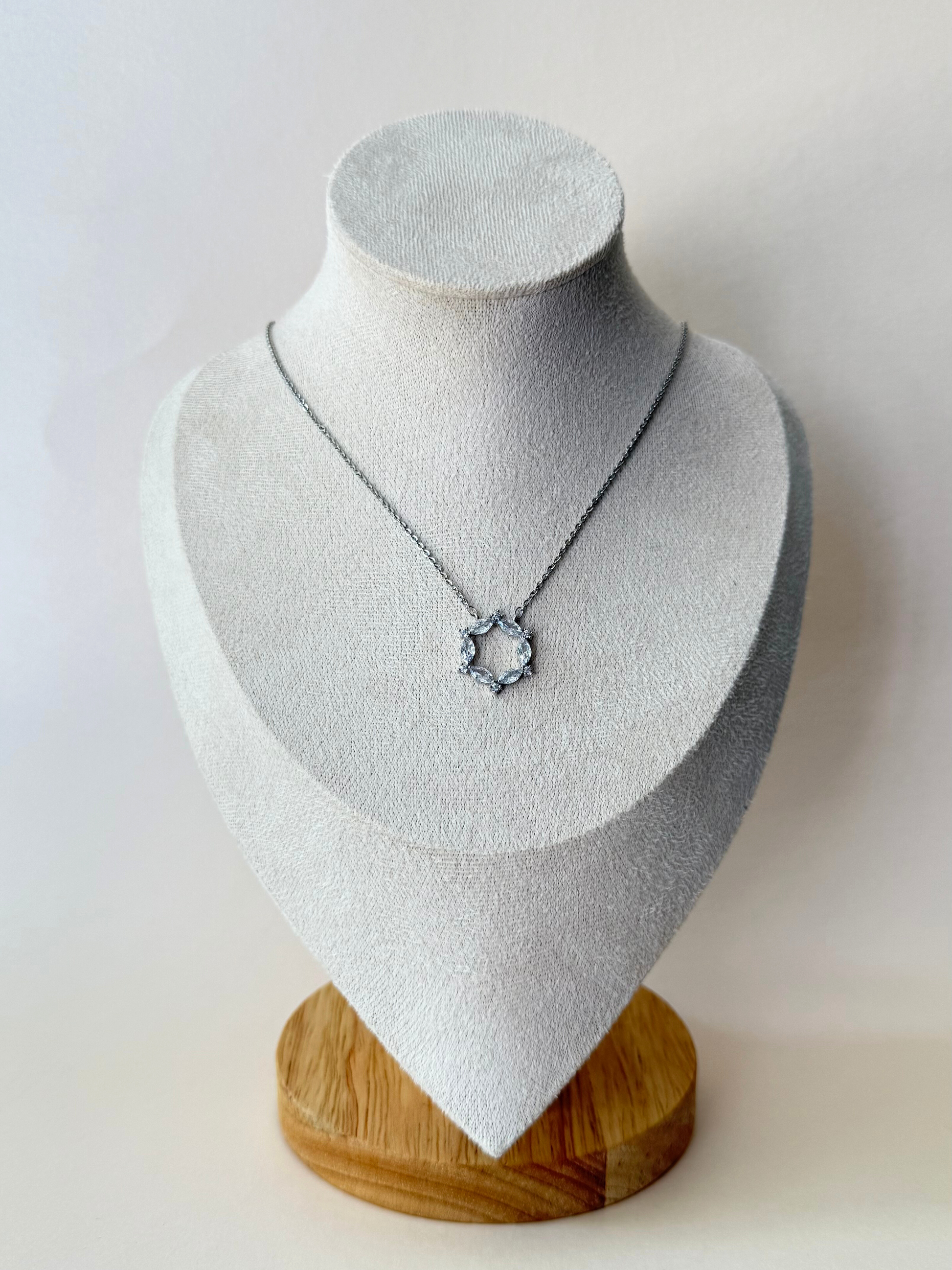 Cadena y dije de chapa de rodio con circonias en forma de hojas