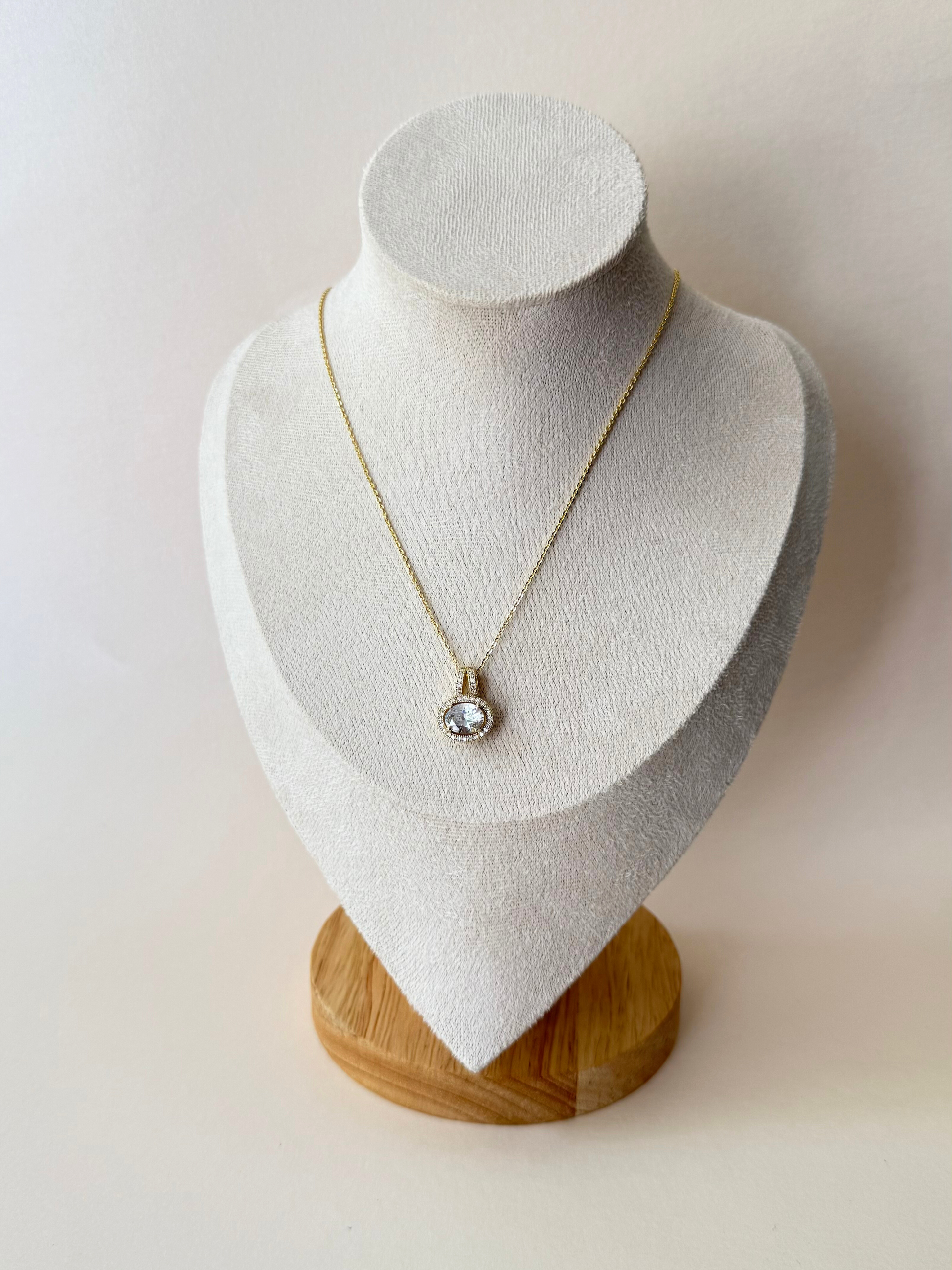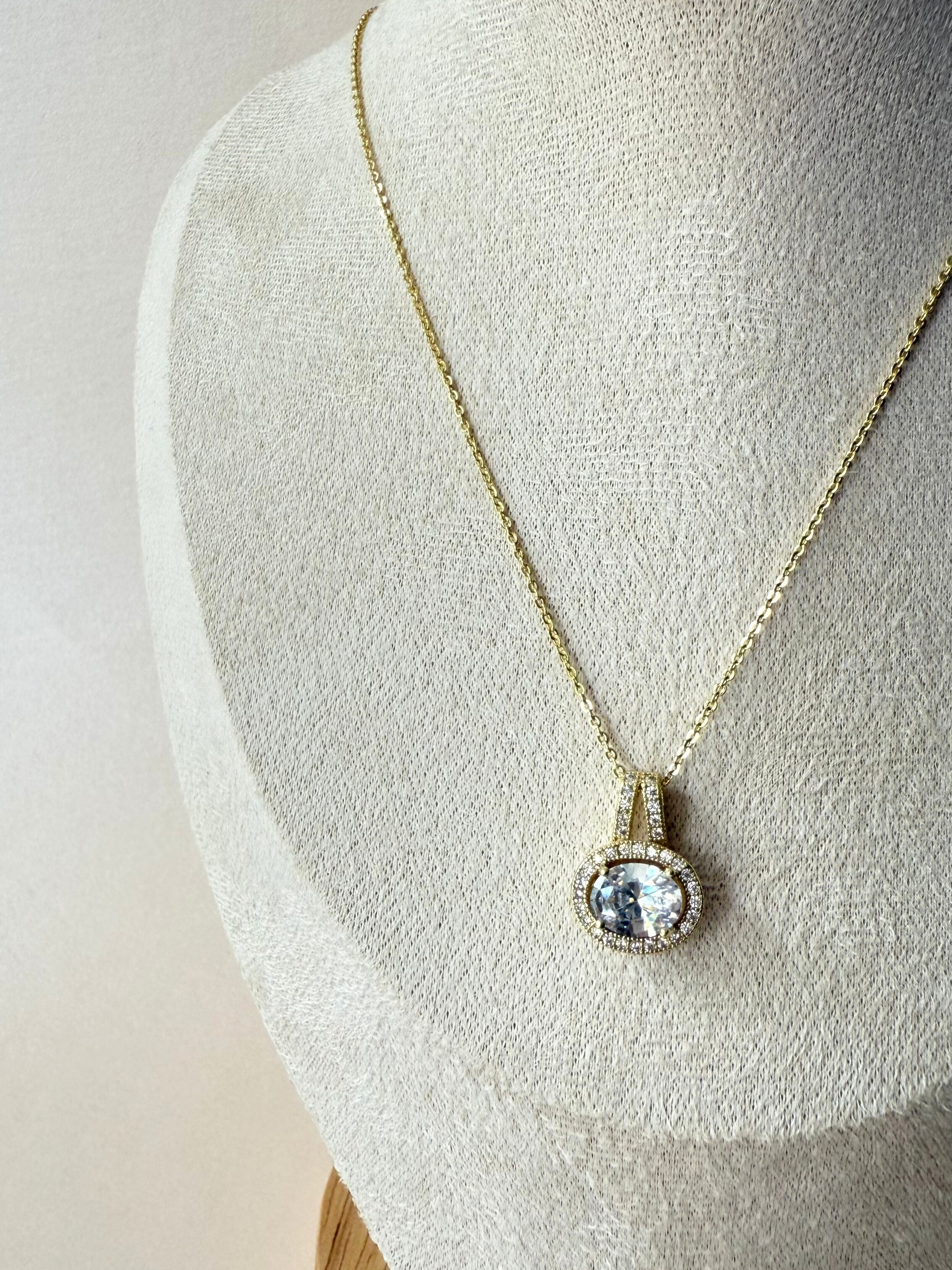 Cadena y Dije con chapa de oro con circonia ovalada