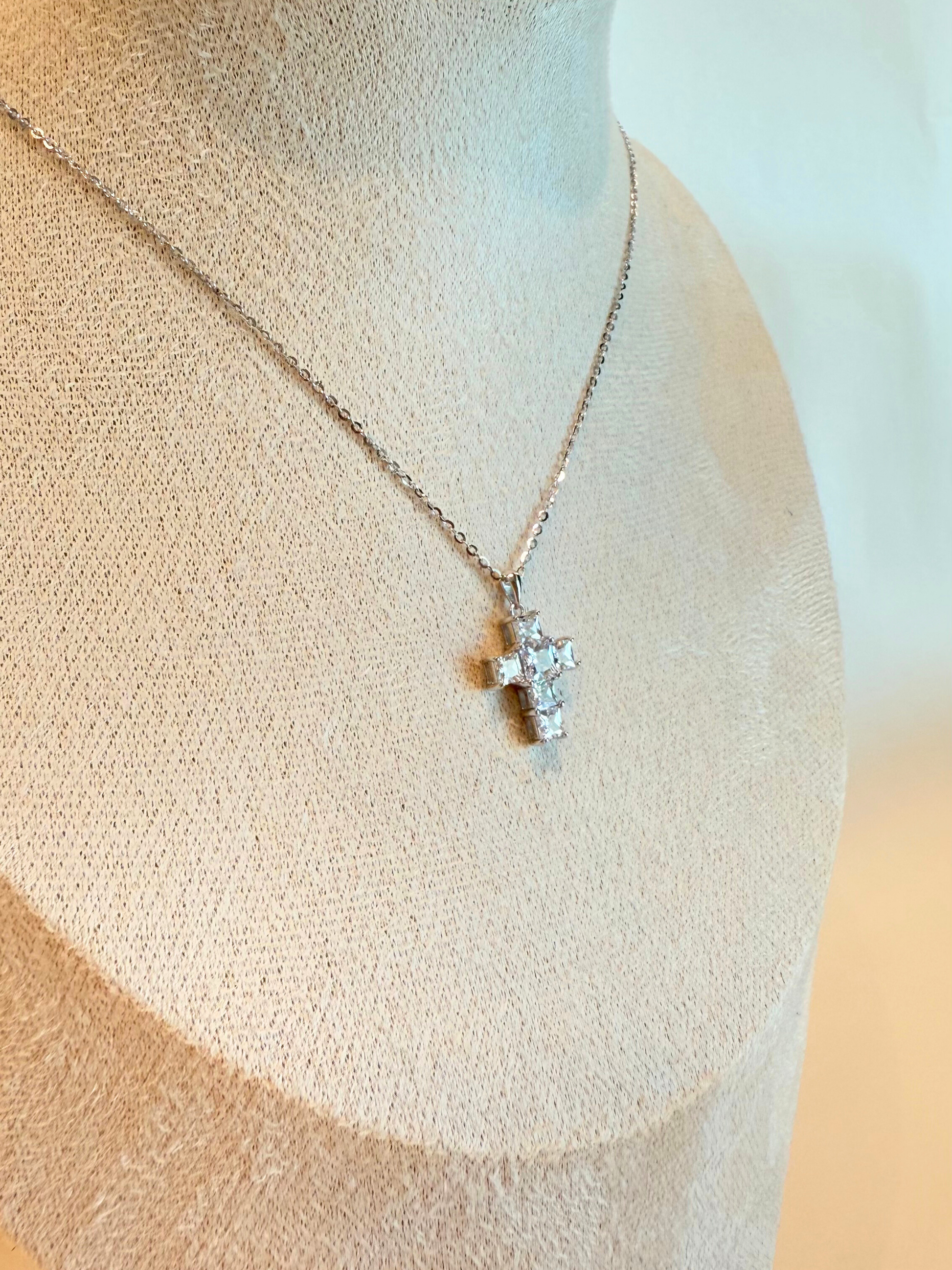 Cadena y dije de cruz de plata .925 con circonias