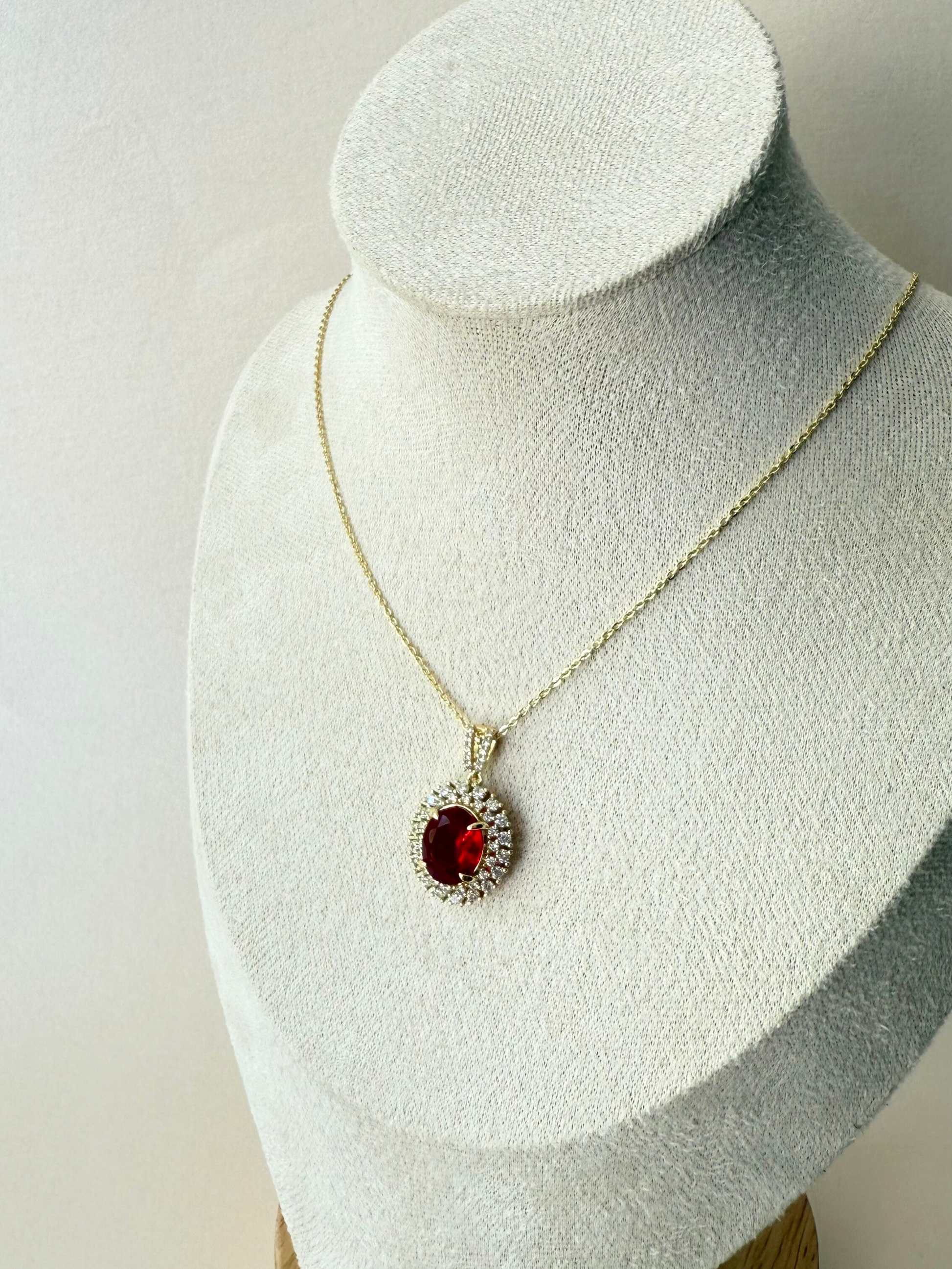 Cadena y dije en chapa de oro con circonia imitación de rubí