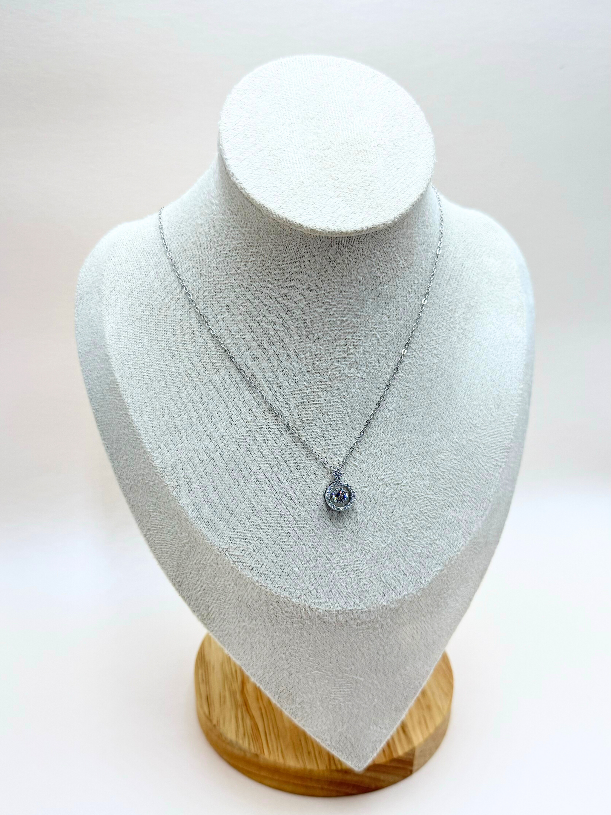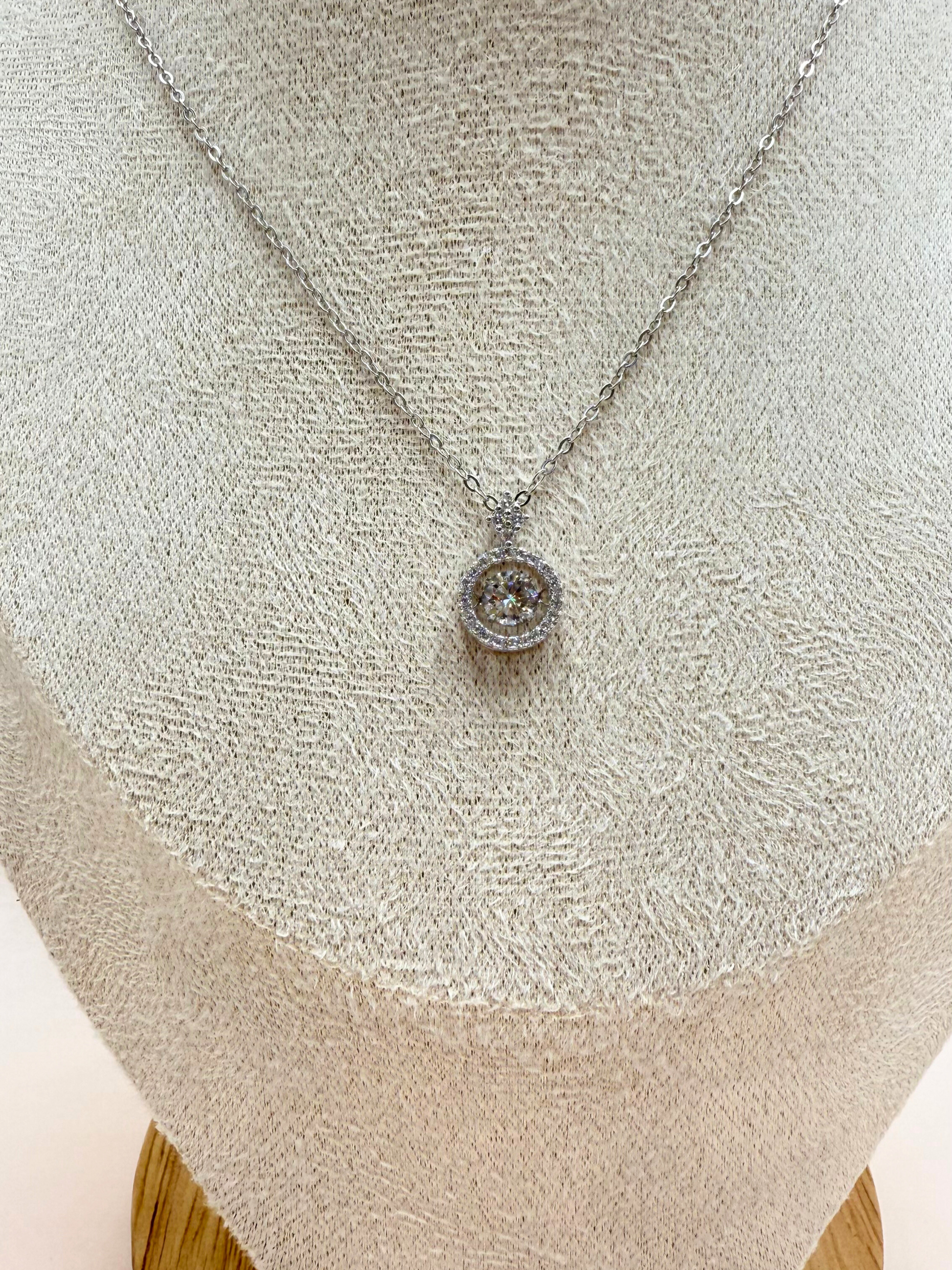 Cadena y dije de plata .925 y moissanitas en tono plateado