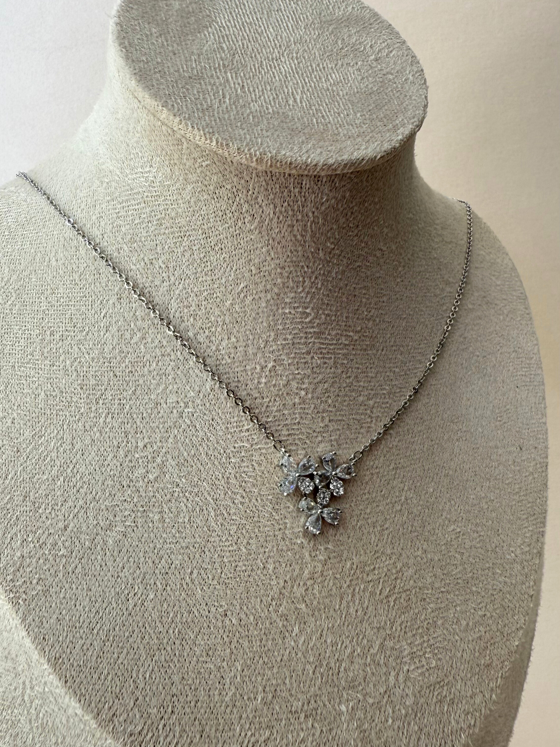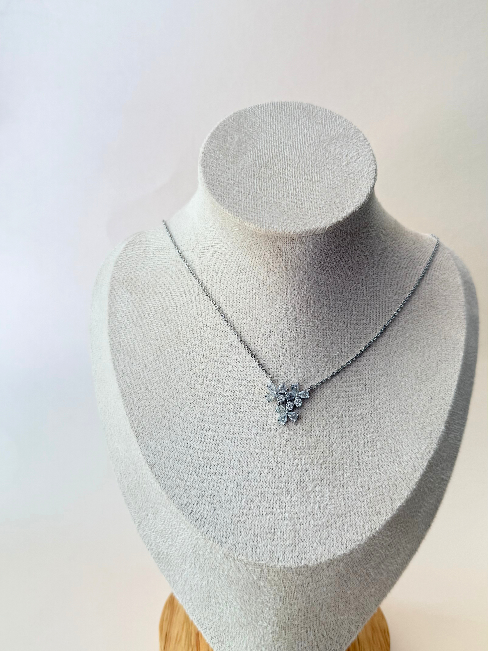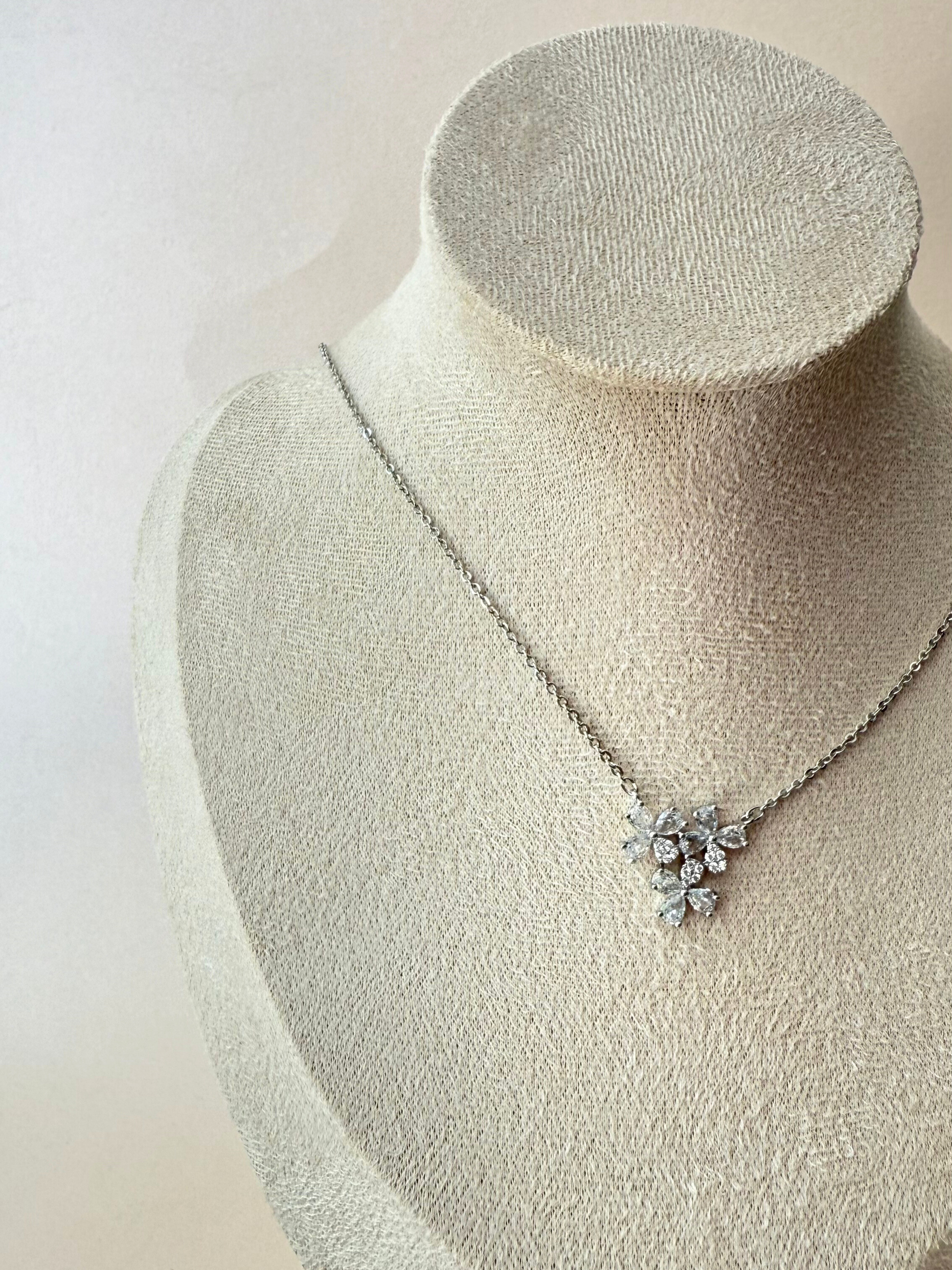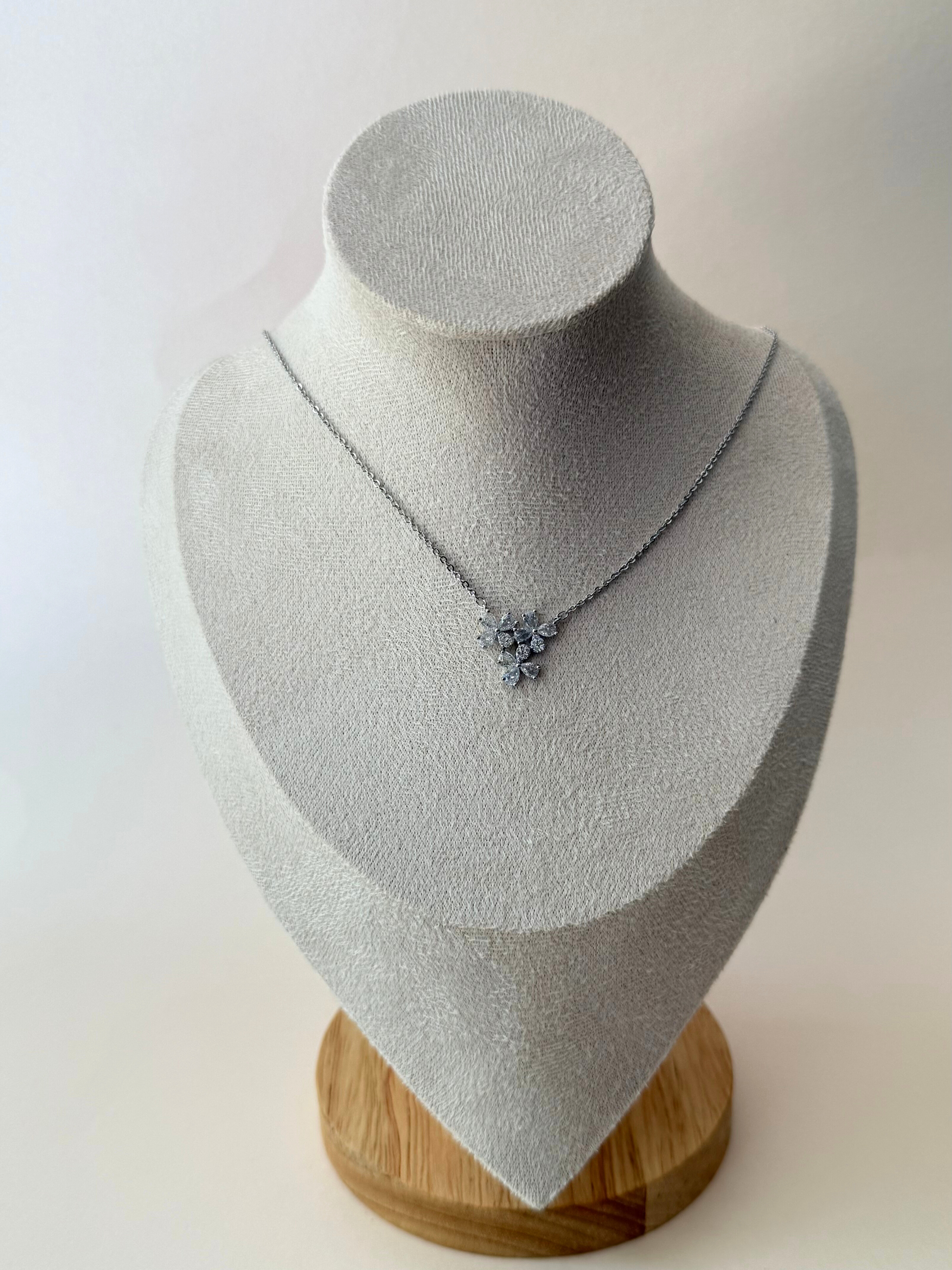 Cadena con dije en chapa de rodio, con flores formadas por circonias