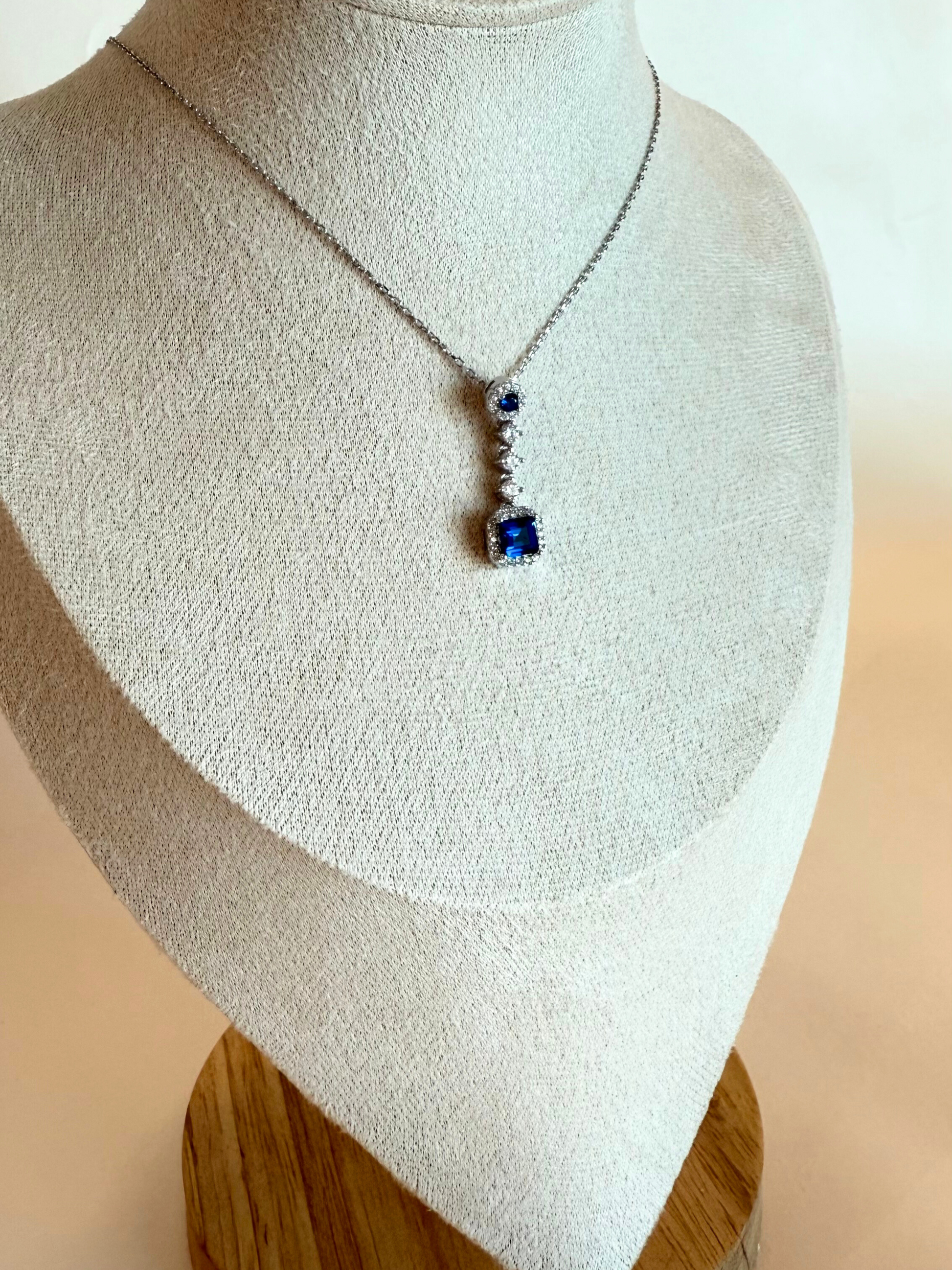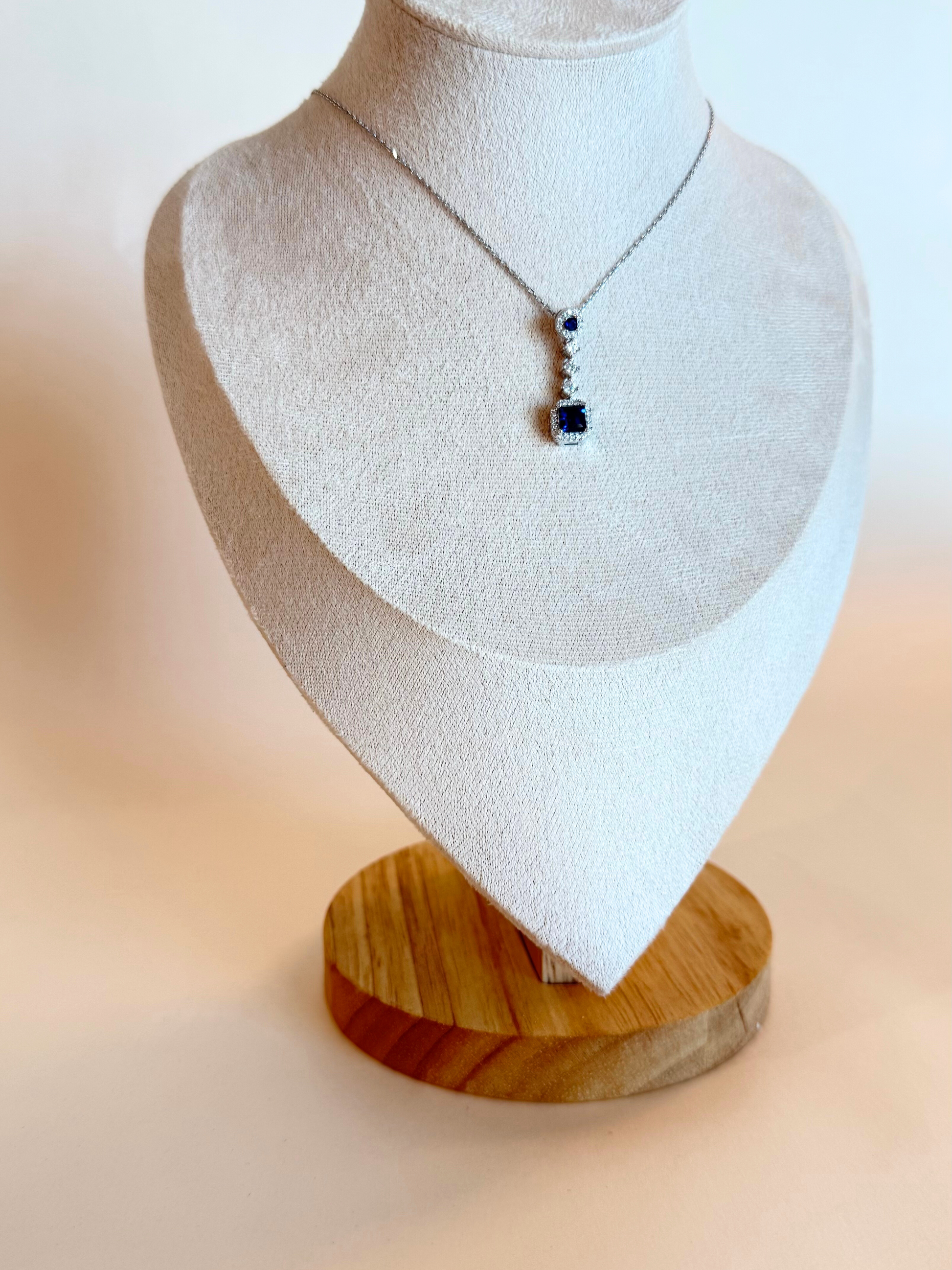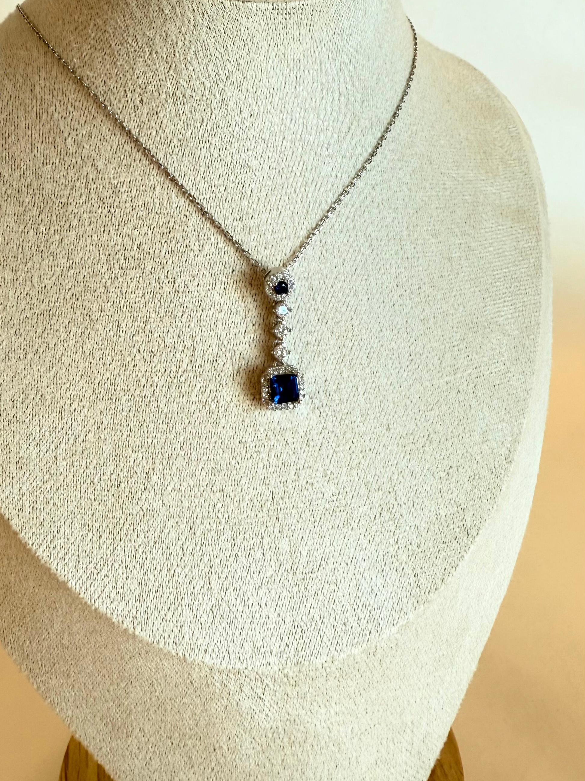 Cadena y dije de plata .925 con circonias y piedra de imitación de zafiro
