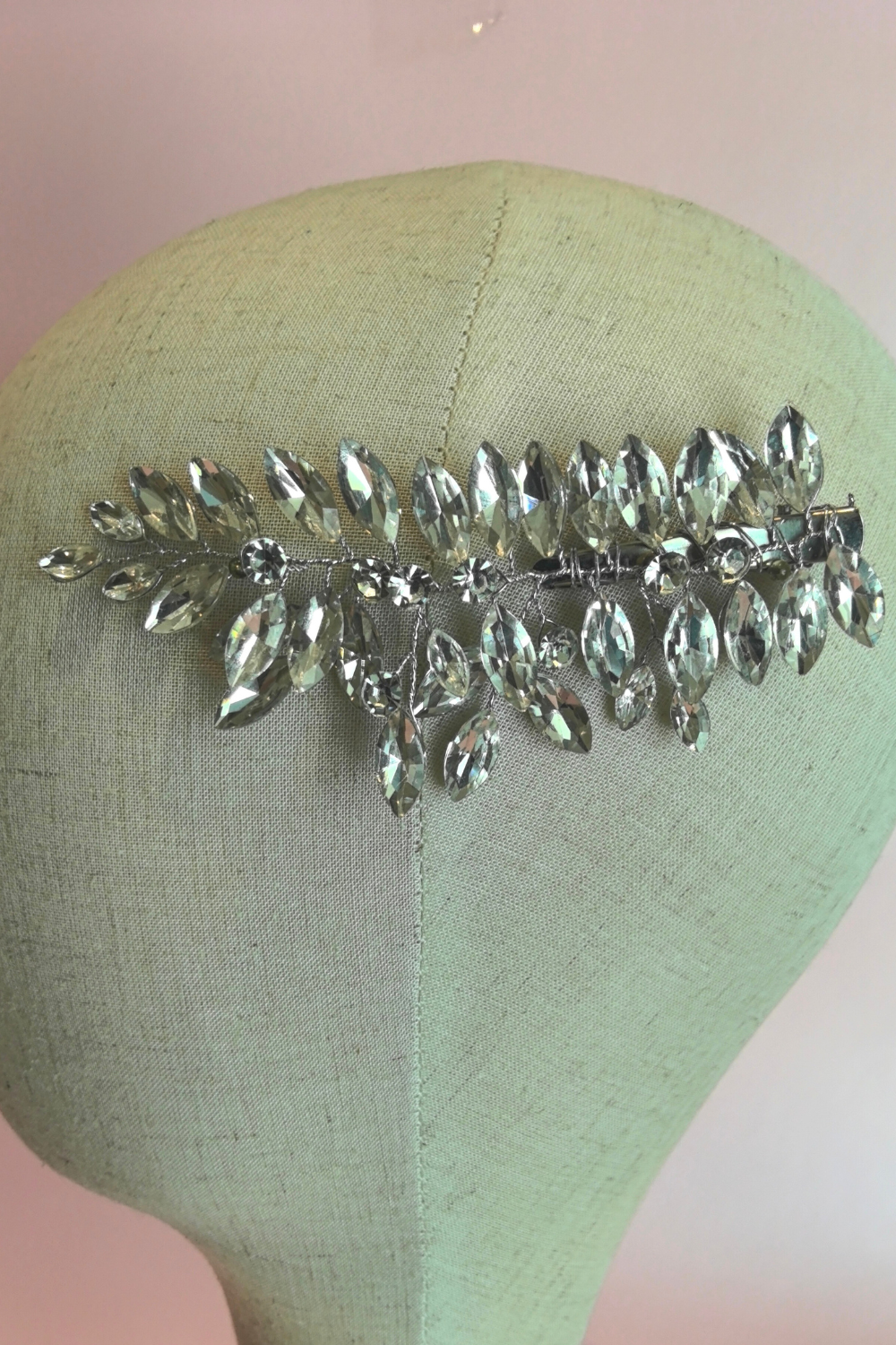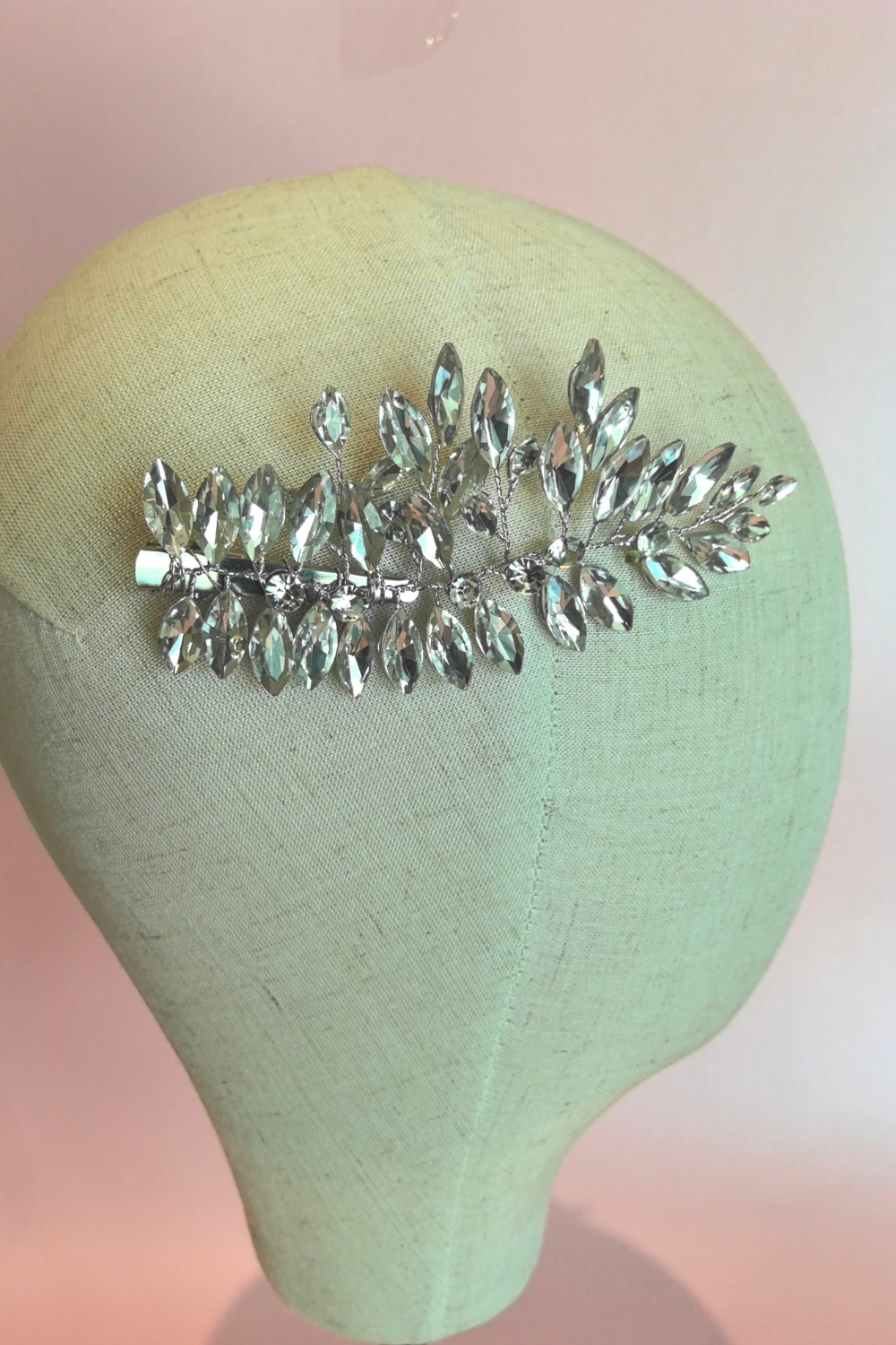 Dos pinzas con ramaje flexible de metal y pedrería en tono plateado