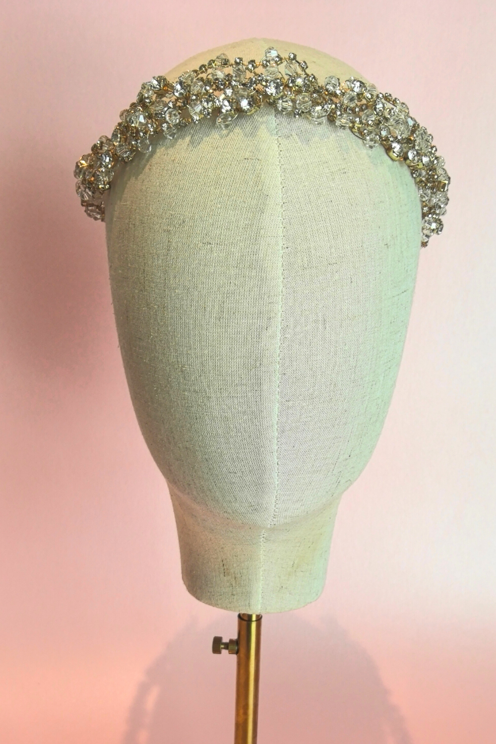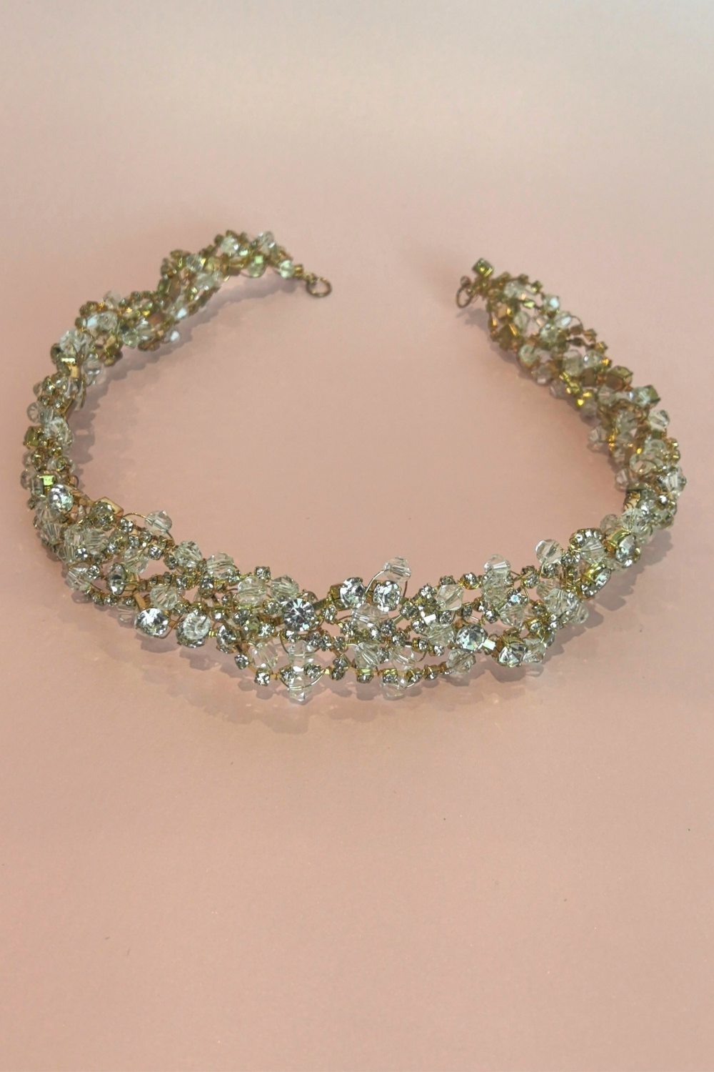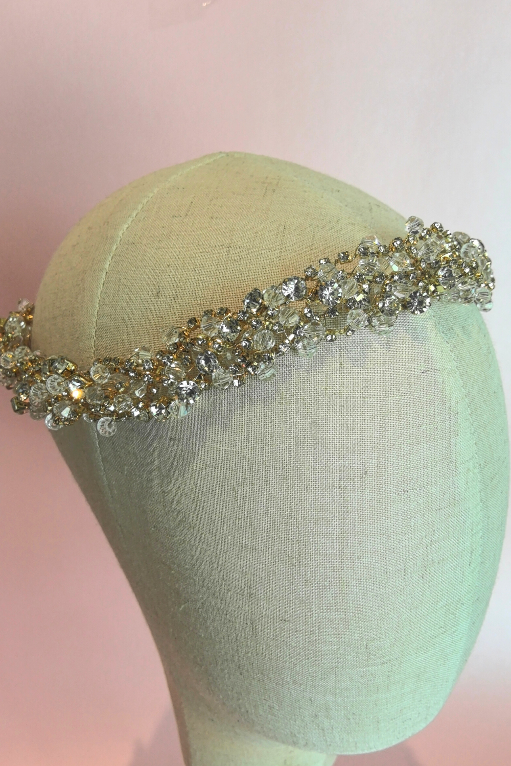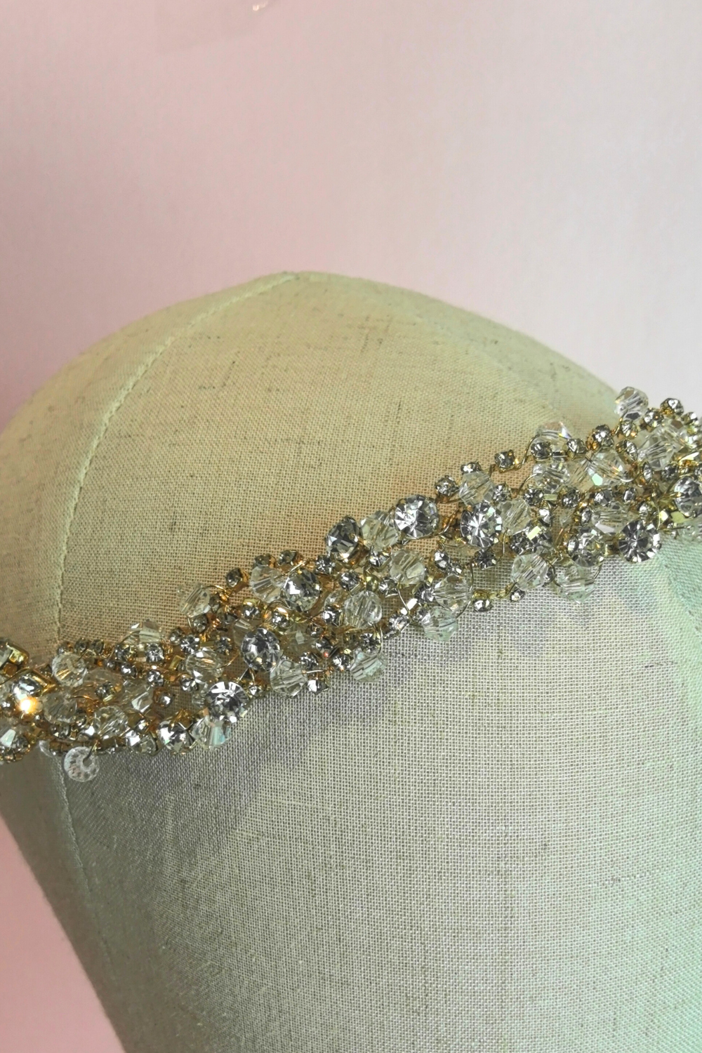 Guía flexible dorada de cristales transparentes e hilo de pedrería con dos ojales de metal en cada extremo