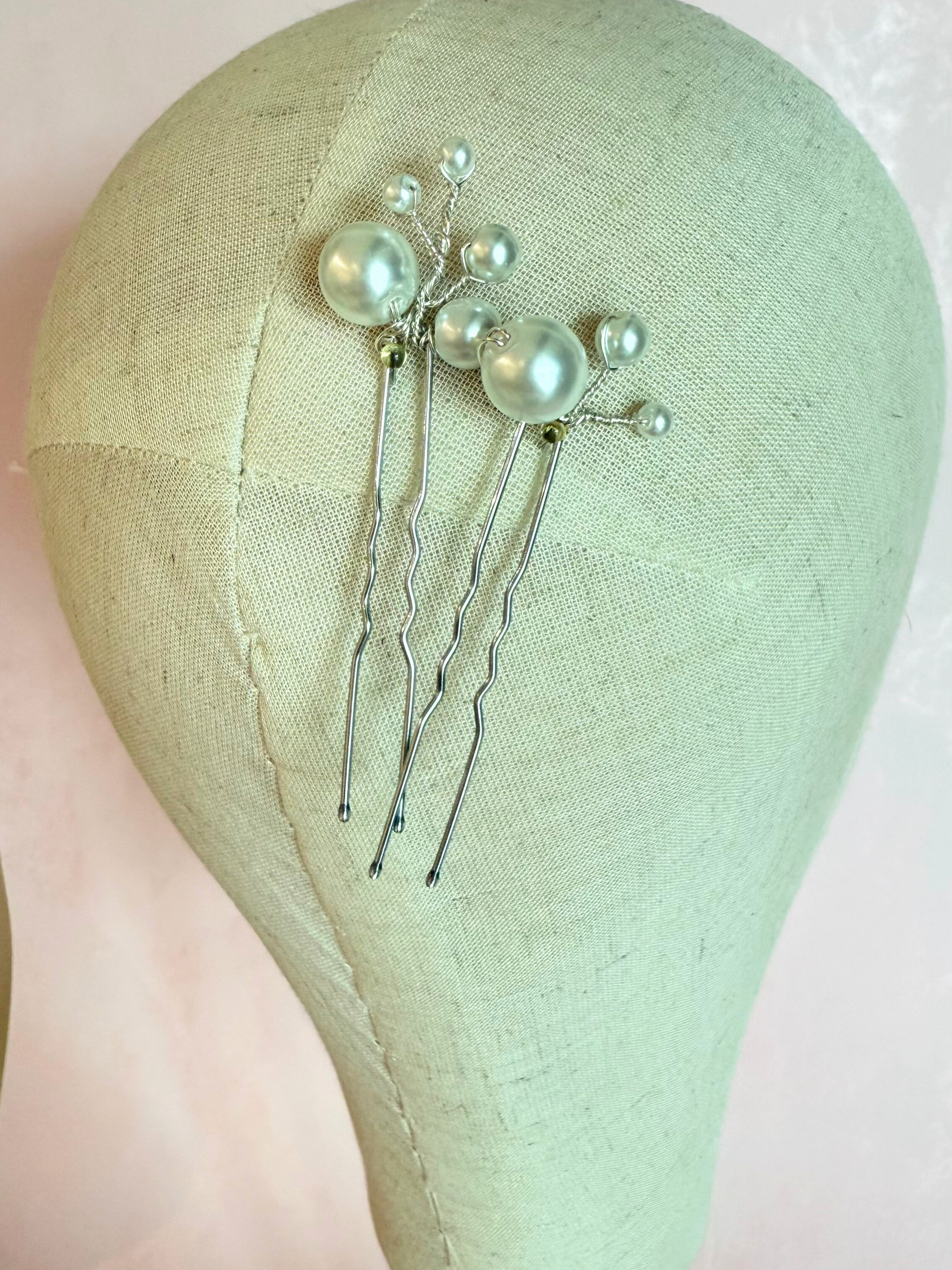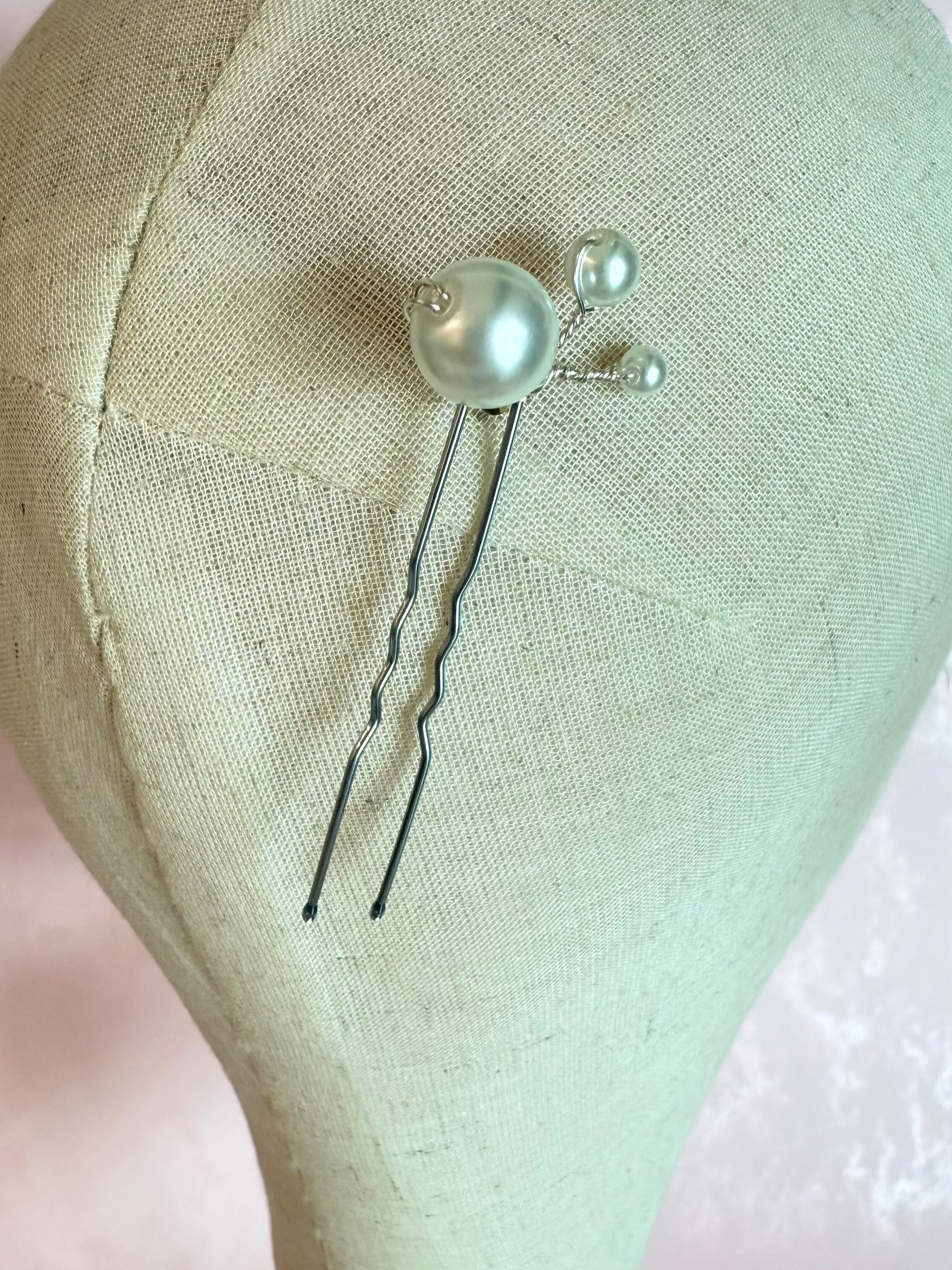 Hair pin elaborado a mano, con diseño de perlas de distintos tamaños