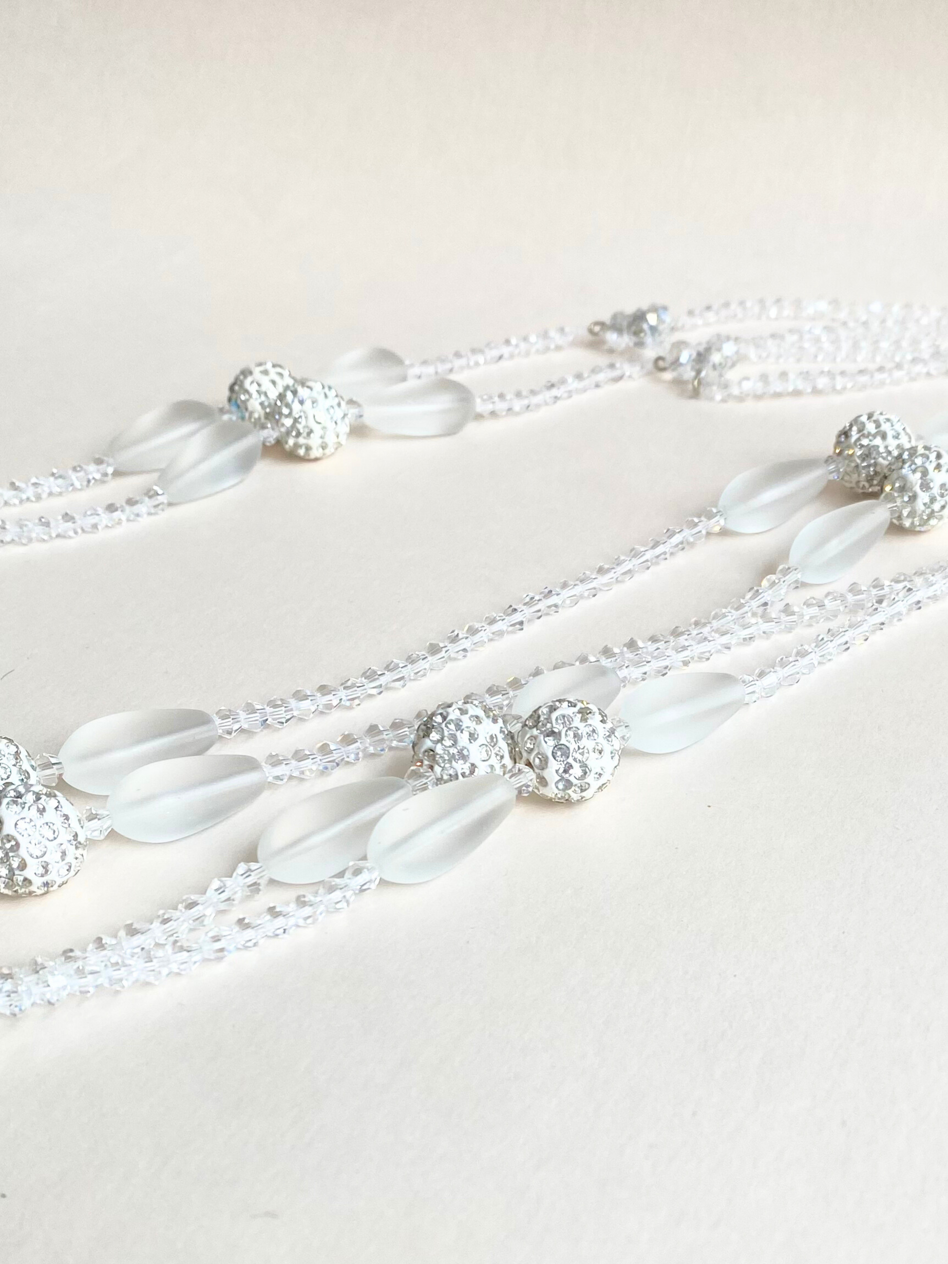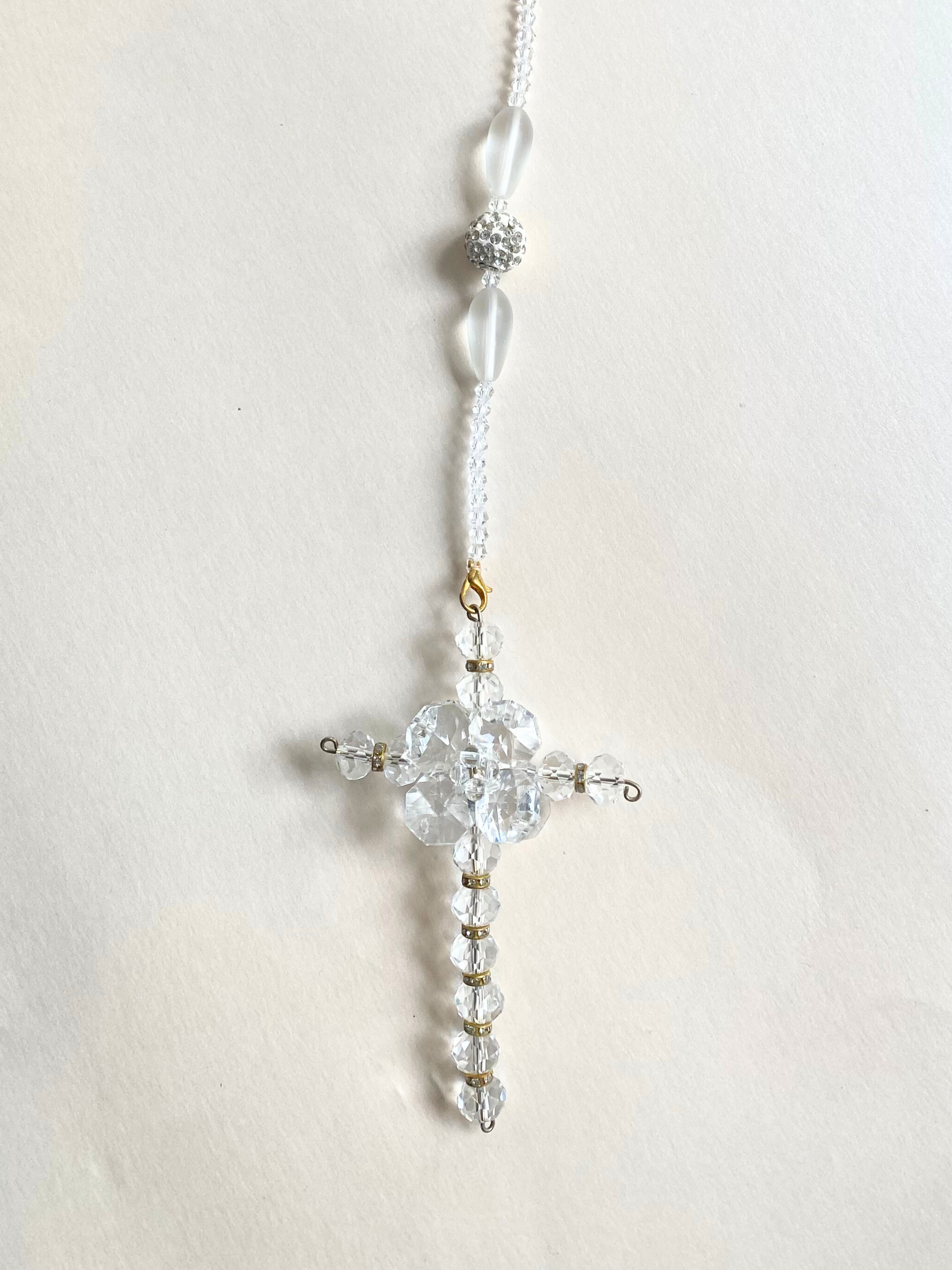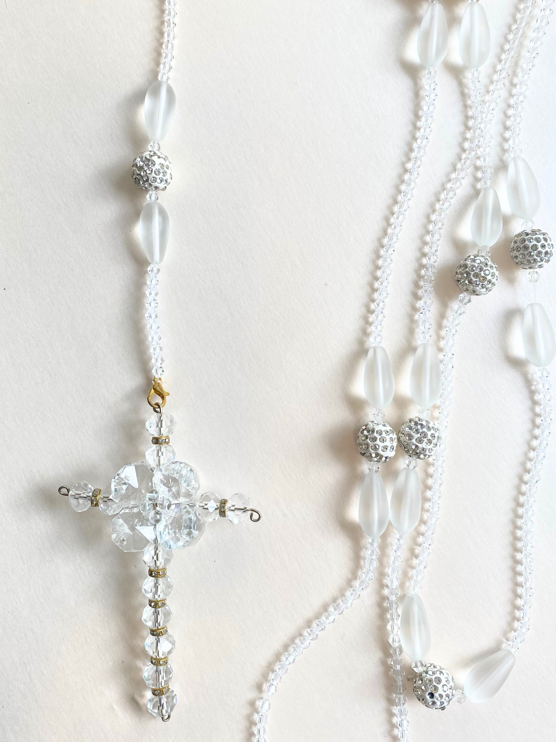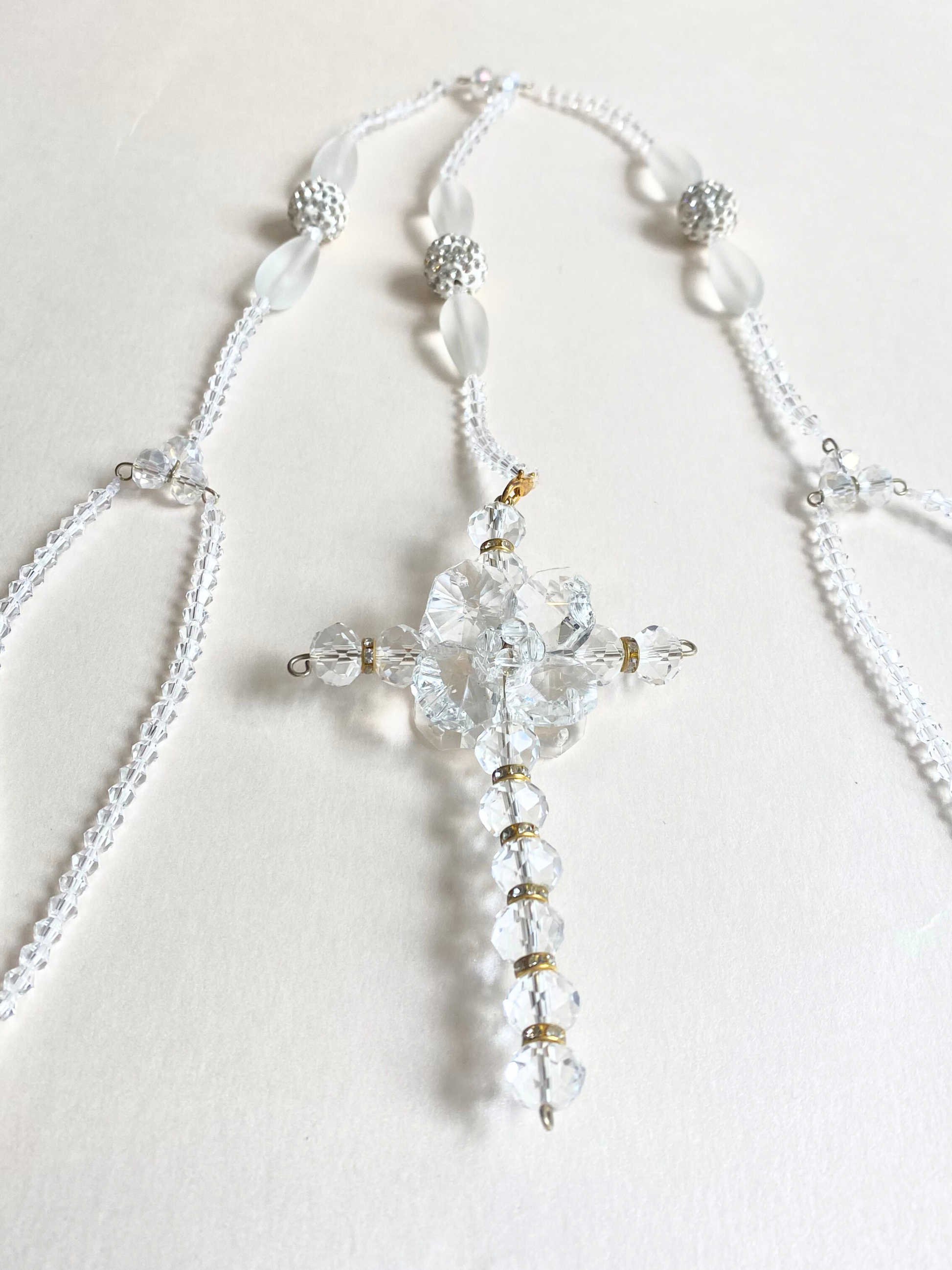 Lazo elaborado con cuentas de pasta con incrustaciones de pedrería mini, cristal cortado y gemas de plástico.