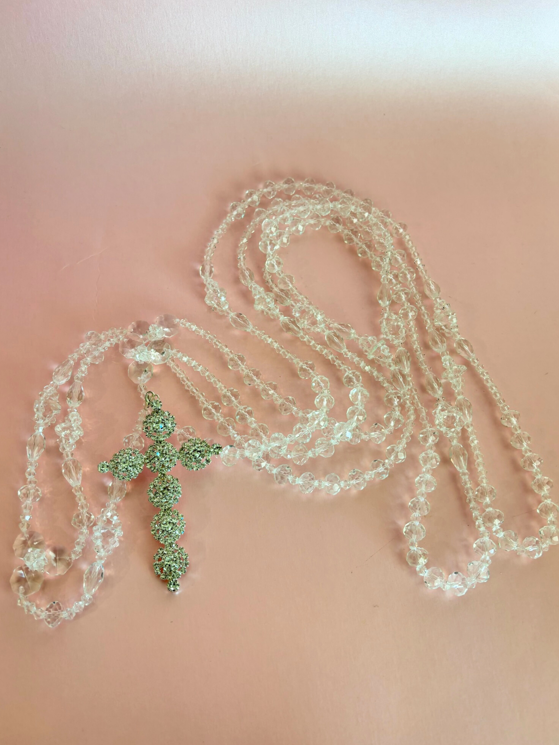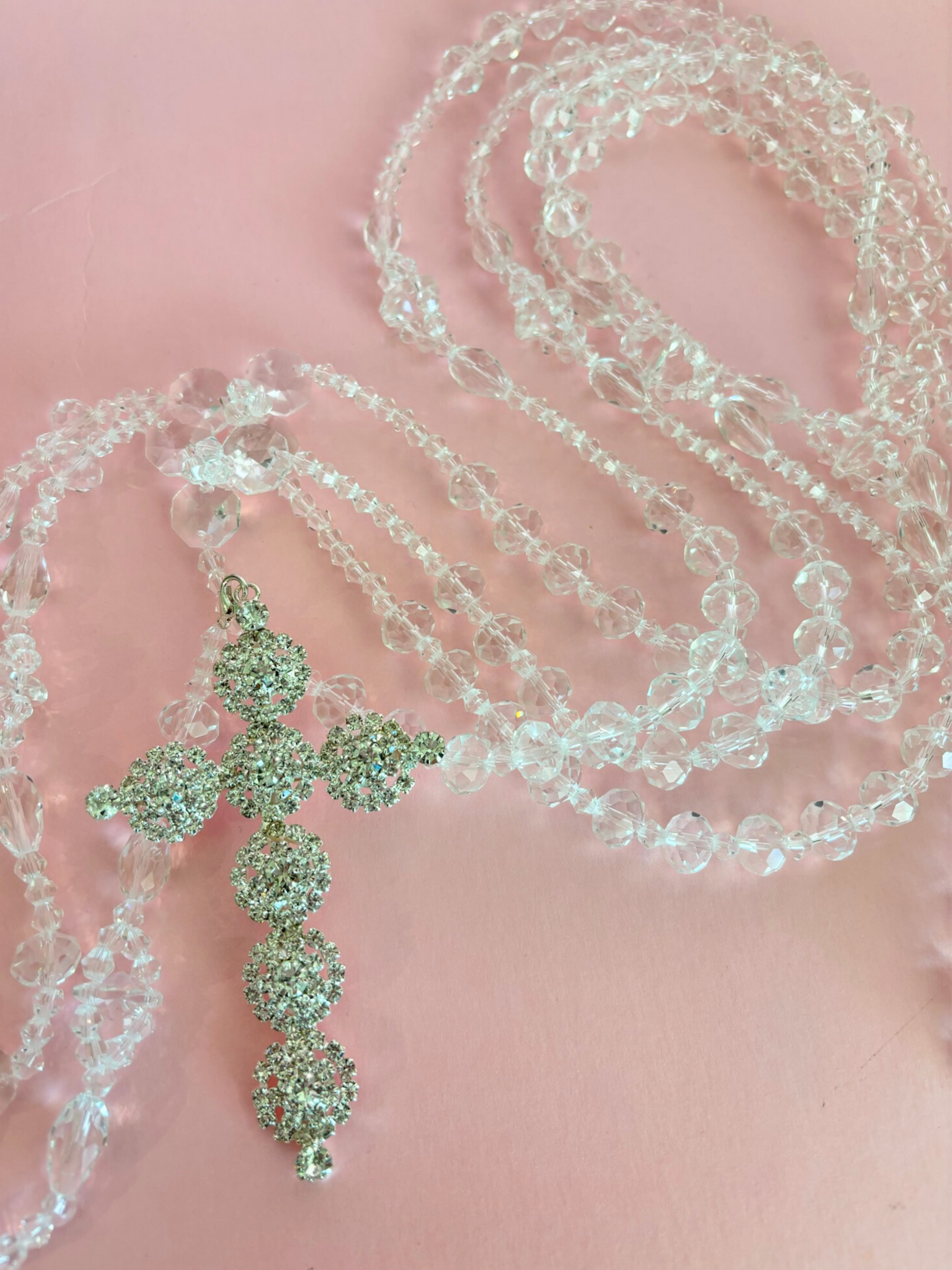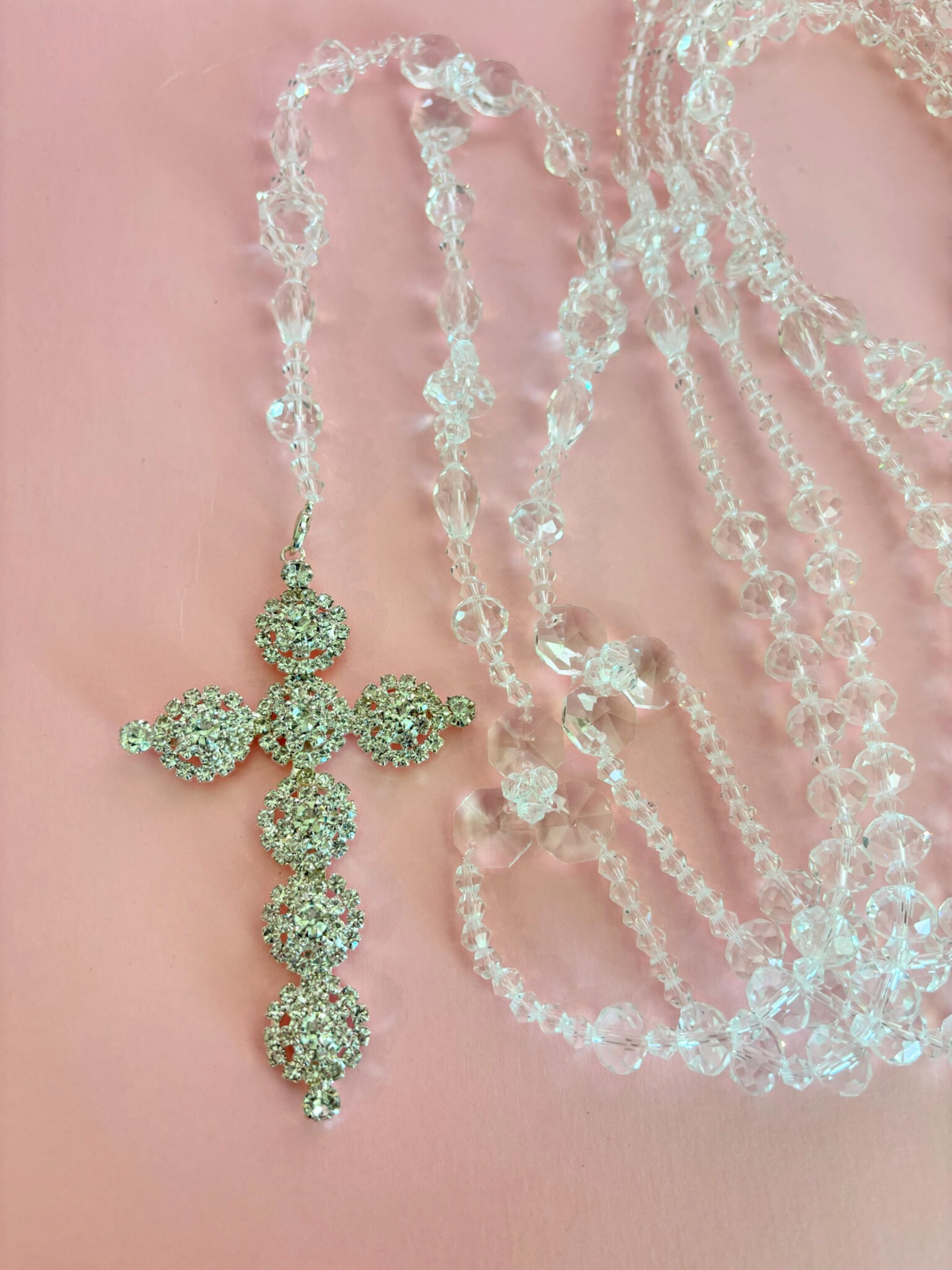 Lazo matrimonial con cristales de distintos tamaños y cruz de pedrería en tono plateado