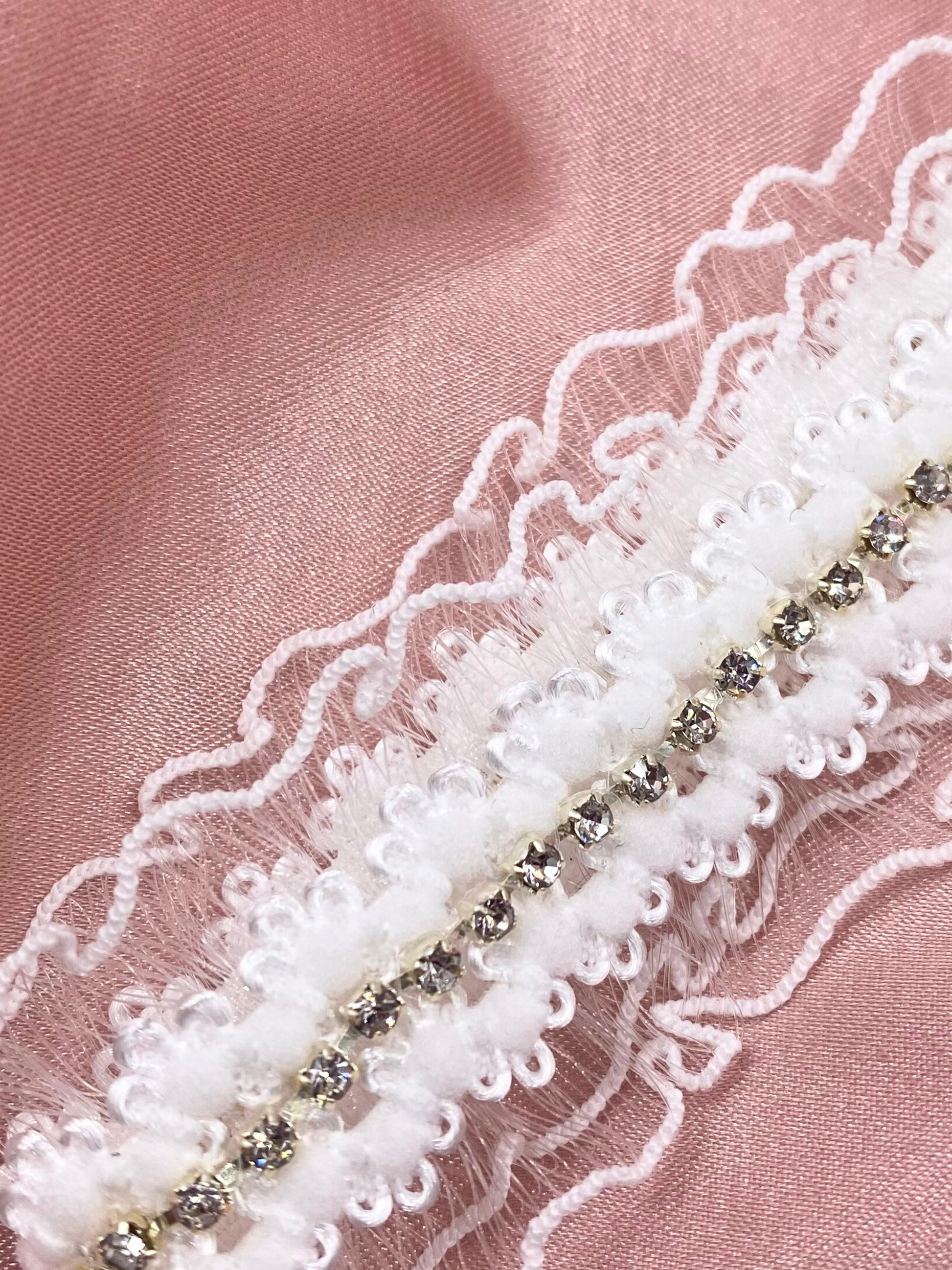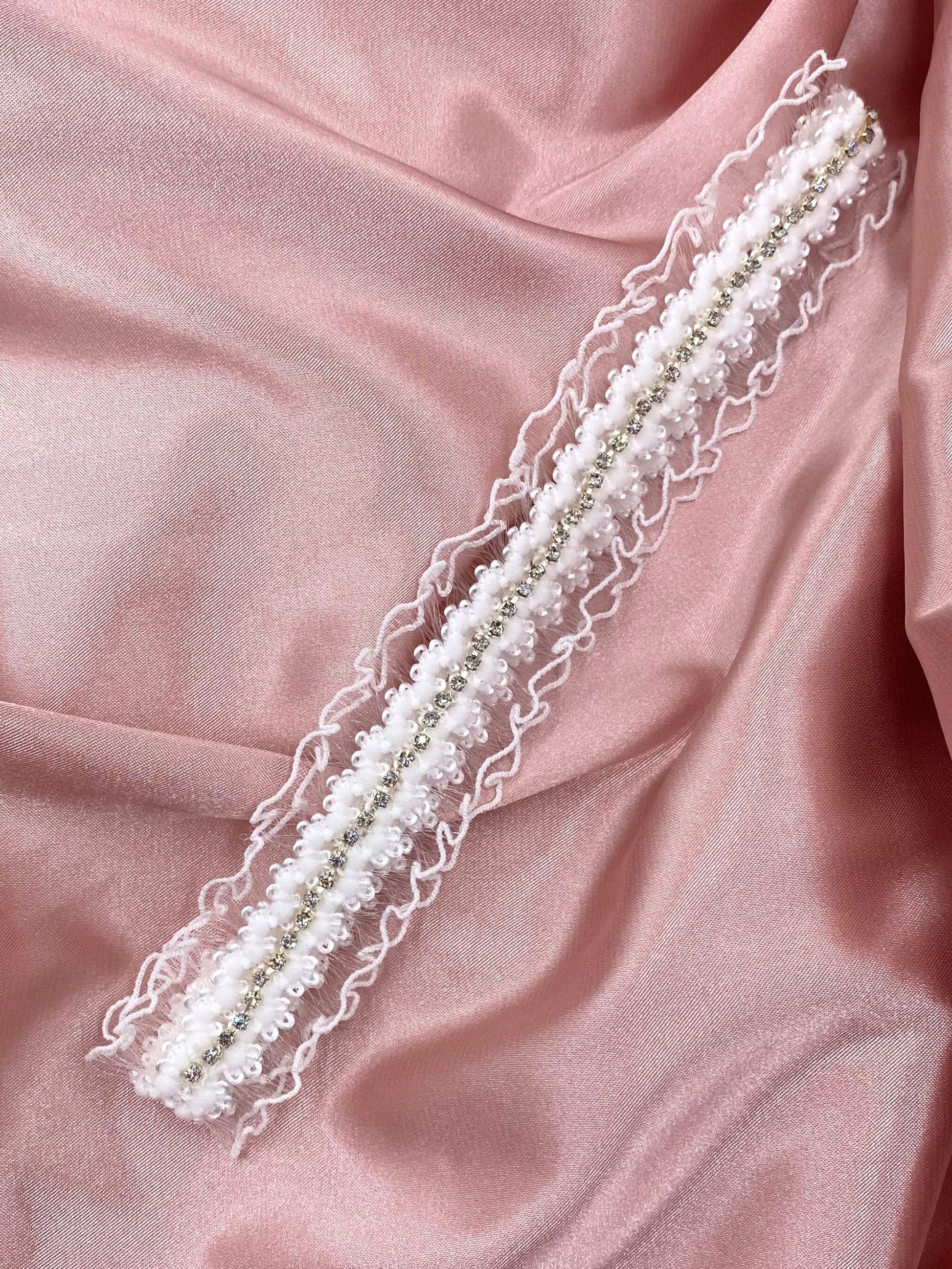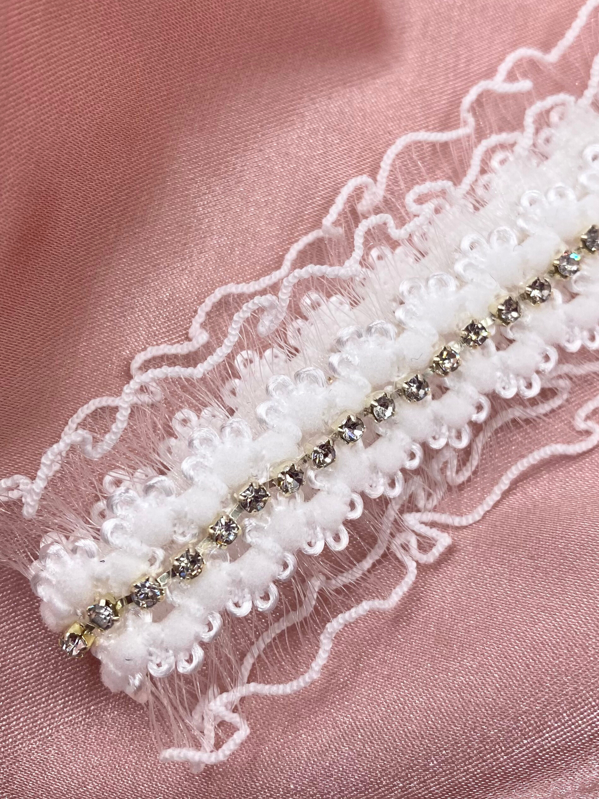 Confeccionado con encaje delicado y detalles de cristales de fantasía bordados, este liguero es el complemento perfecto para añadir un toque de glamour a tu día especial.