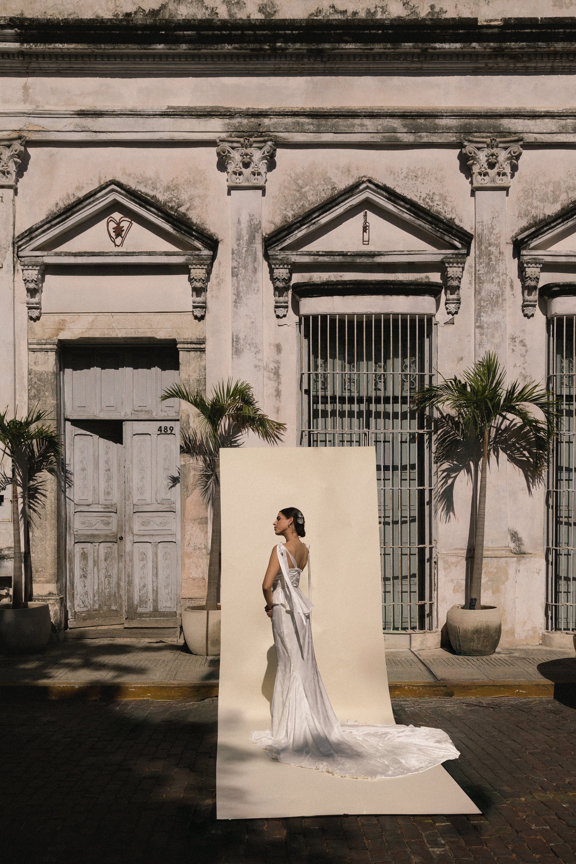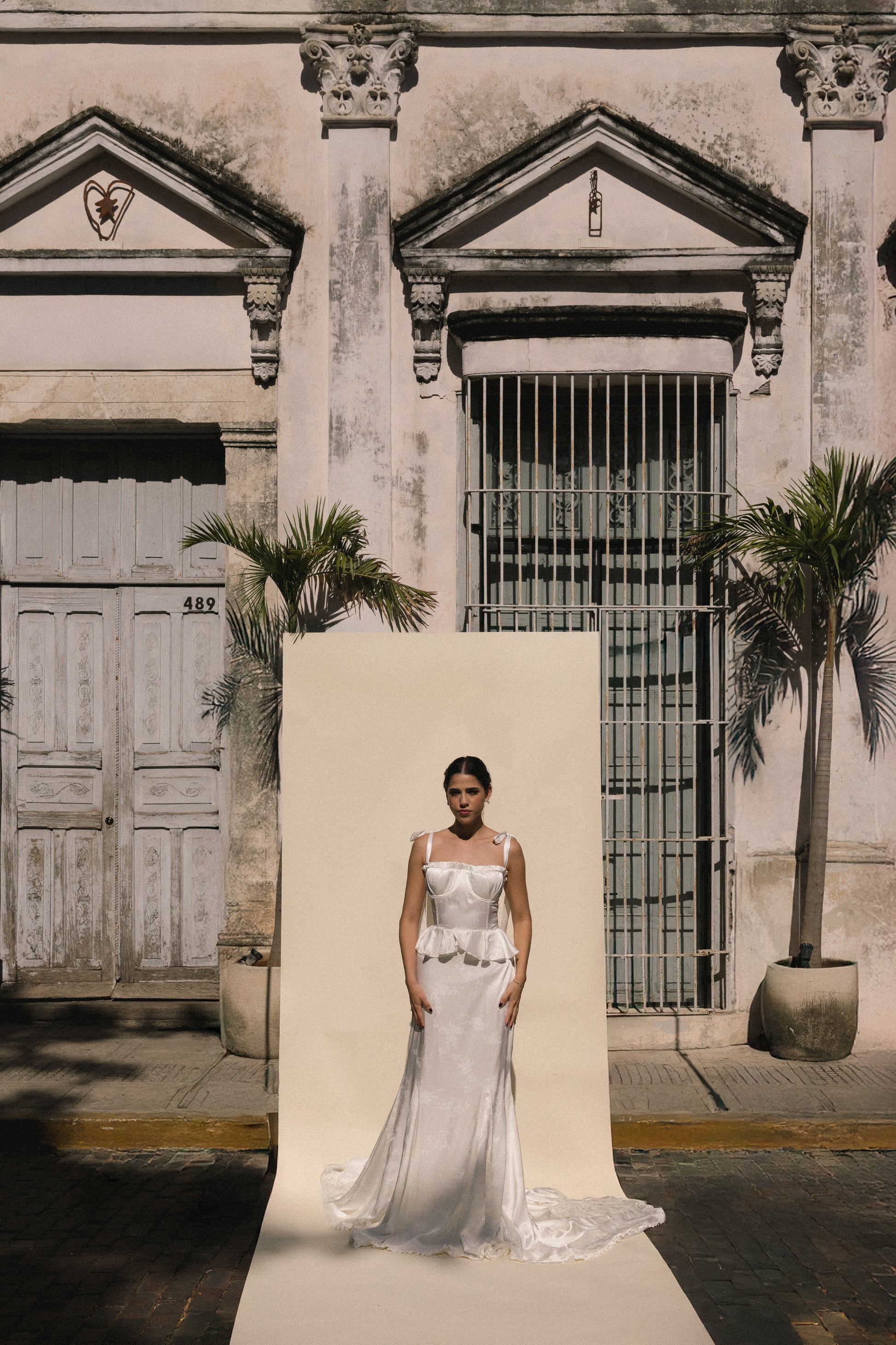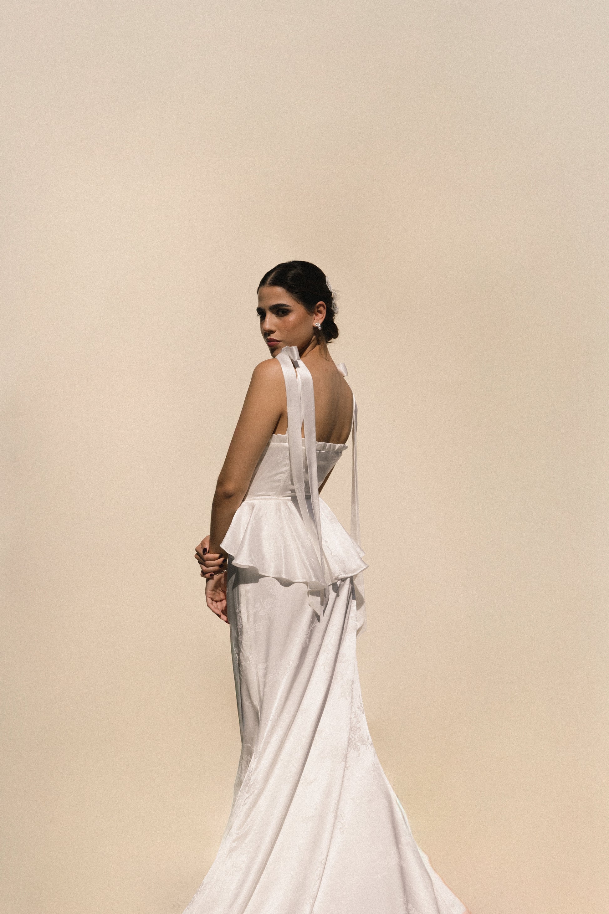 Vestido de novia de seda confeccionado con corset y tirantes ajustables
