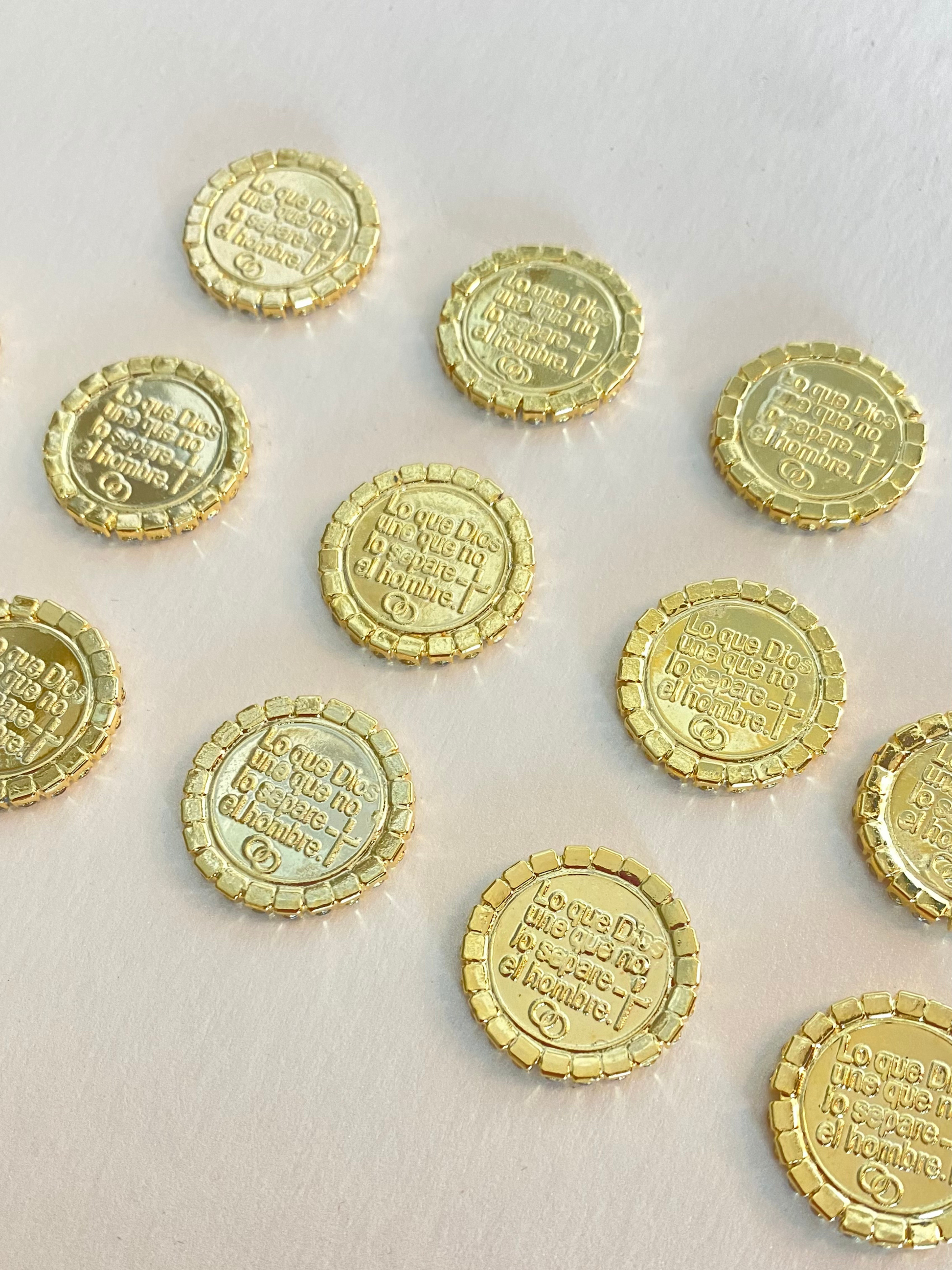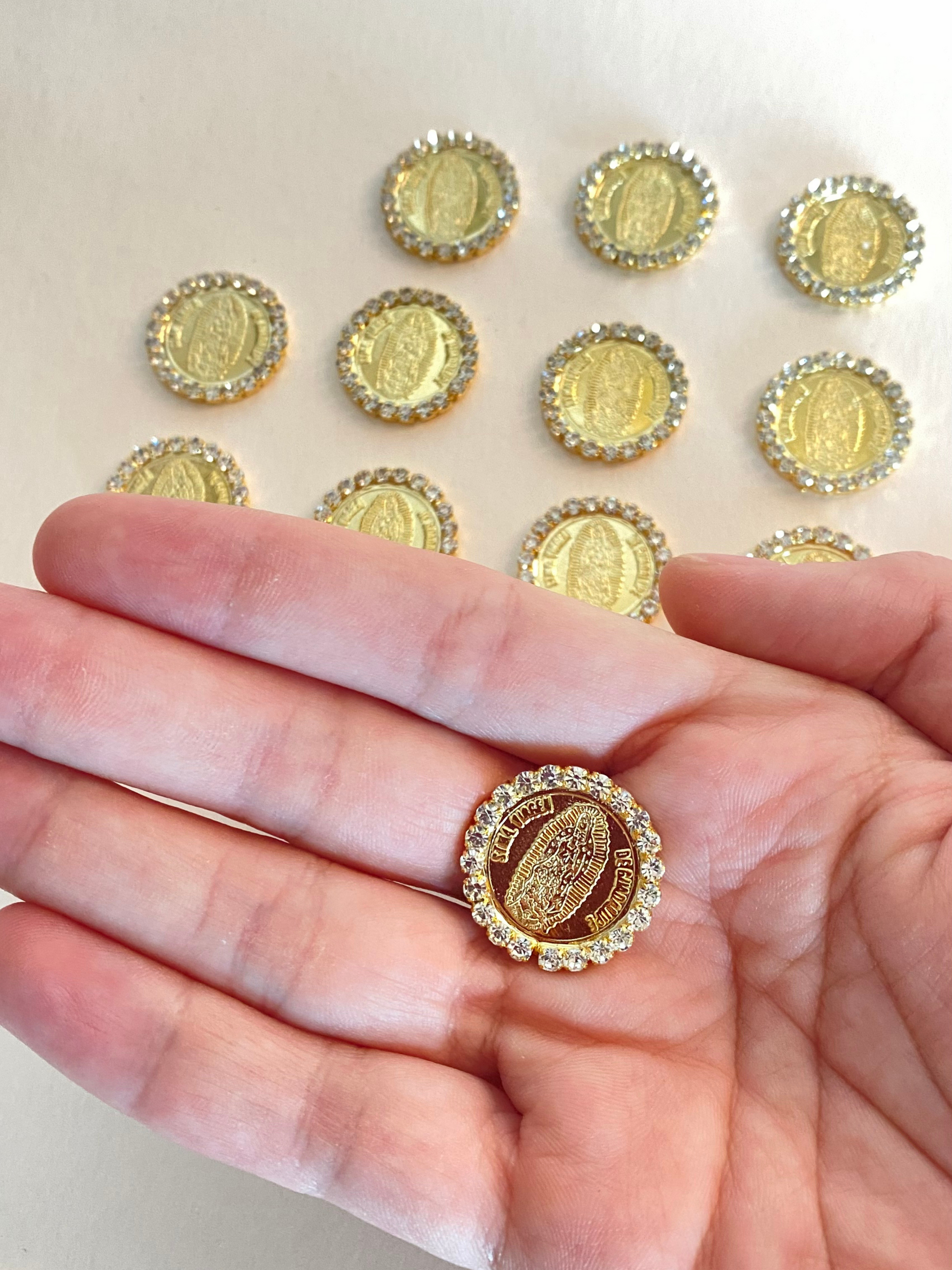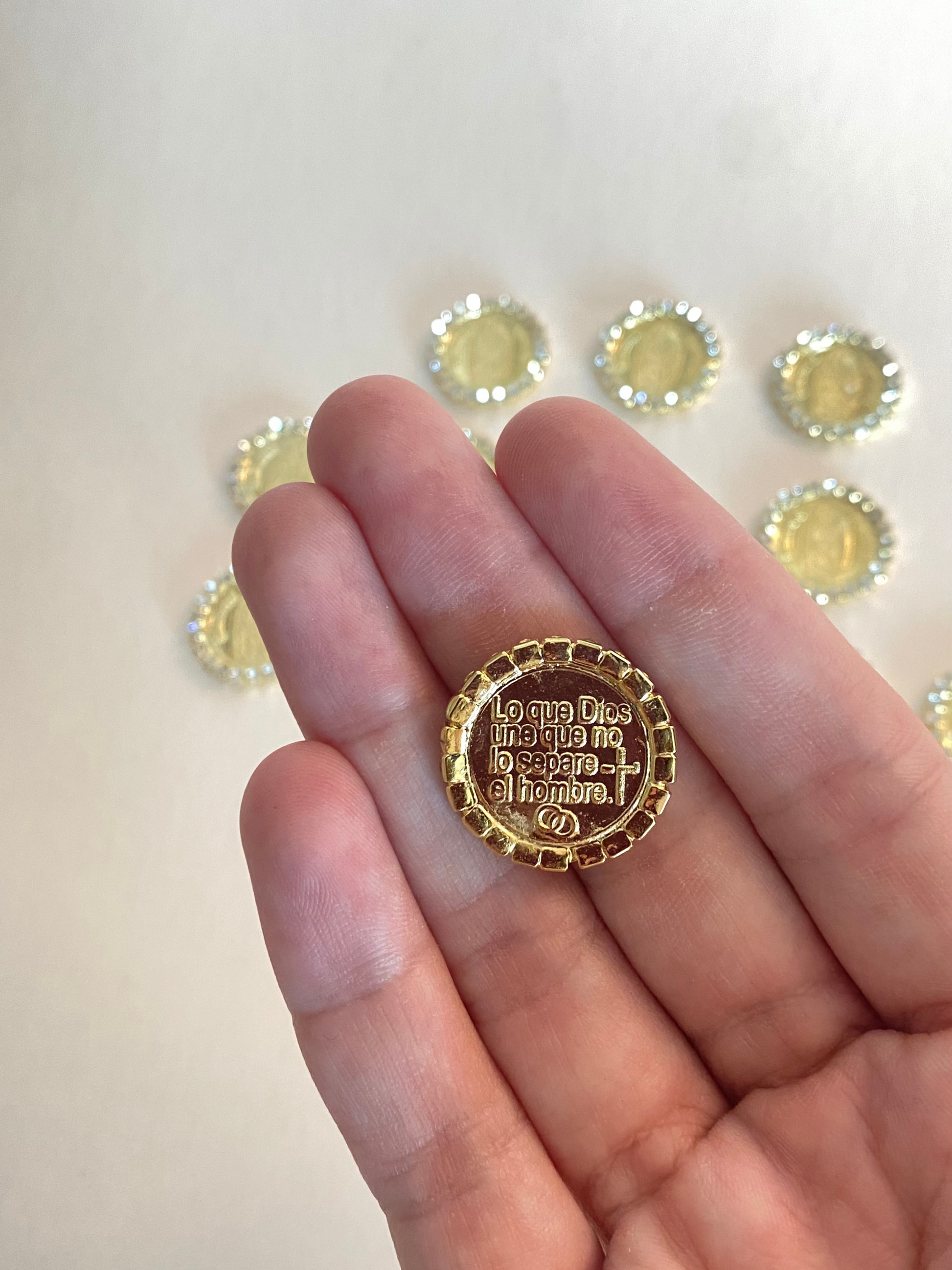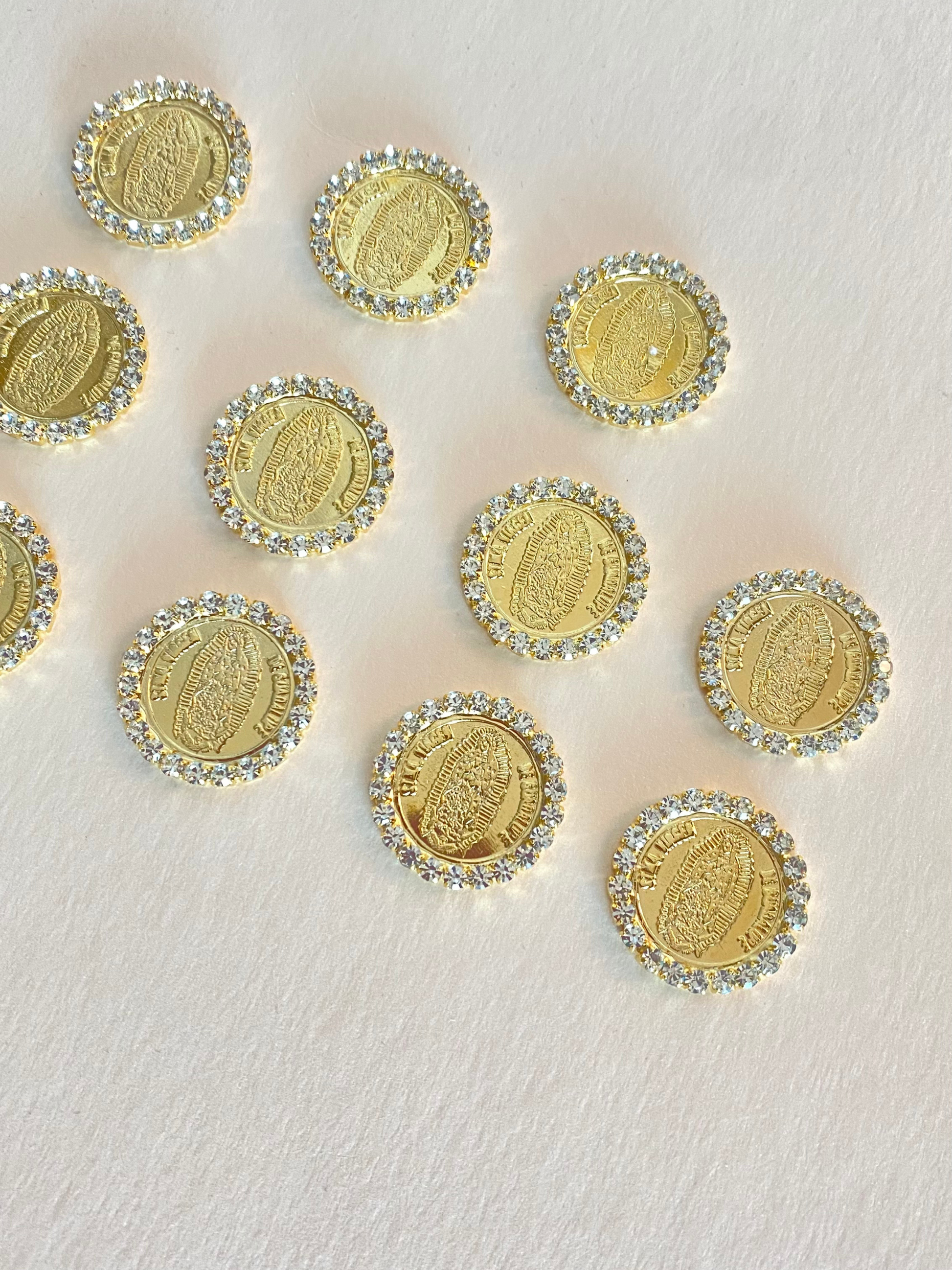 Hermoso modelo de monedas con incrustaciones de pedrería en la circunferencia