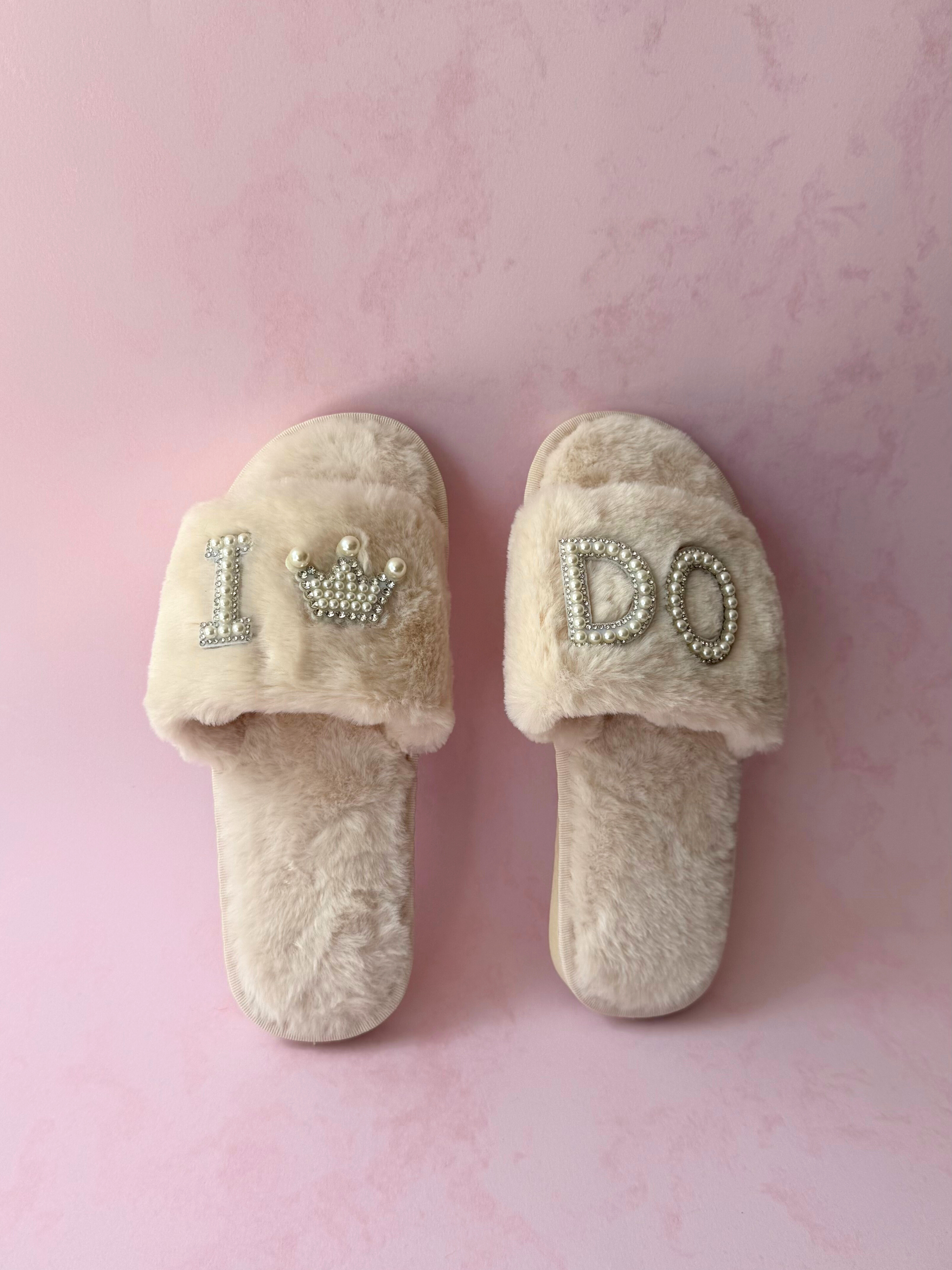 Disfruta de comodidad y estilo con estas encantadoras pantuflas blancas de novia con el bordado 'I Do'. Perfectas para relajarte antes y después de la boda. Con un toque elegante y divertido, ¡mantén tus pies cómodos mientras celebras tu día especial con estas encantadoras pantuflas!