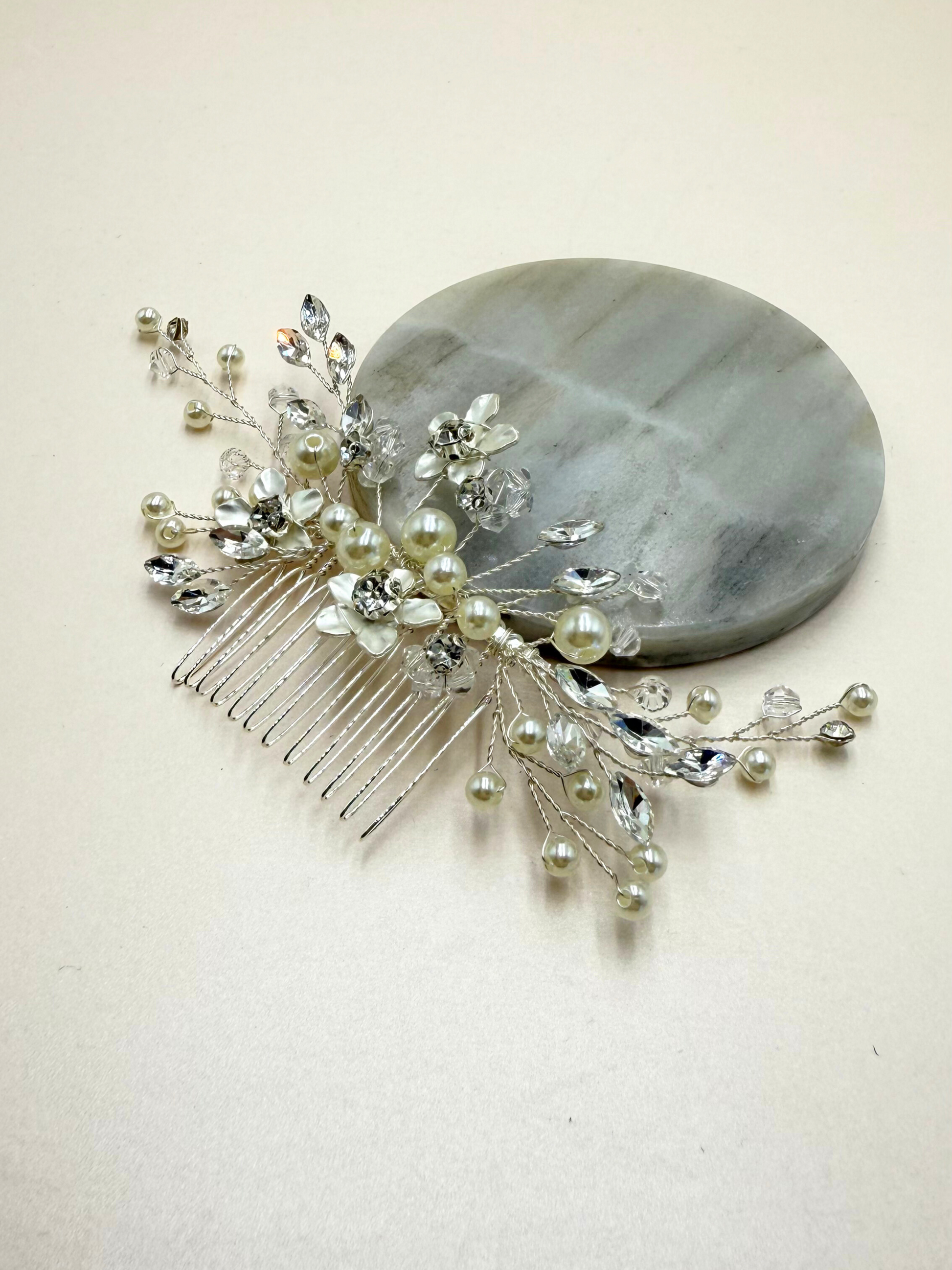 Peineta cristales y perlas