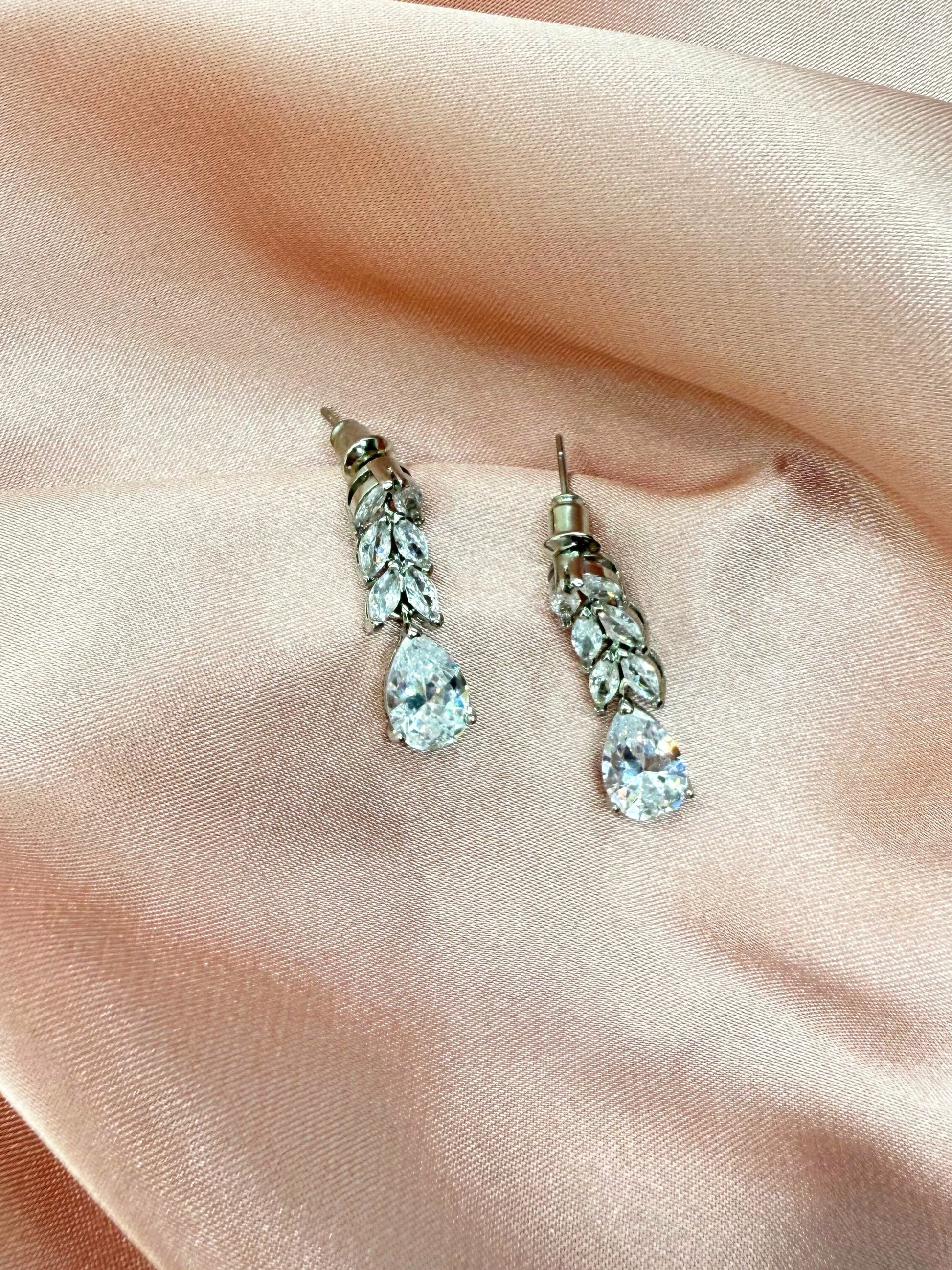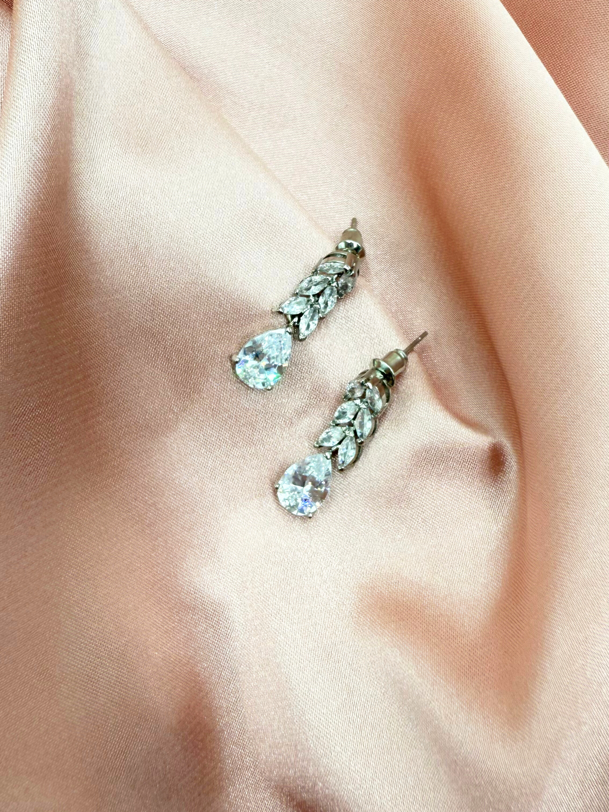 Aretes de bisutería en tono plateado en forma de hojas y gota