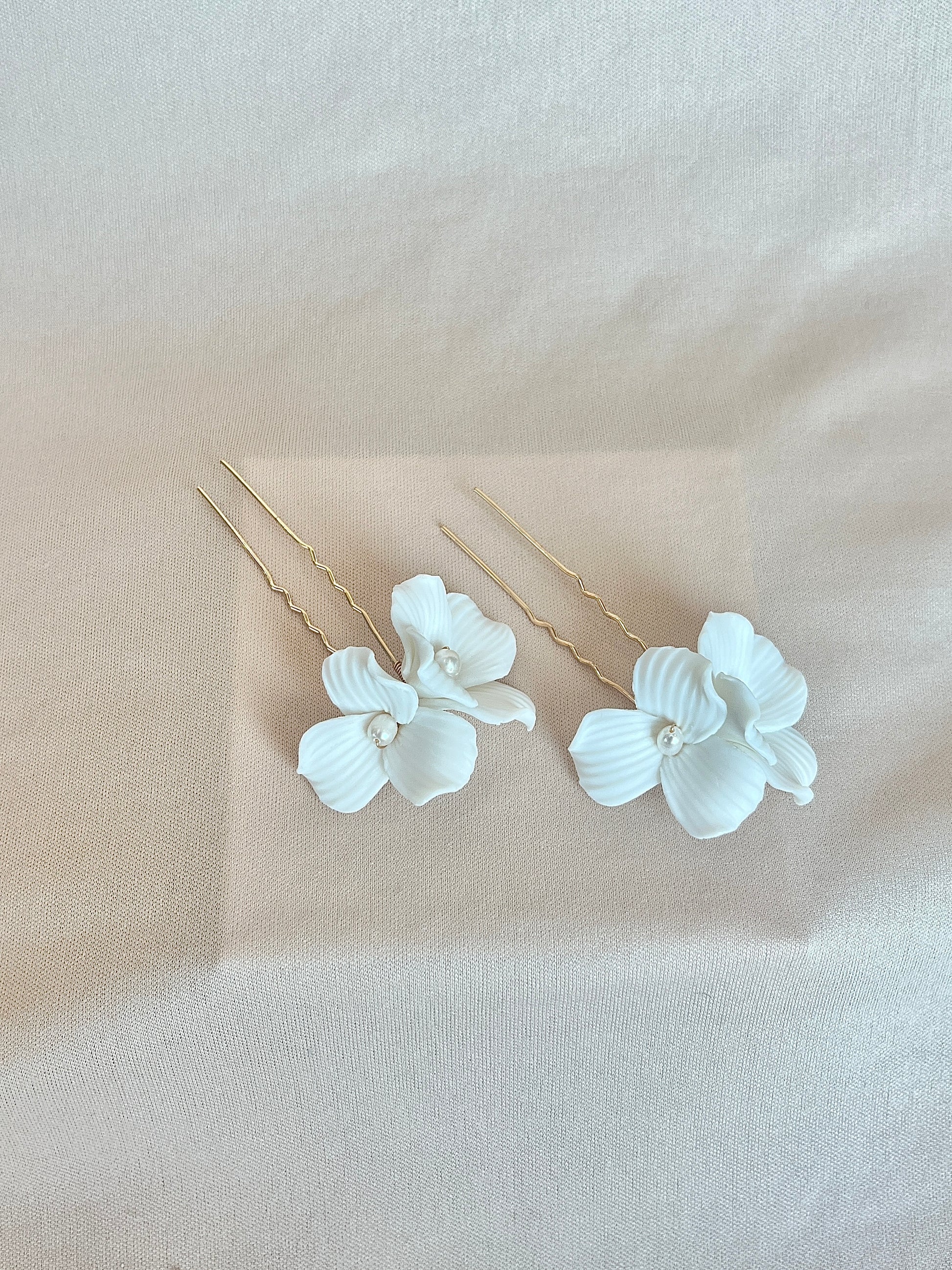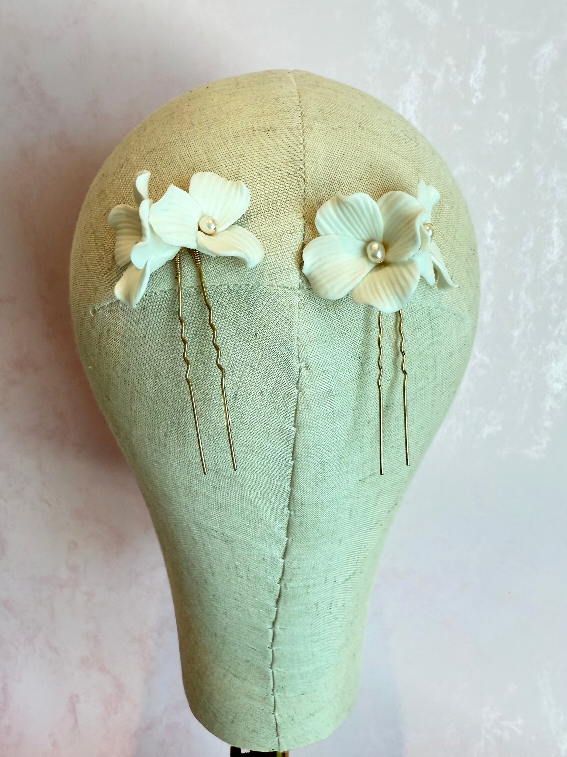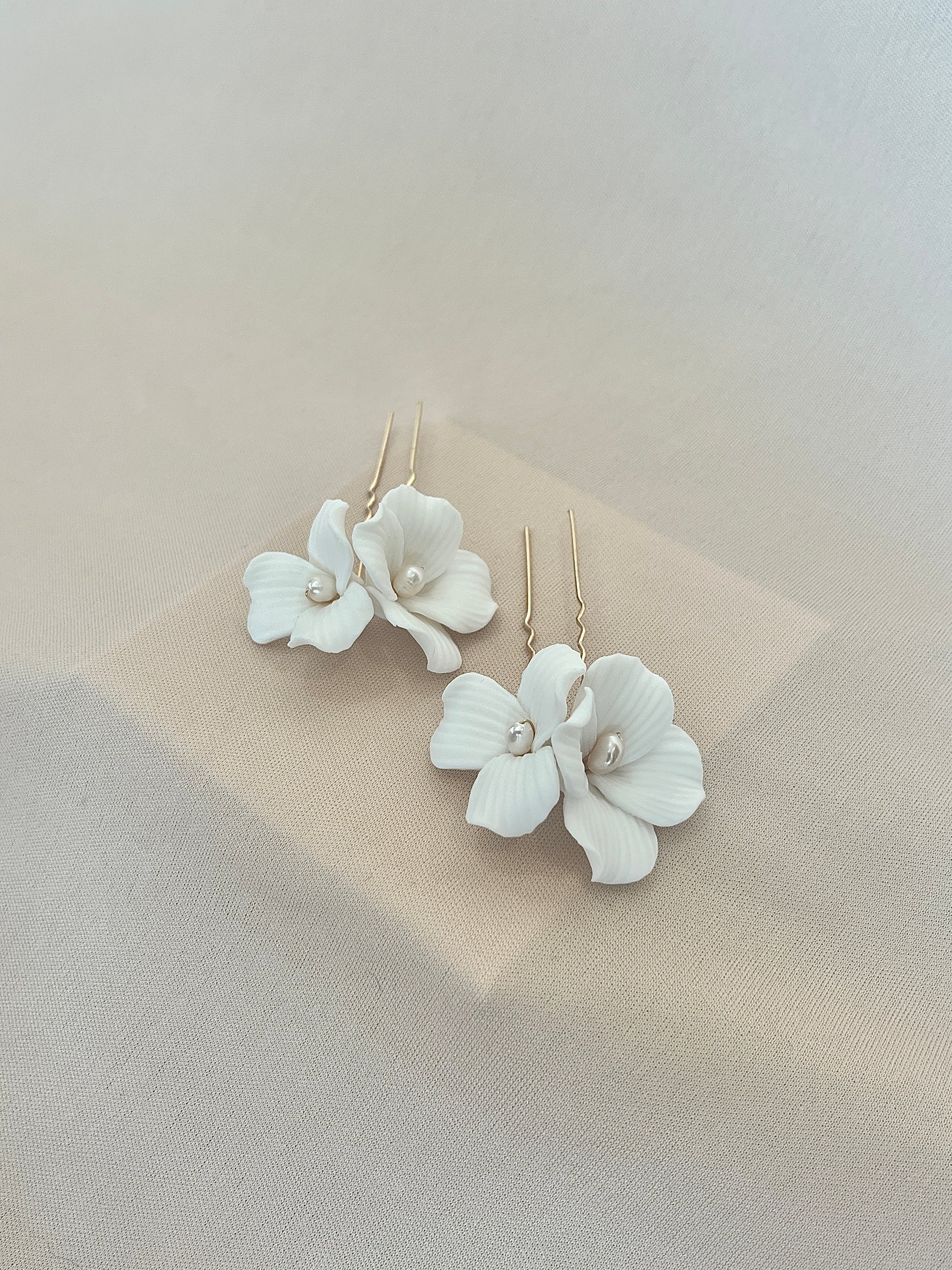 Par de Pines de Porcelana con pequeñas perlas
