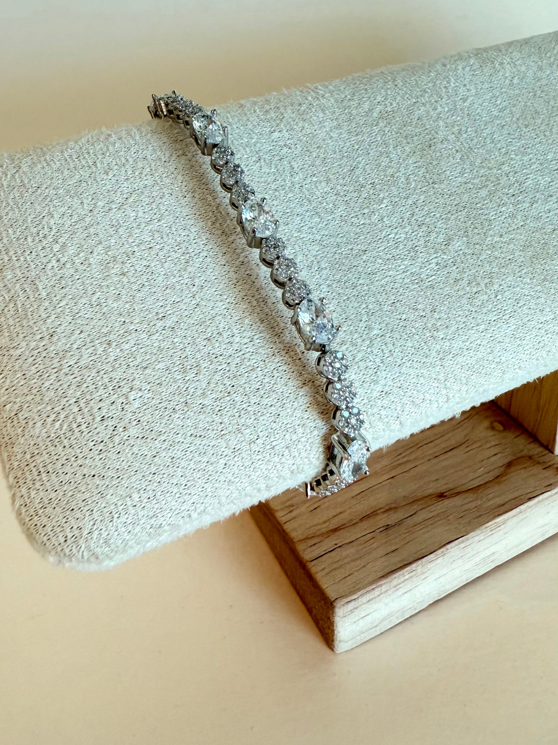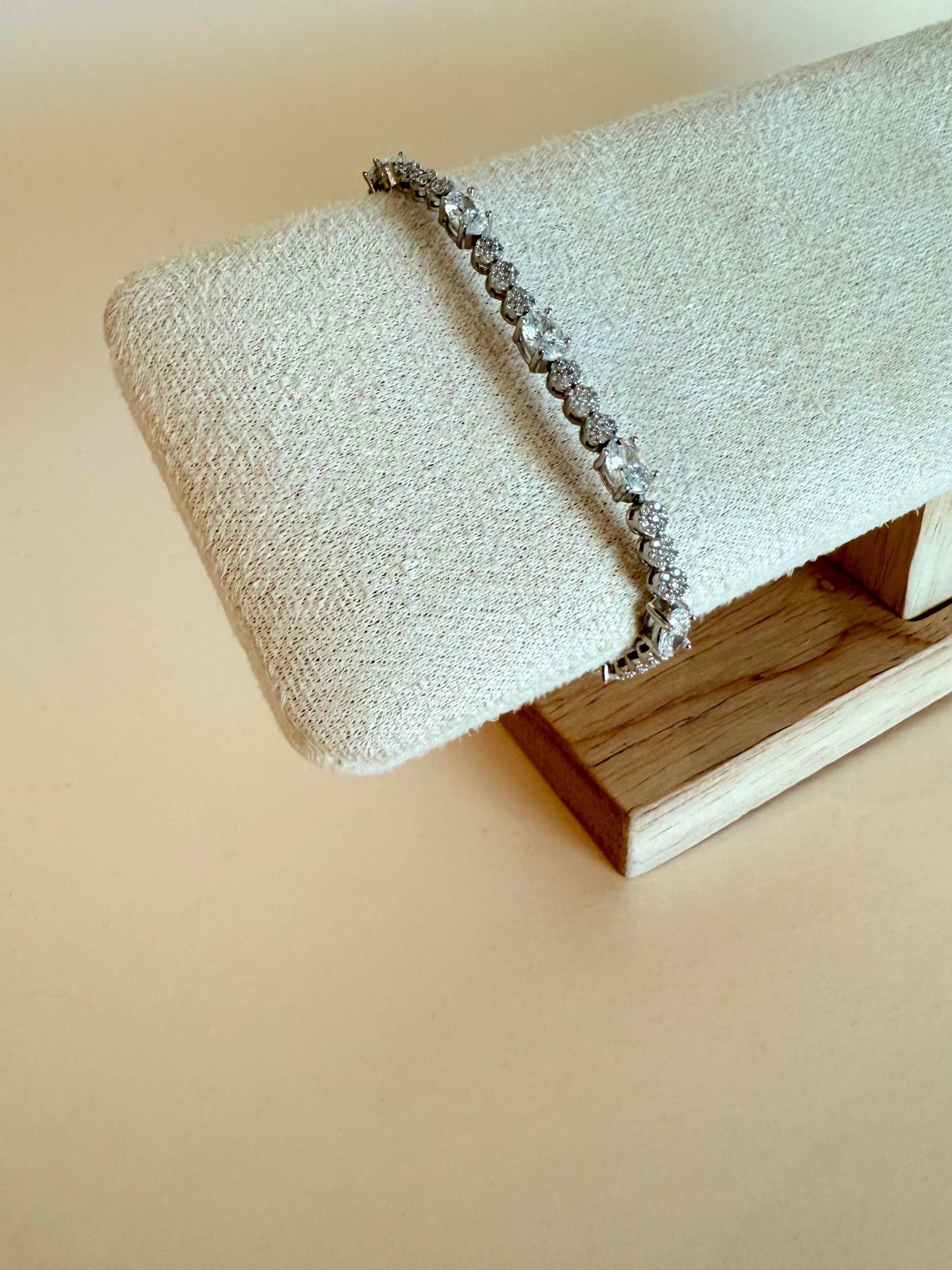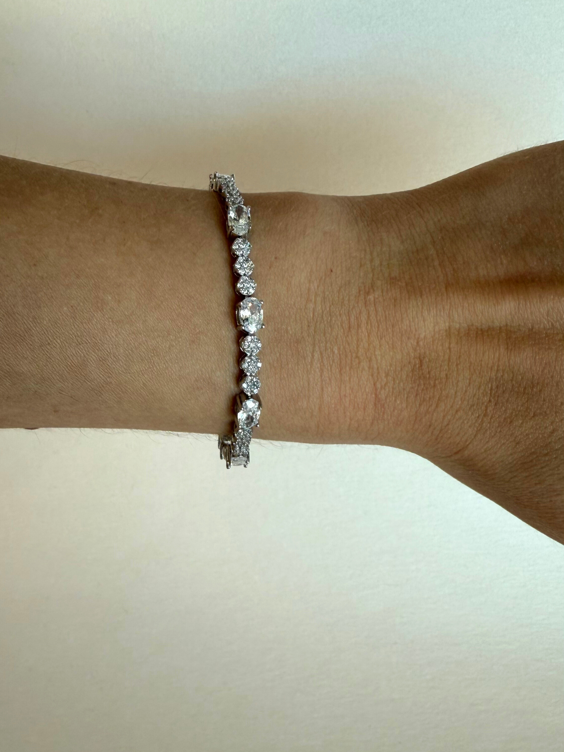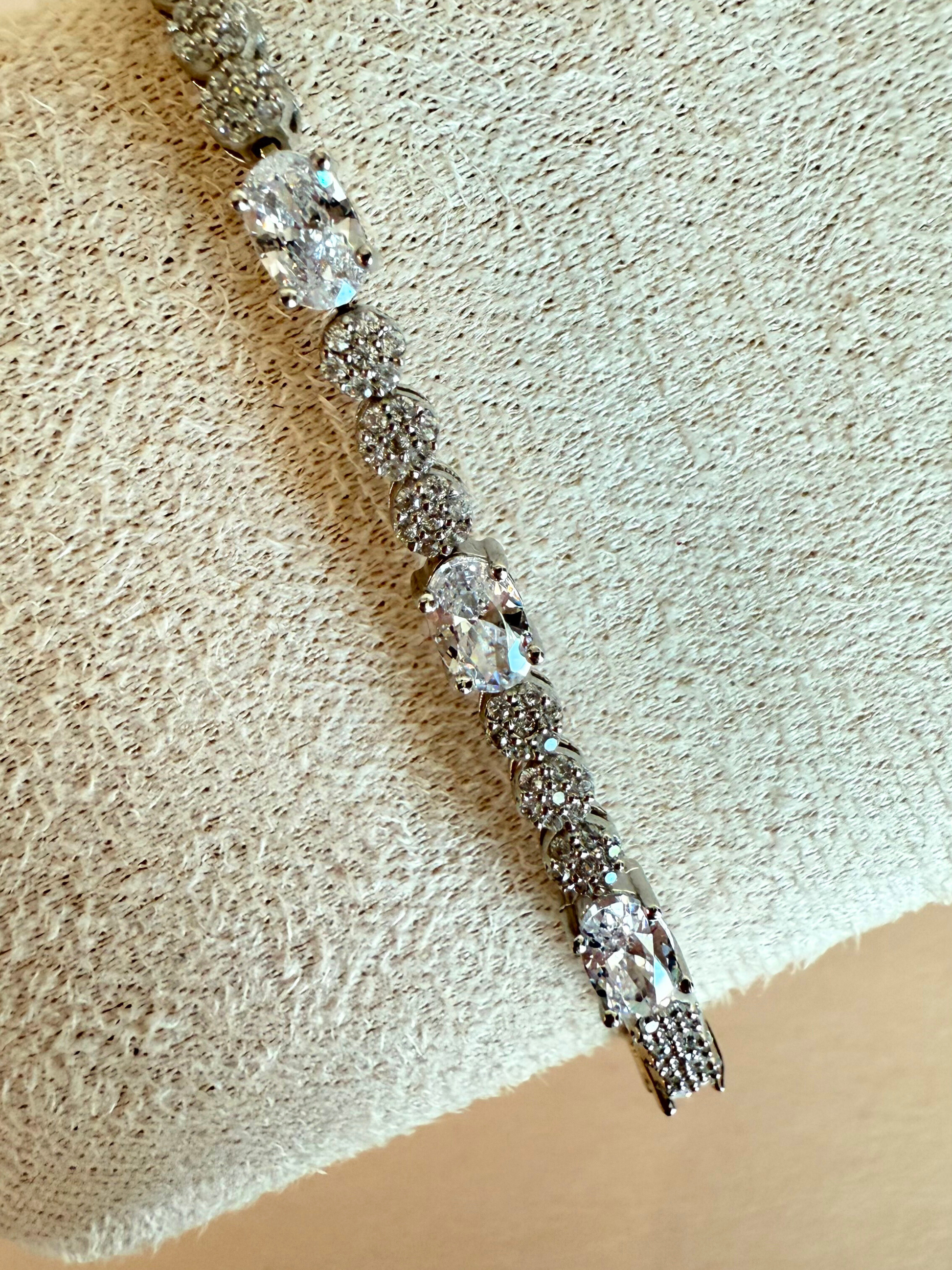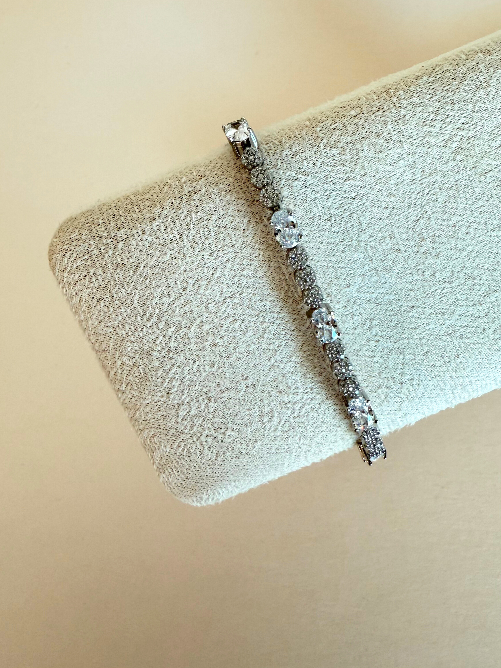 Pulsera de plata .925 con broche en tono plateado con circonias ovaladas y circulos formados por circonias mini