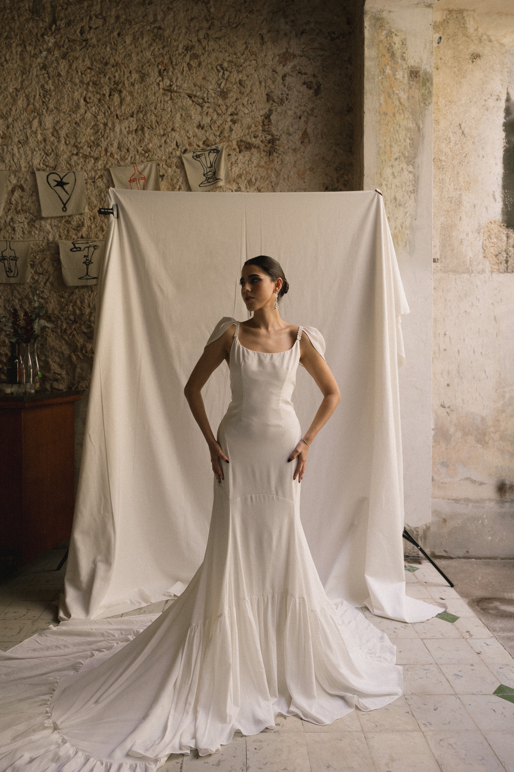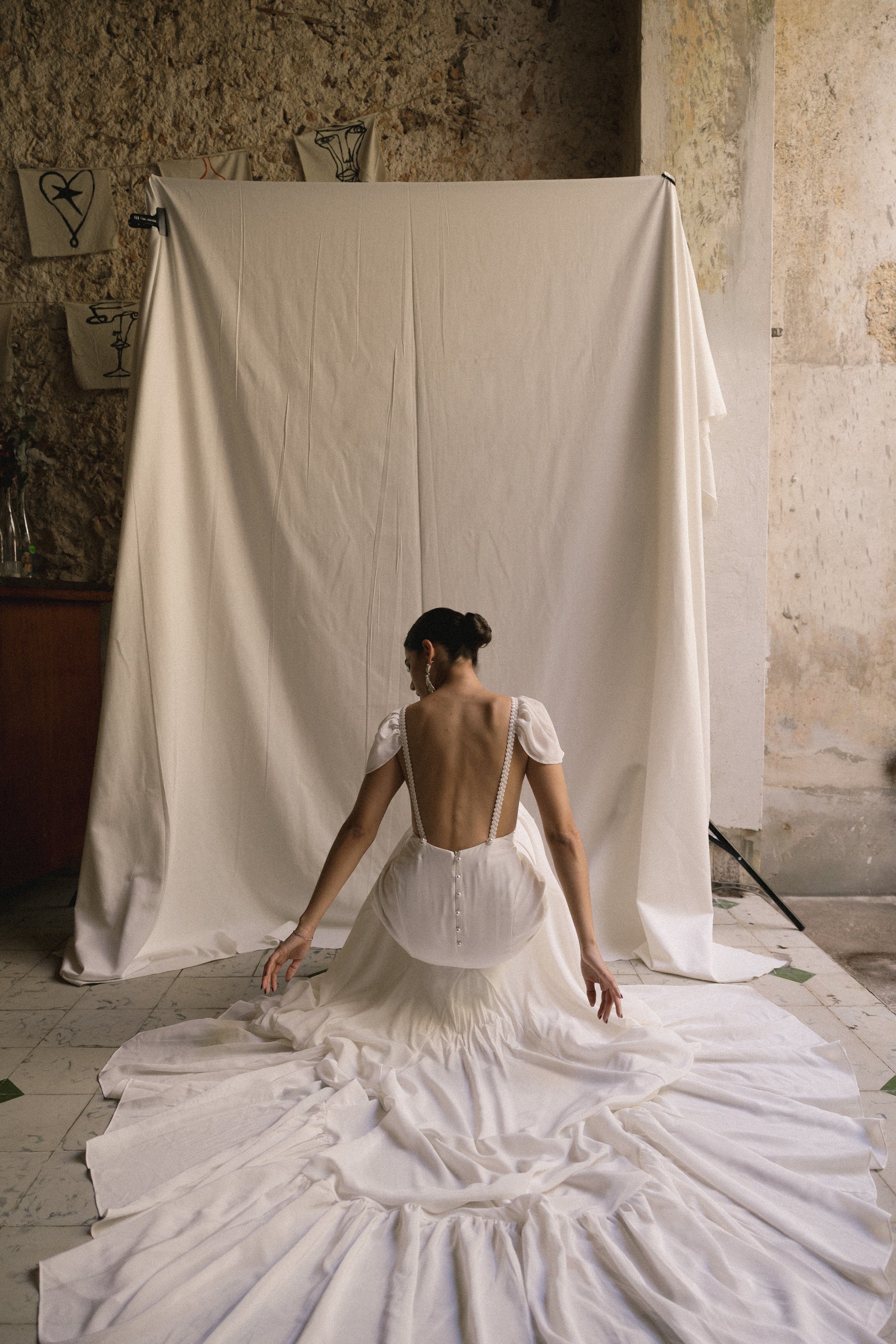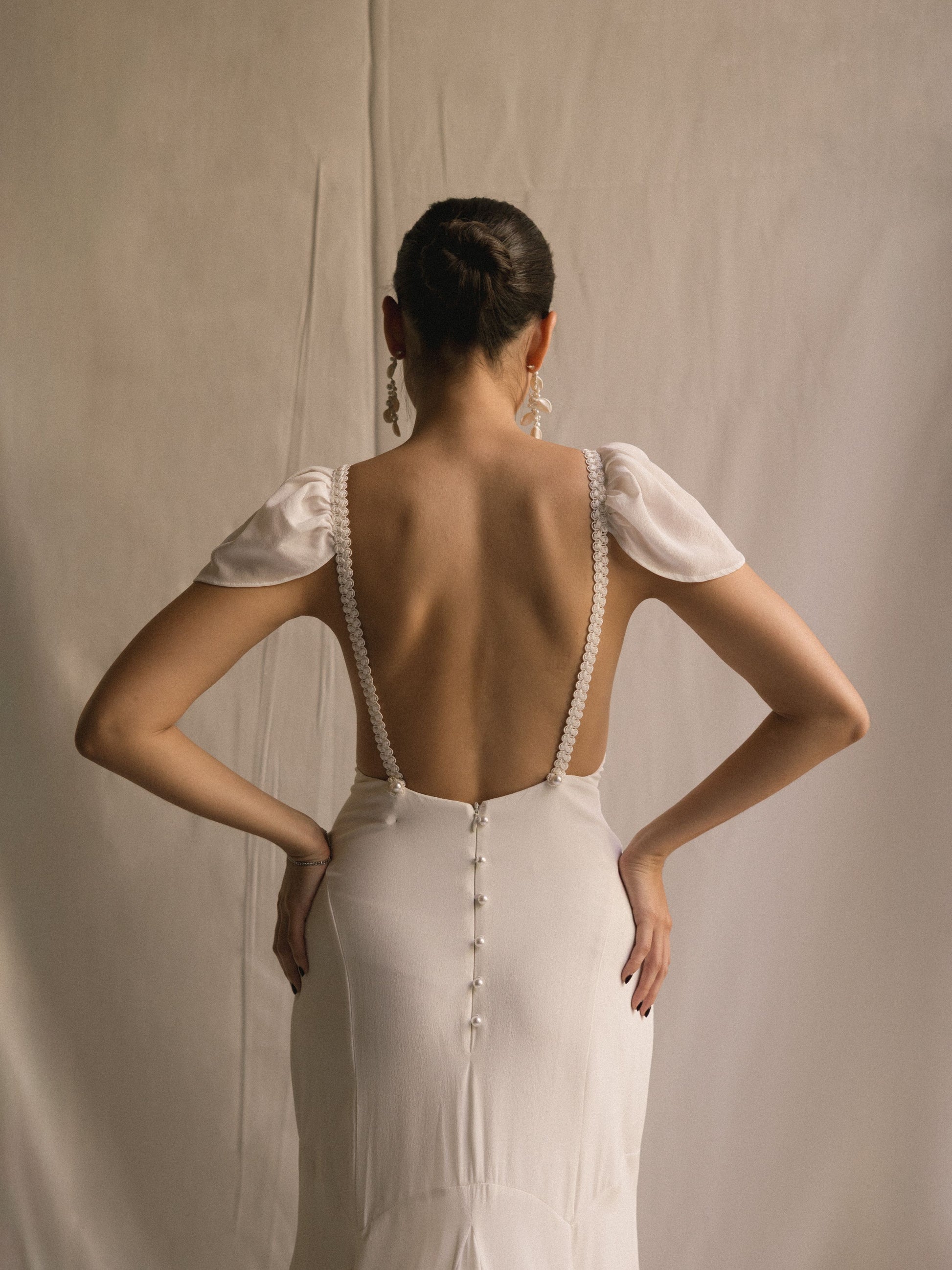 Vestido de novia de seda con alas de tul desmontables incluidas
