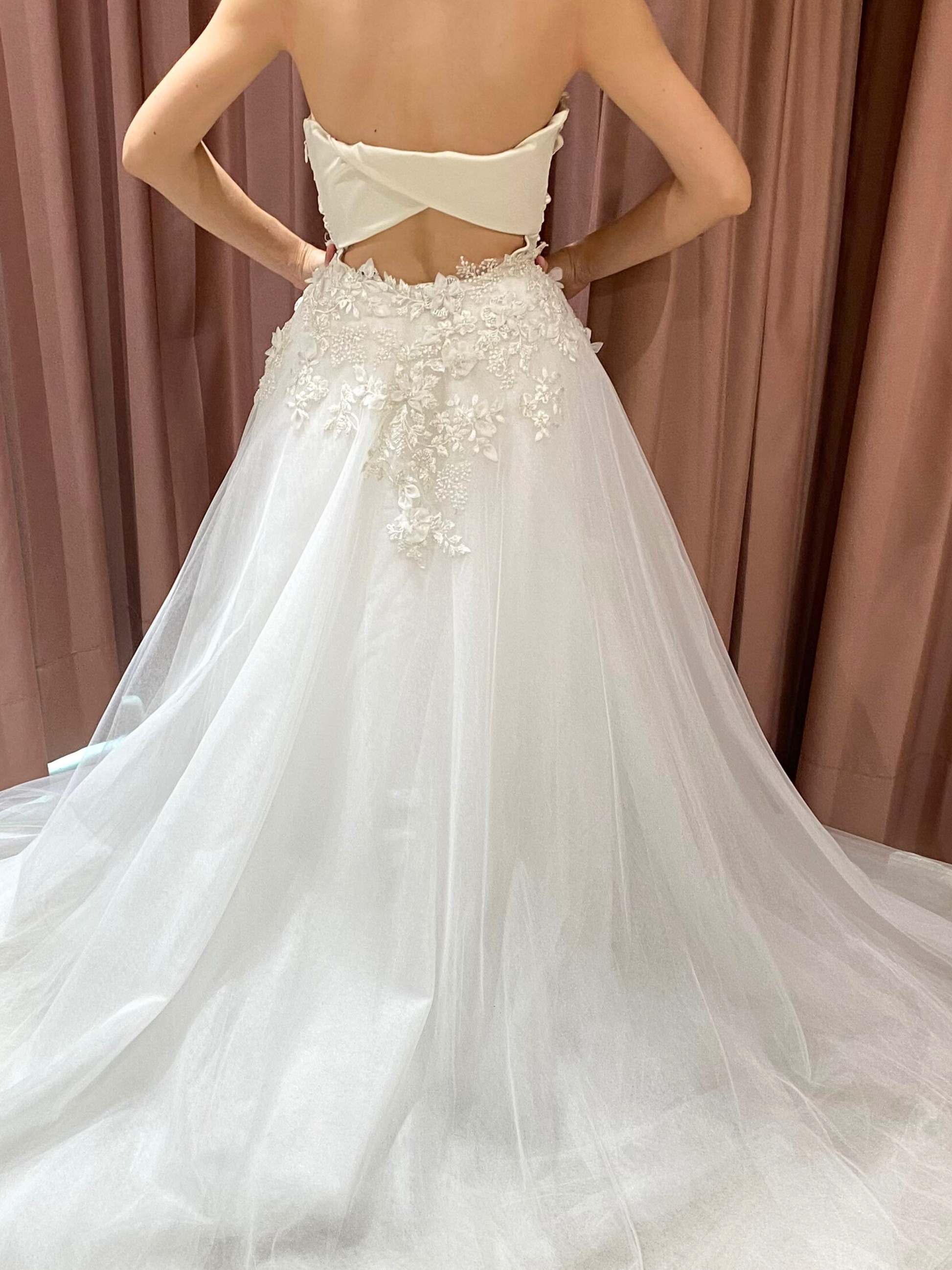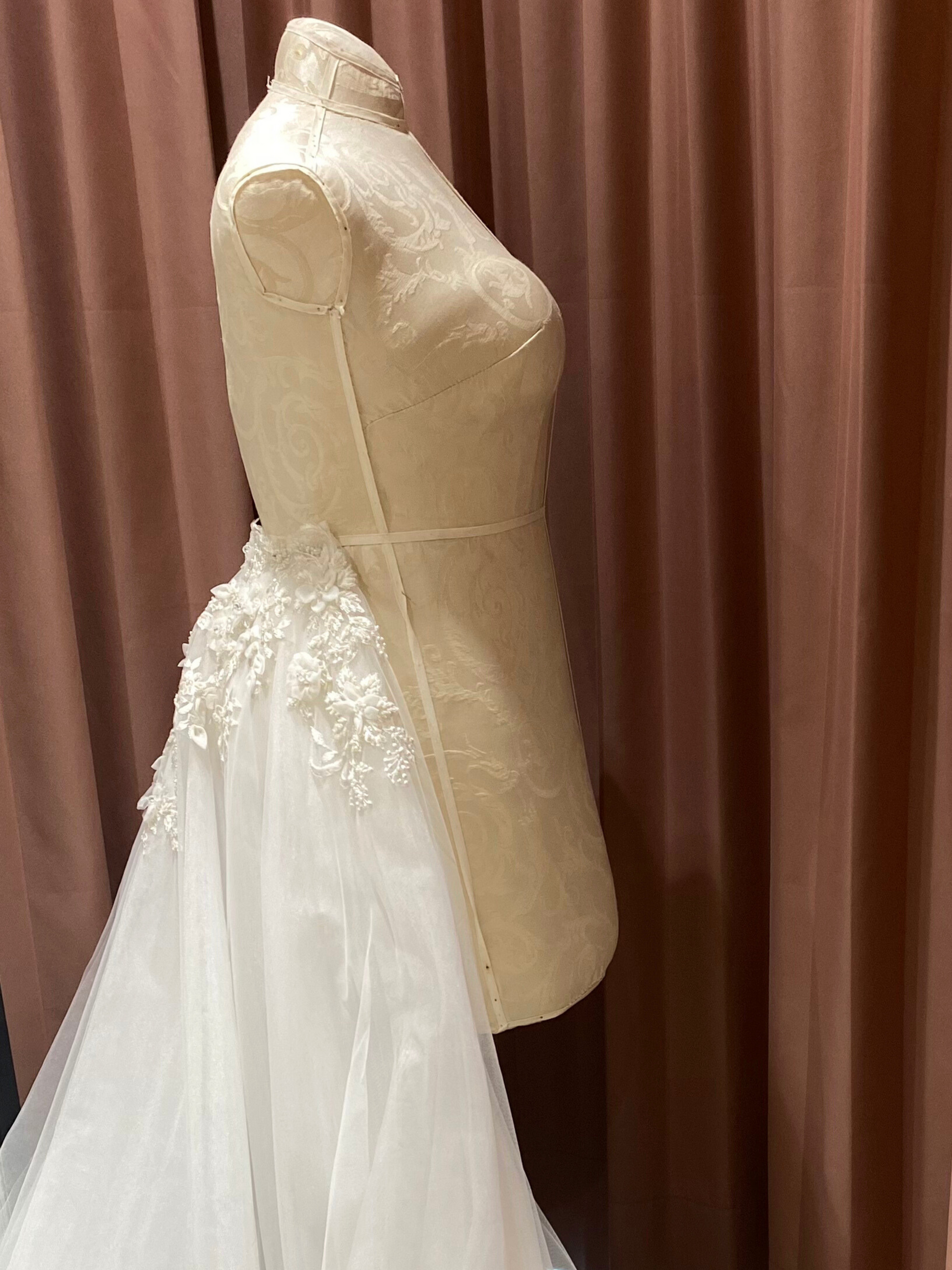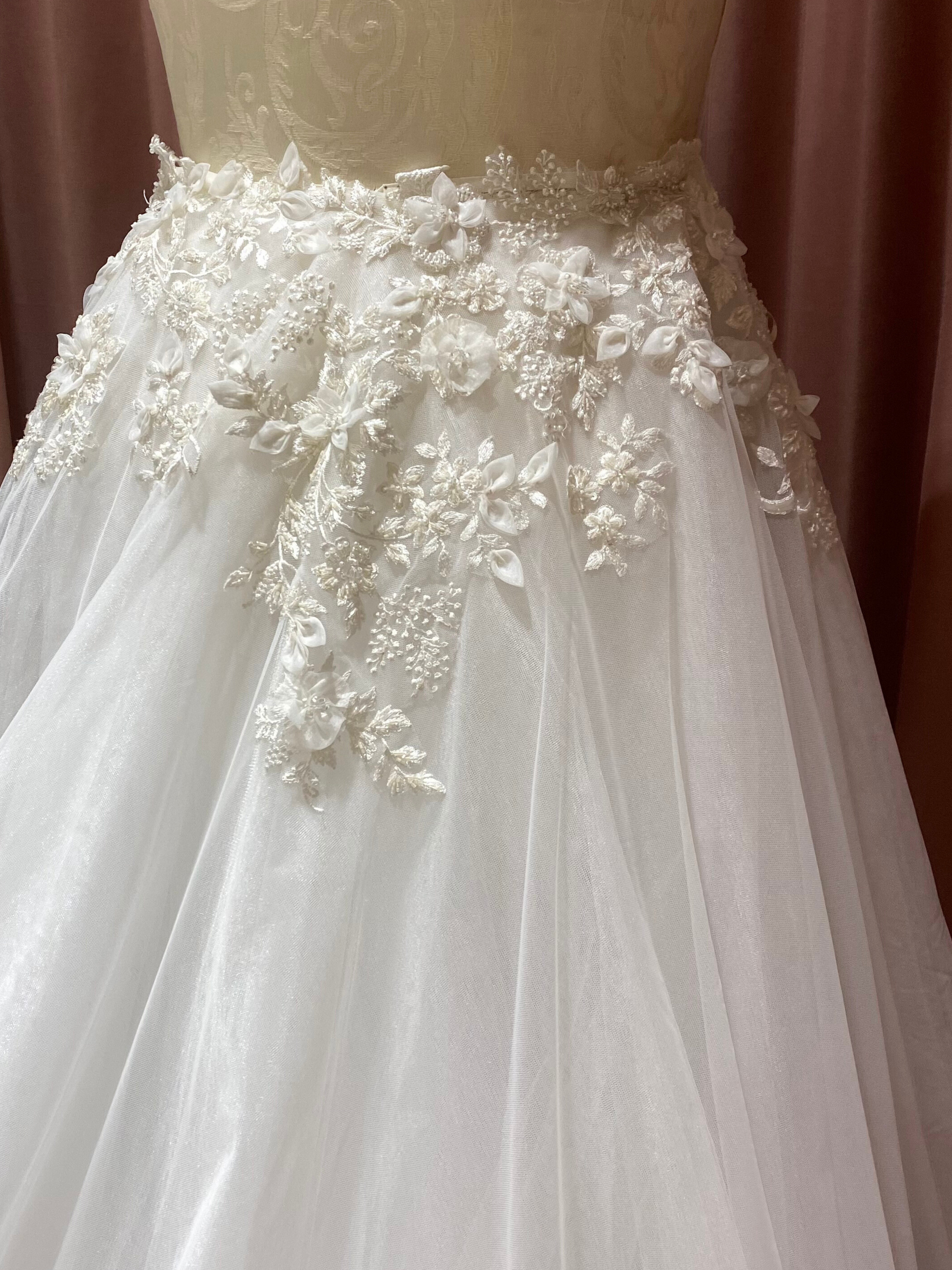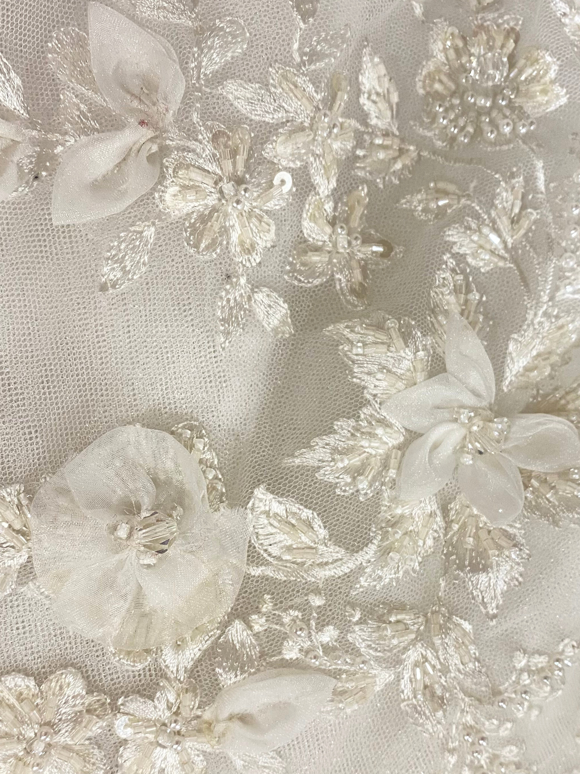 Sobre falda de 12 capas de tul con aplicaciones bordadas de encaje floral y pedrería transparente