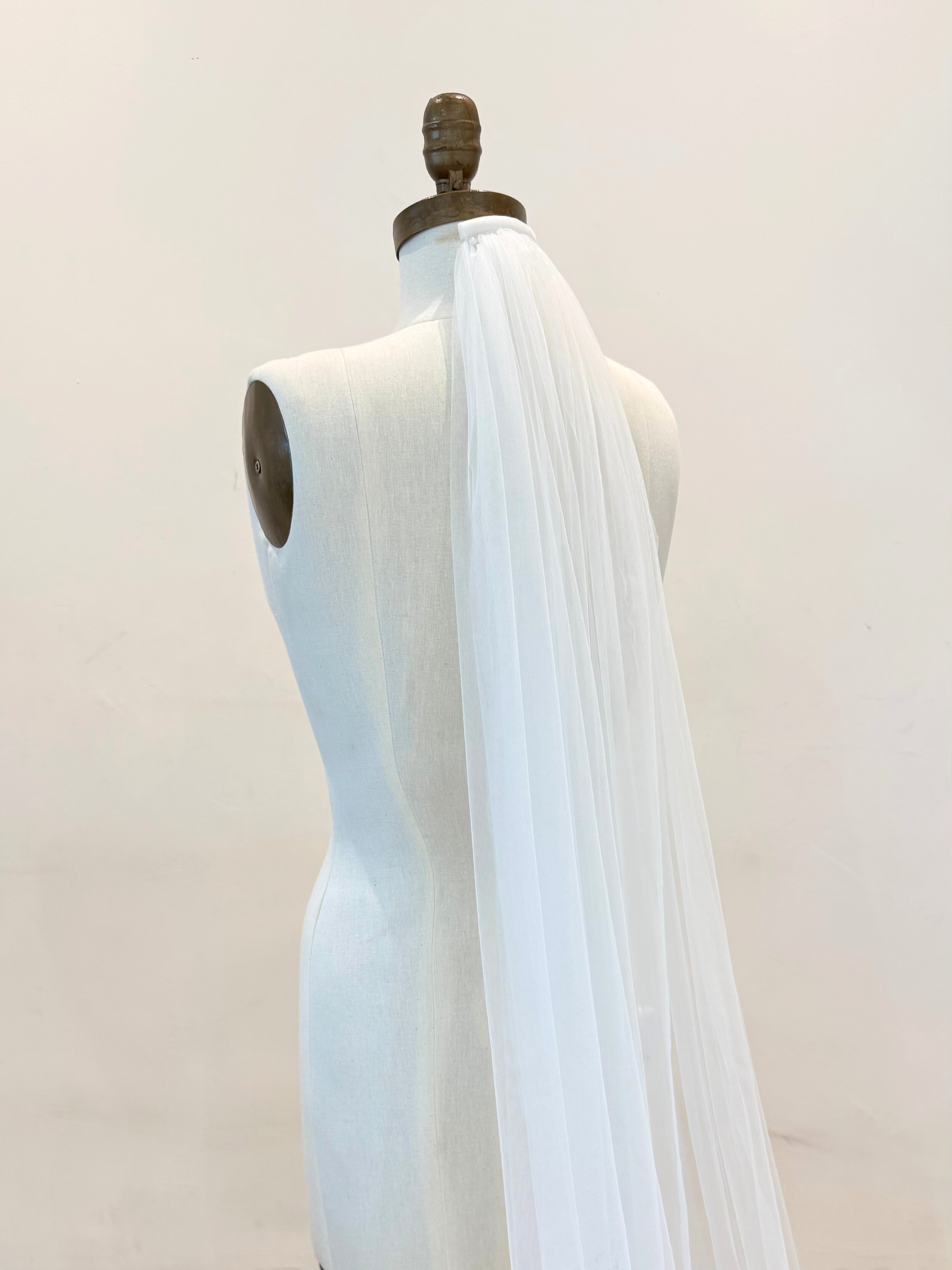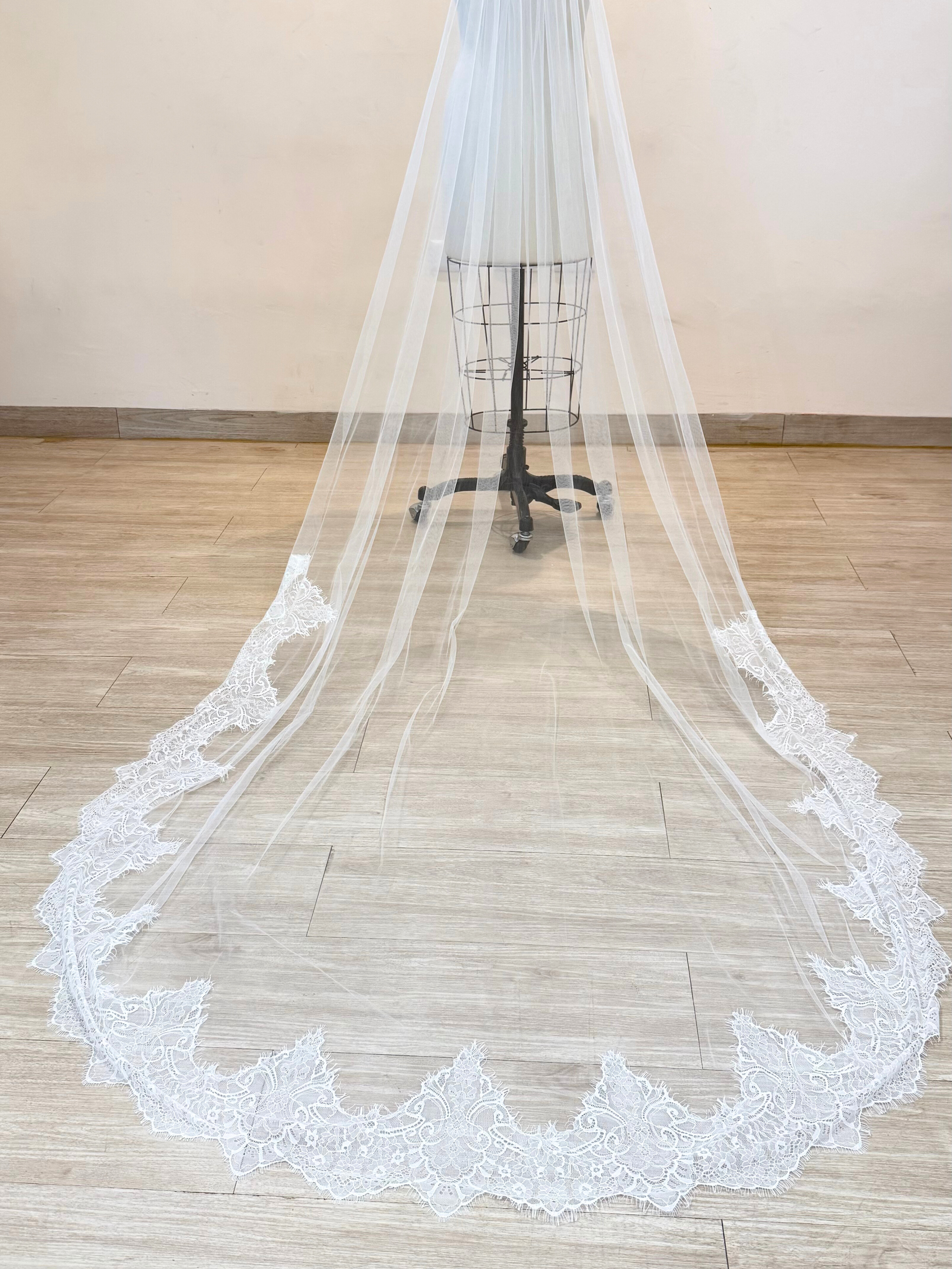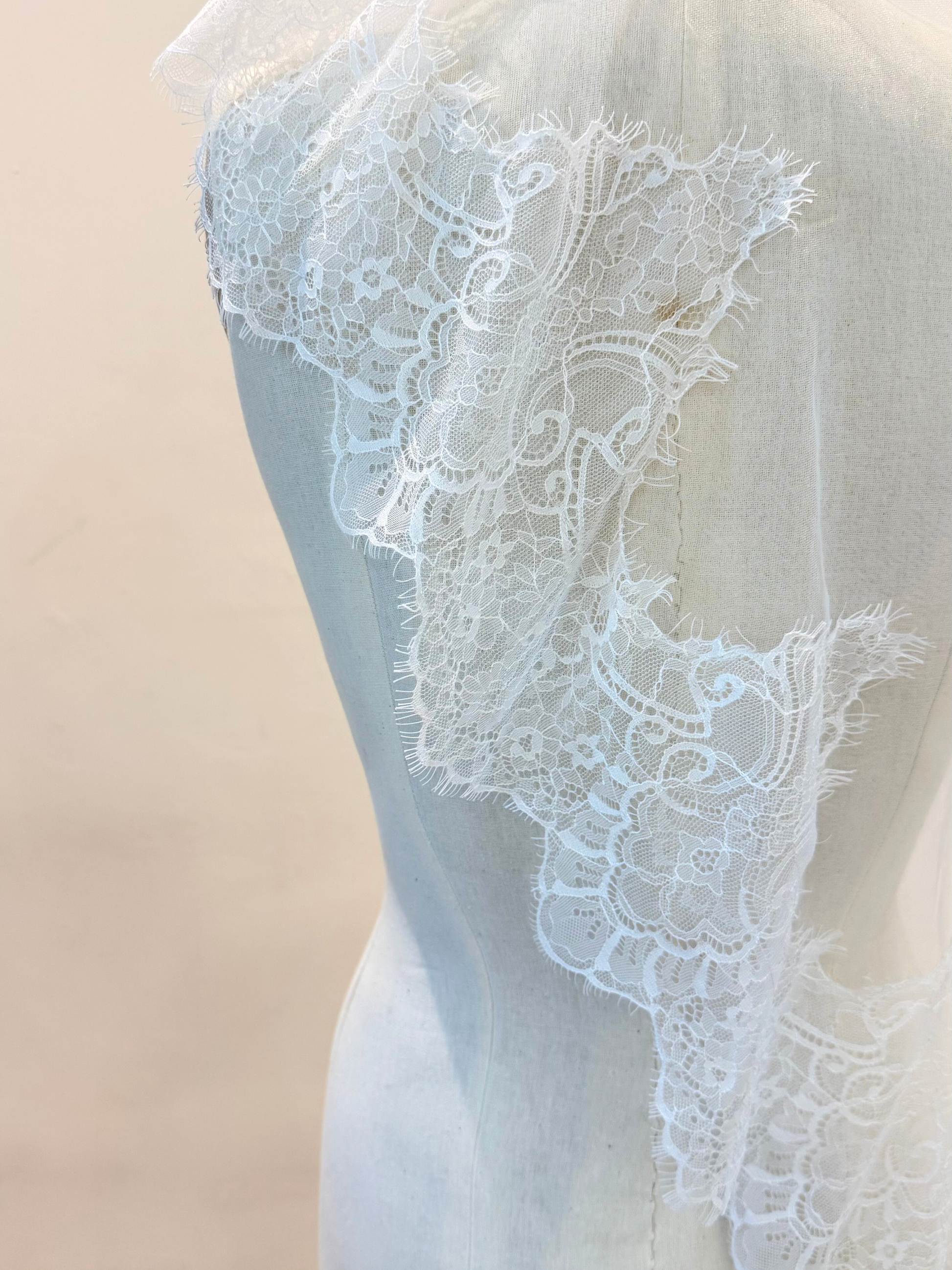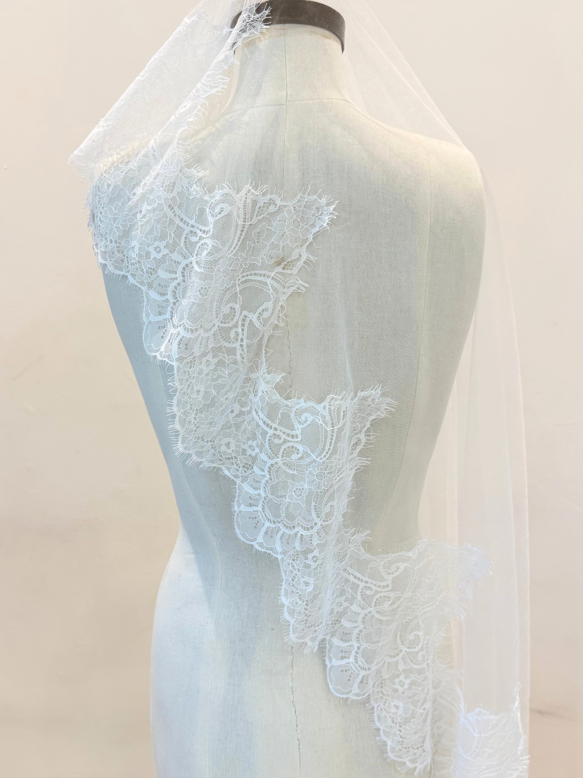 Velo de tul de angel con encaje bordado en media cenefa