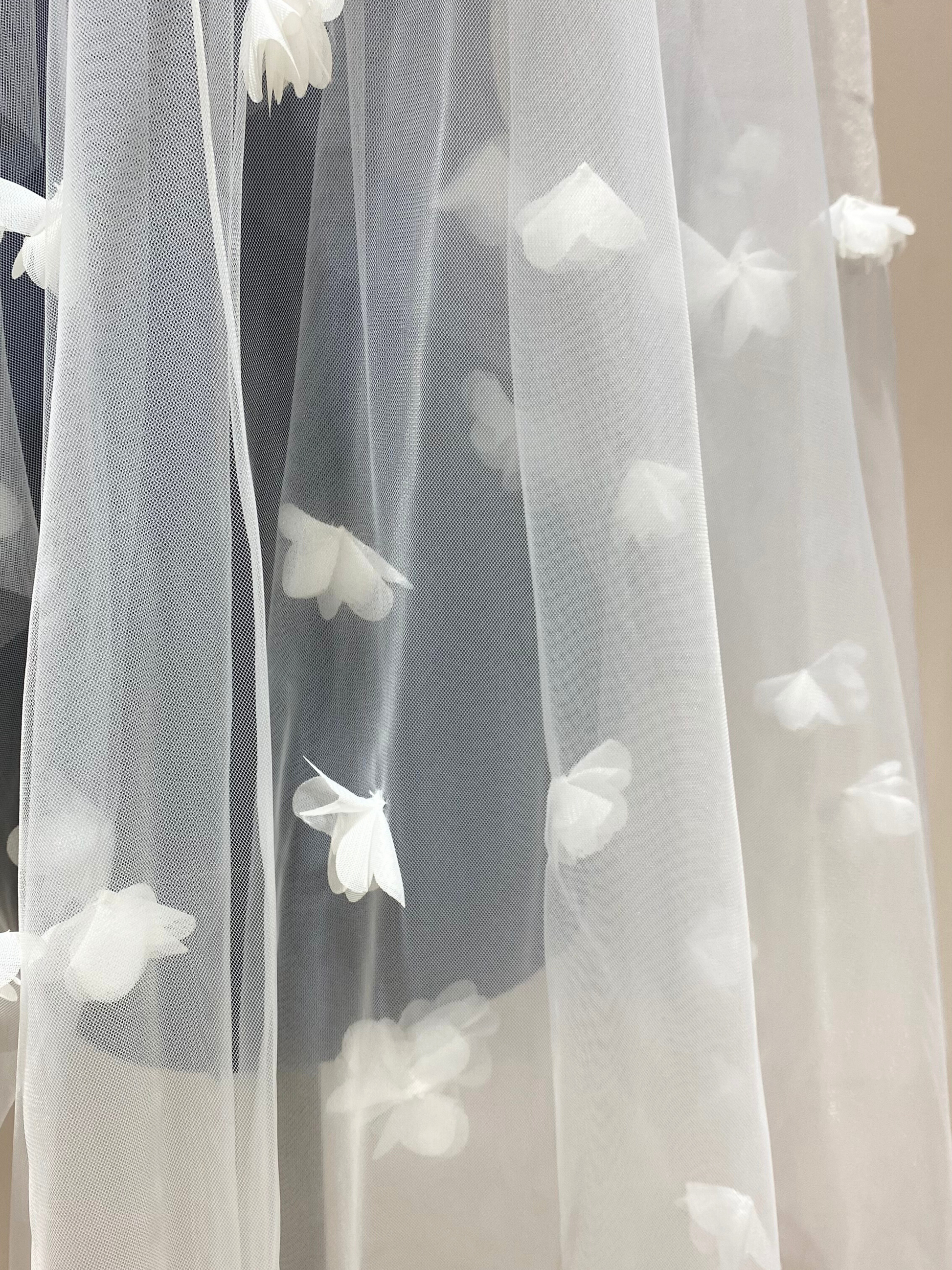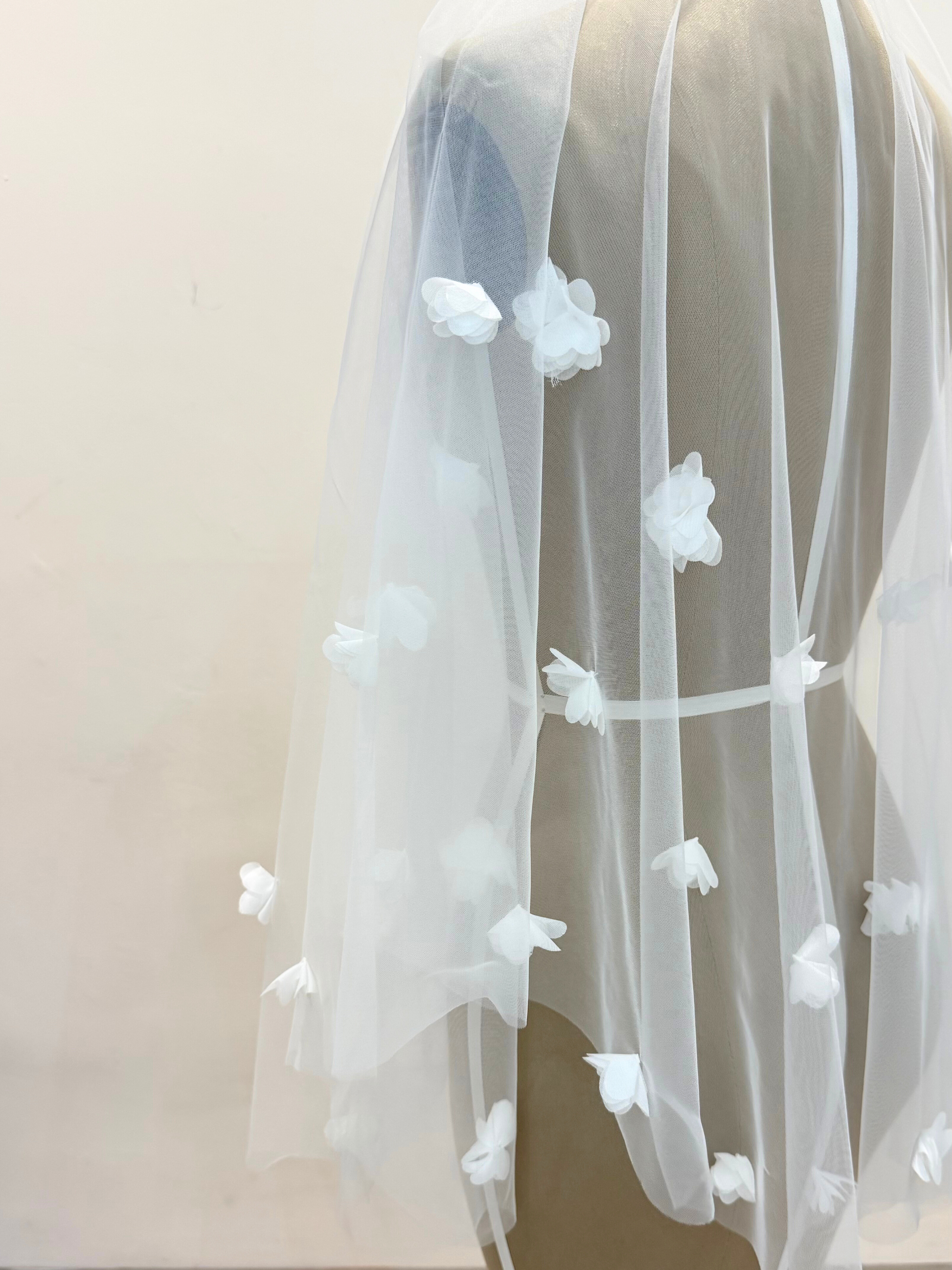 Velo de microtul de doble capa con aplicaciones florales de organza en 3D