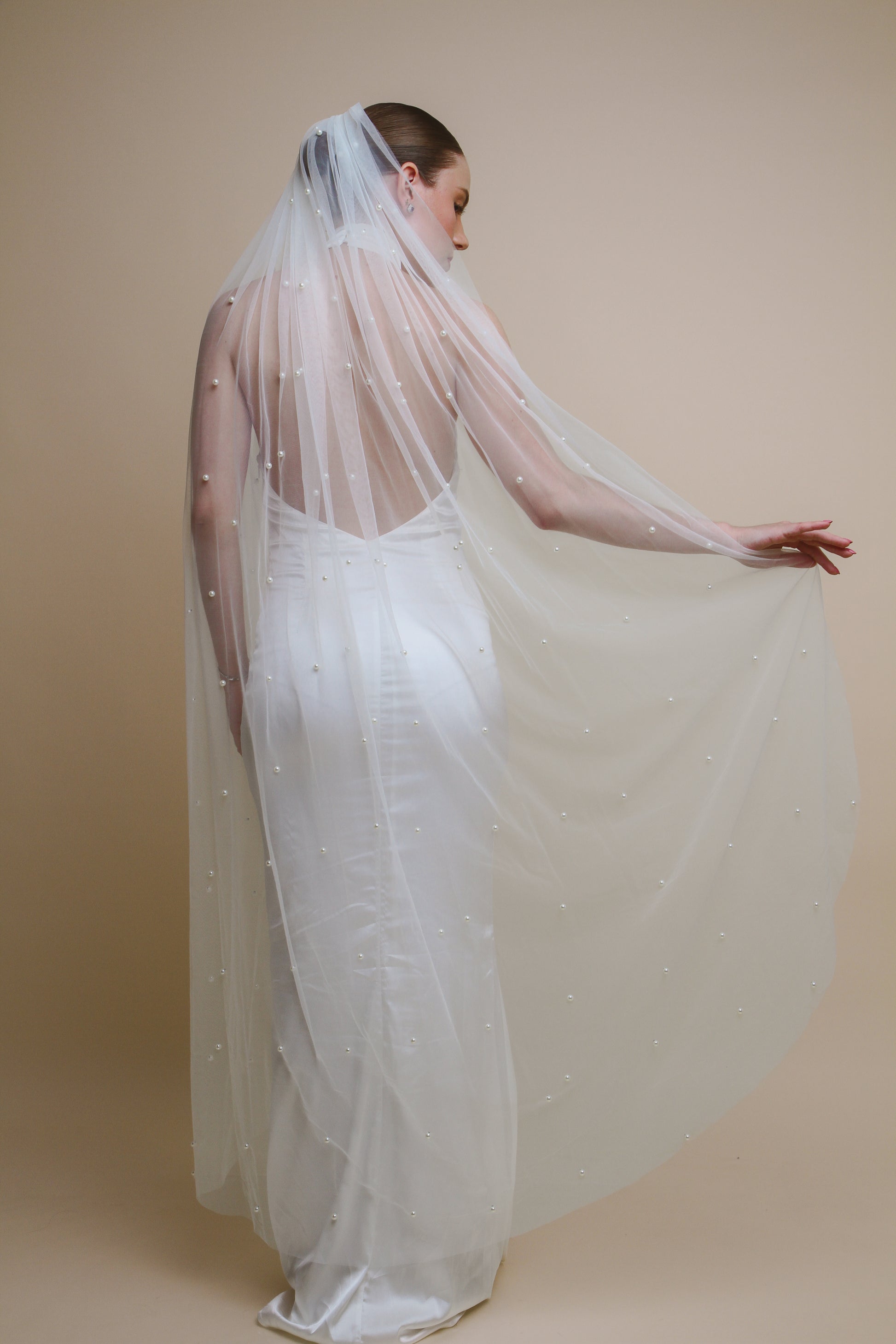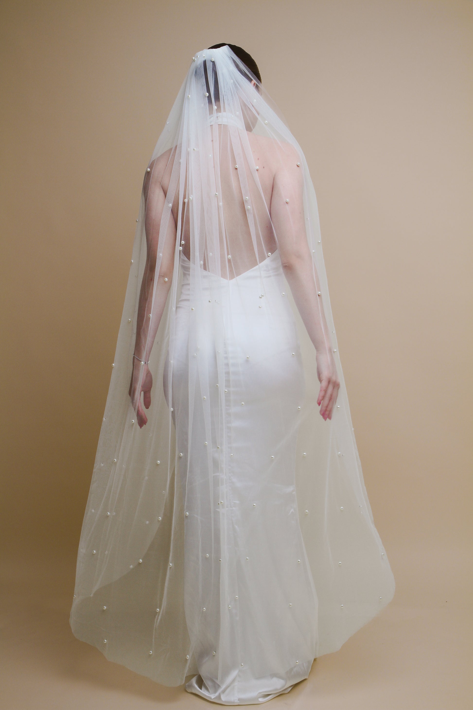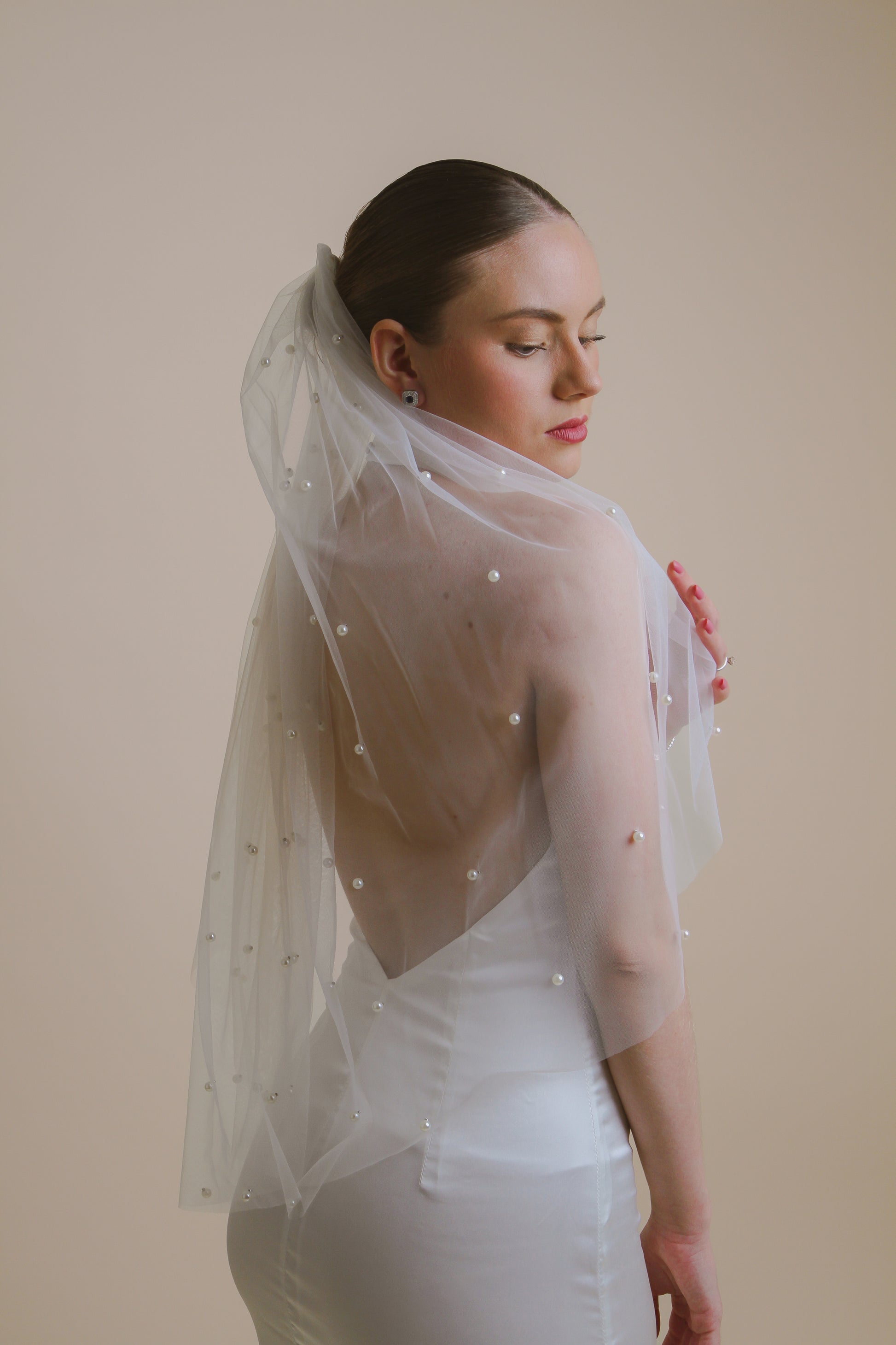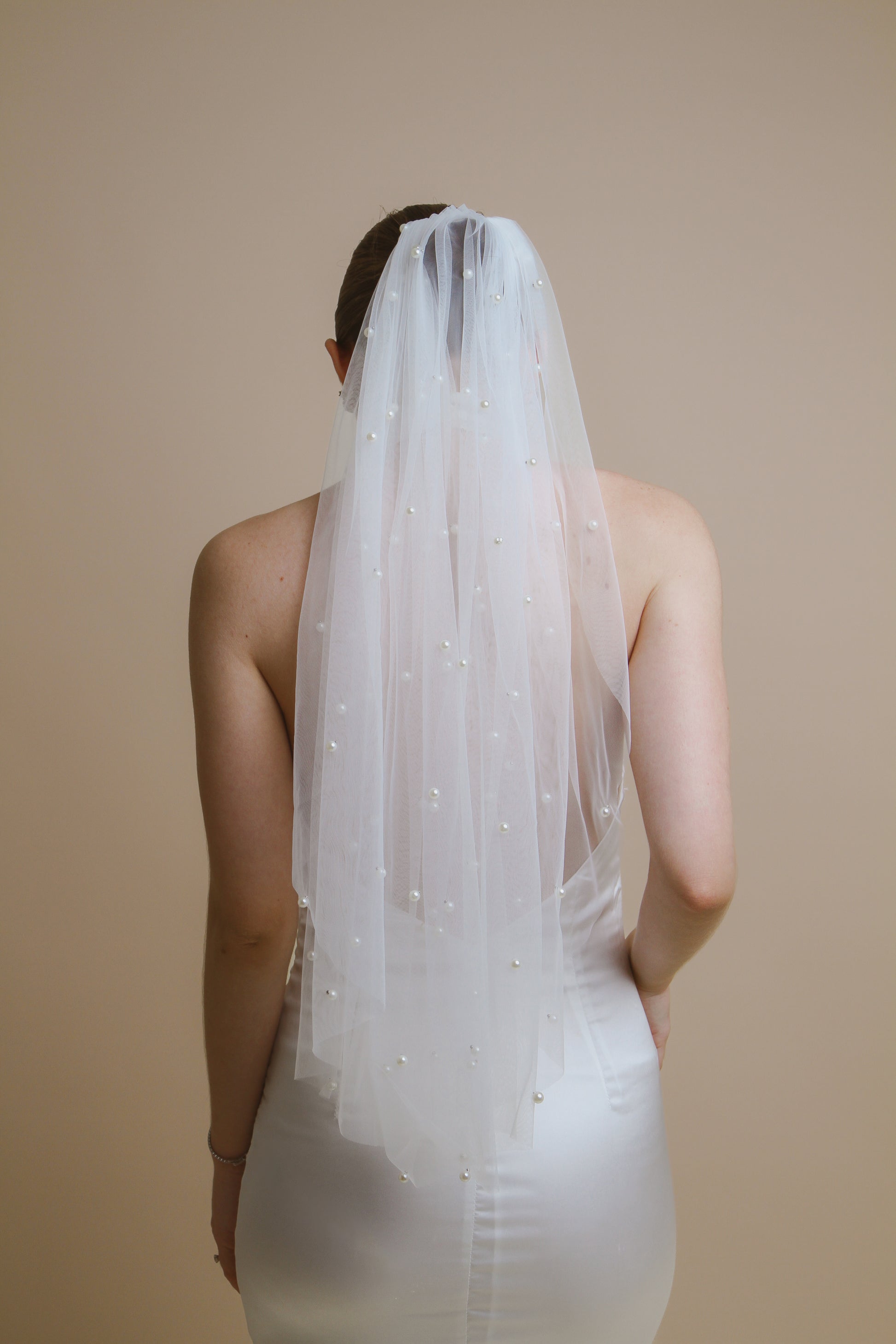 Velo de microtul de una sola capa, con perlas y peineta de metal