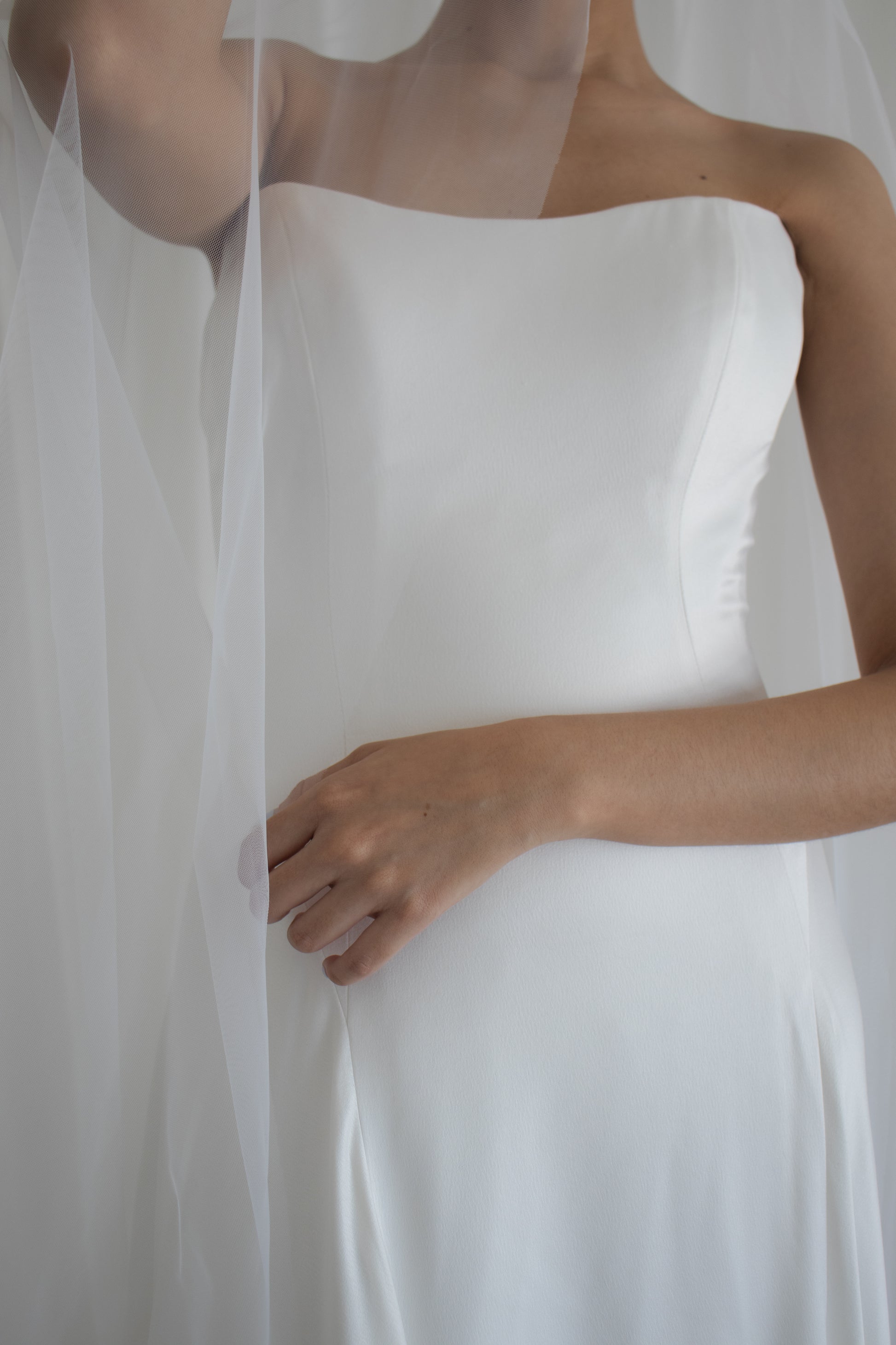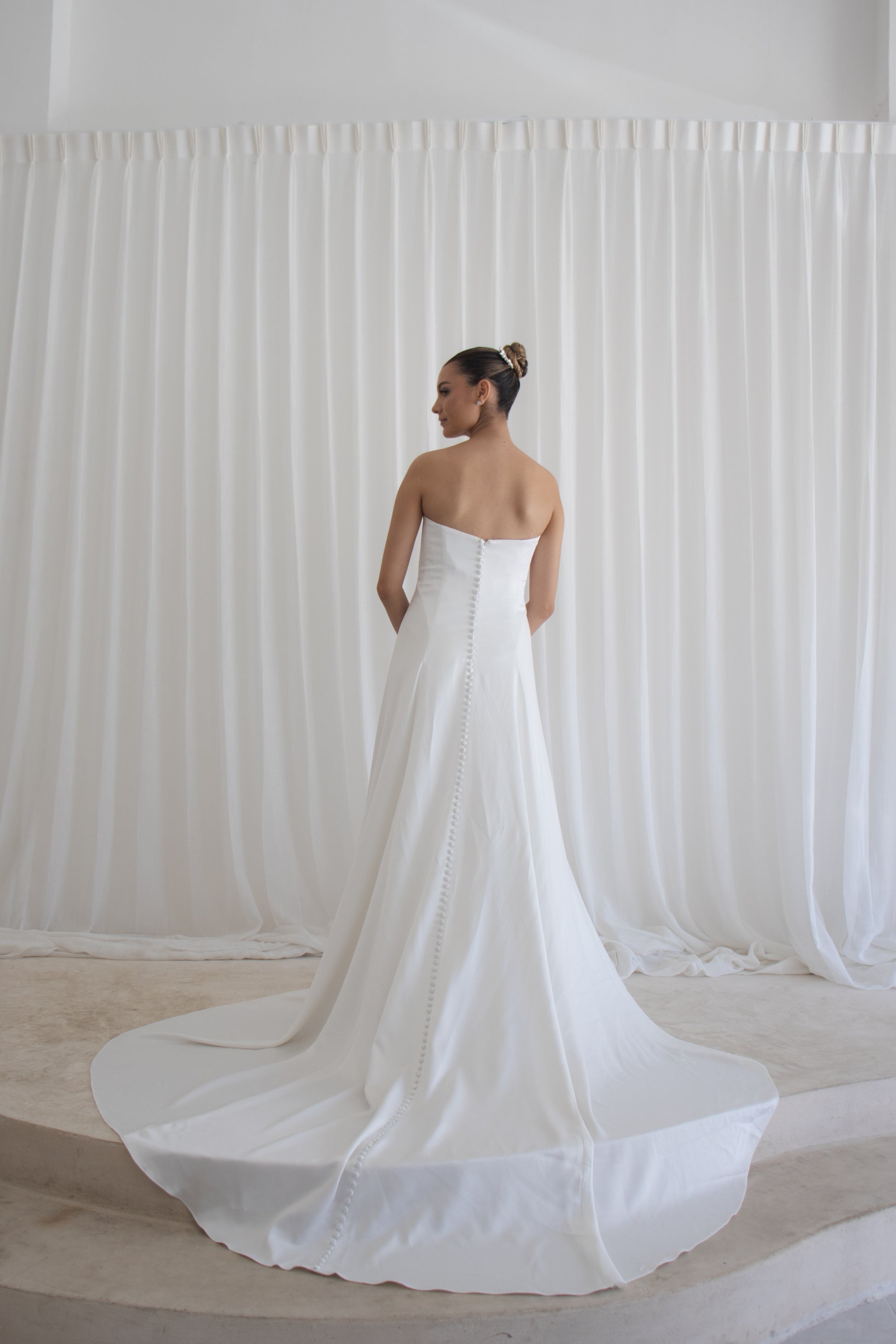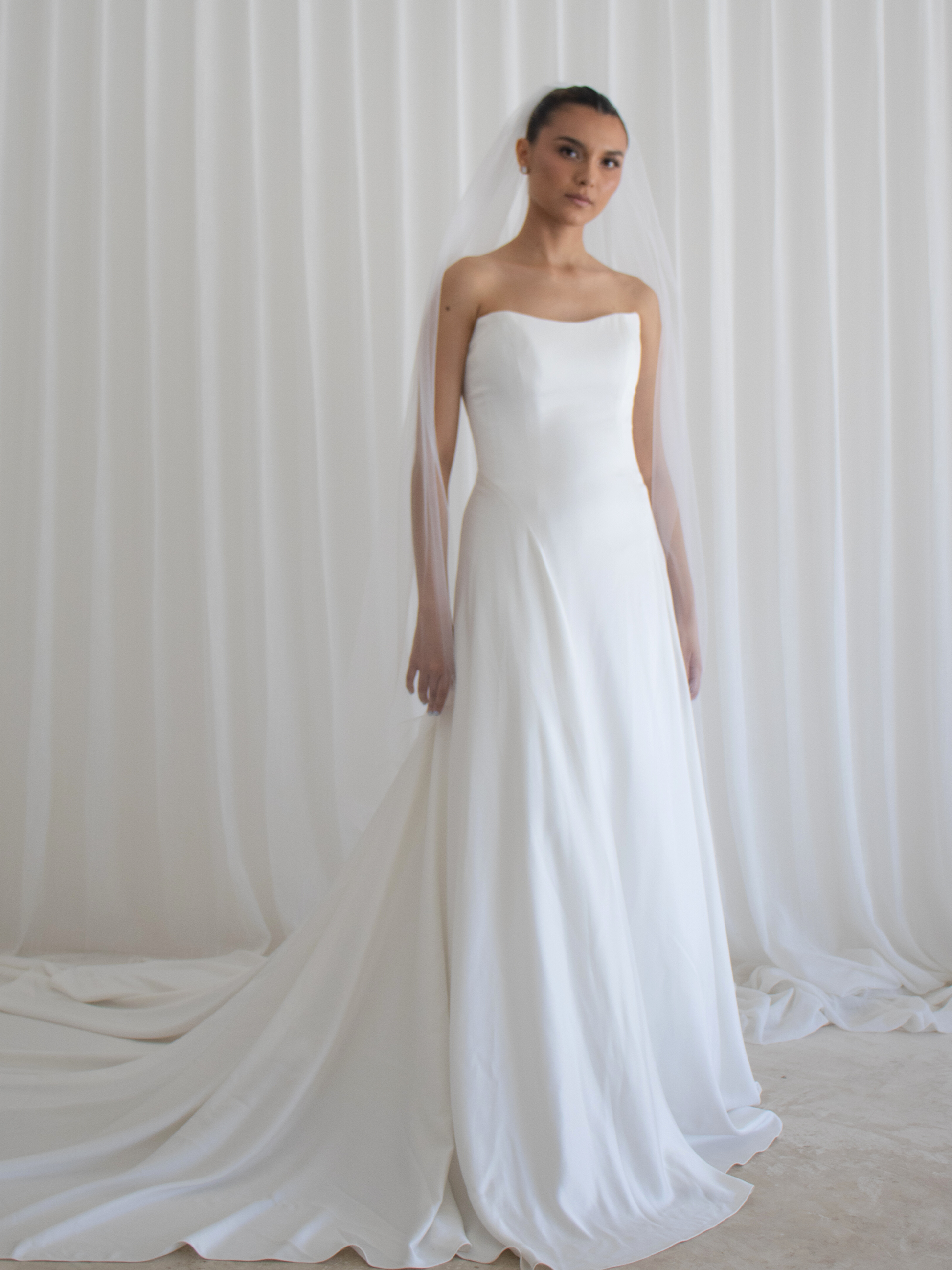 Vestido de novia de satín , strapless con bufanda a juego